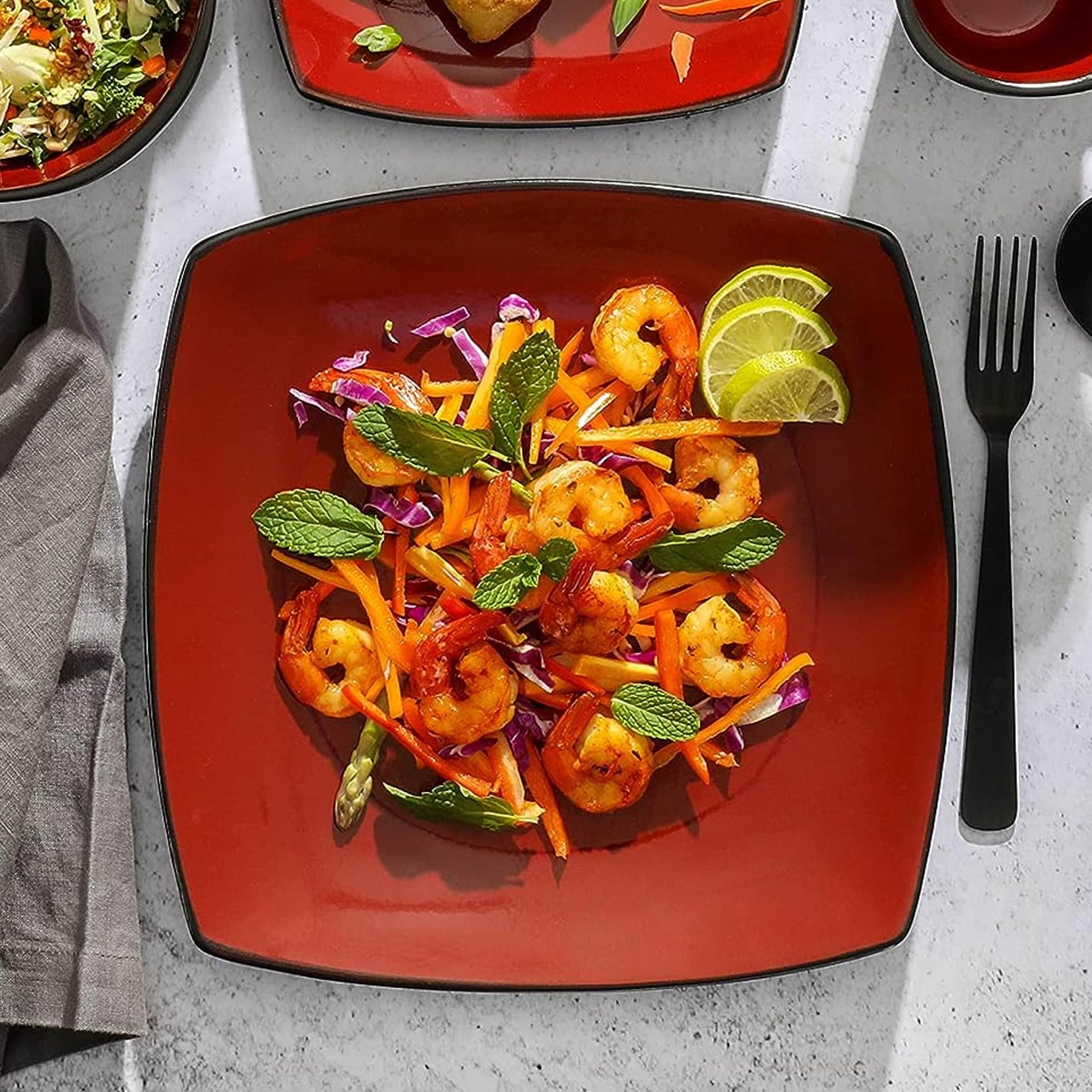 Ensemble de 4 assiettes carrées en grès rouge de 26,7 cm