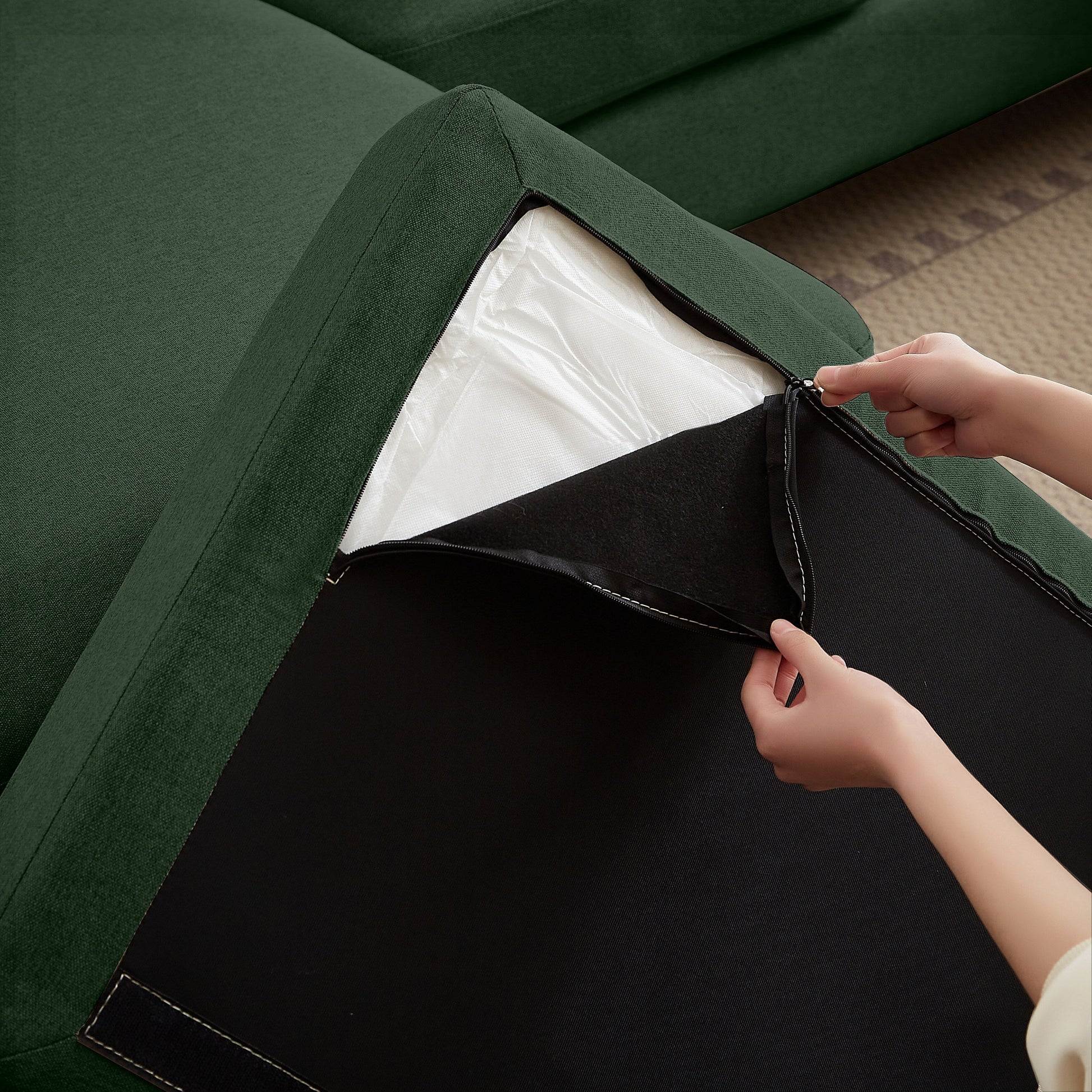 Ce canapé d'angle trois pièces est le complément idéal de tout salon moderne. Il peut accueillir confortablement jusqu'à quatre personnes, idéal pour des soirées cinéma conviviales. Sa structure en bois d'ingénierie et ses pieds en métal allient robustesse et élégance. Les assises rembourrées de mousse et à ressorts hélicoïdaux offrent un soutien et un confort optimaux, vous permettant de vous adosser et de vous détendre en toute confiance. Le tissu en polyester offre une couleur unie et un aspect soigné. De plus, les coussins d'assise sont facilement amovibles, pour un nettoyage aisé.