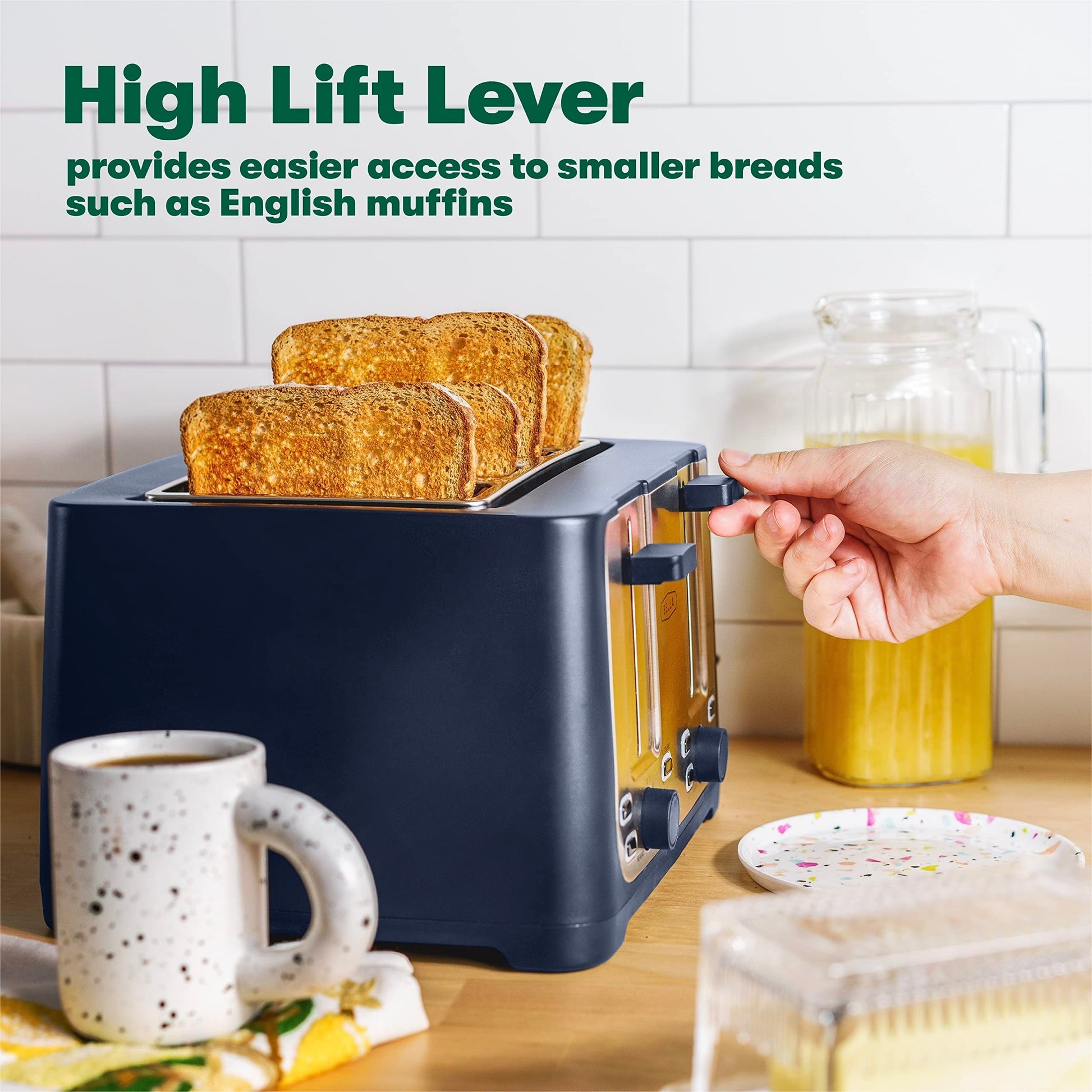 NETTOYAGE FACILE - Le levier de levage élevé du grille-pain portable facilite l'accès aux petits pains comme les muffins anglais, et le tiroir ramasse-miettes amovible assure un nettoyage impeccable. Des fonctions de sécurité comme l'arrêt automatique et l'anti-bourrage vous garantissent des matins sereins.