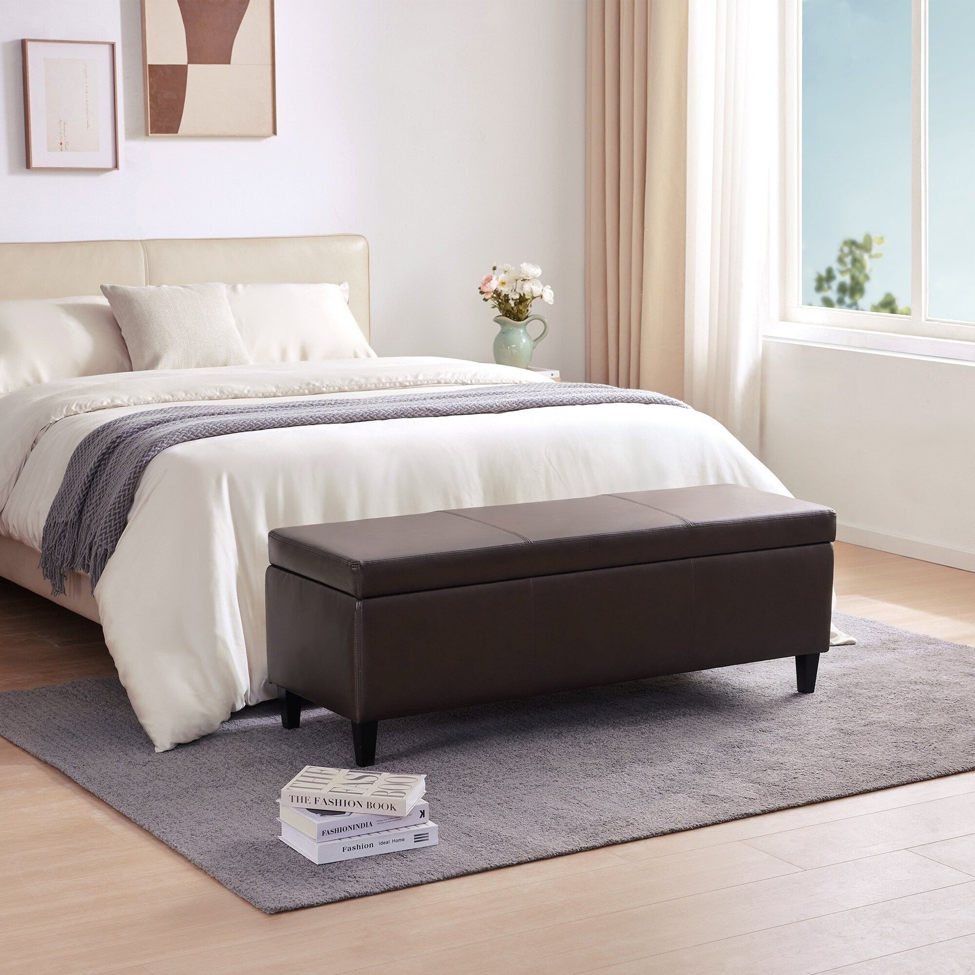 Pouf de rangement rectangulaire rembourré 50,3 x 17,50 x 18 po - Similicuir
