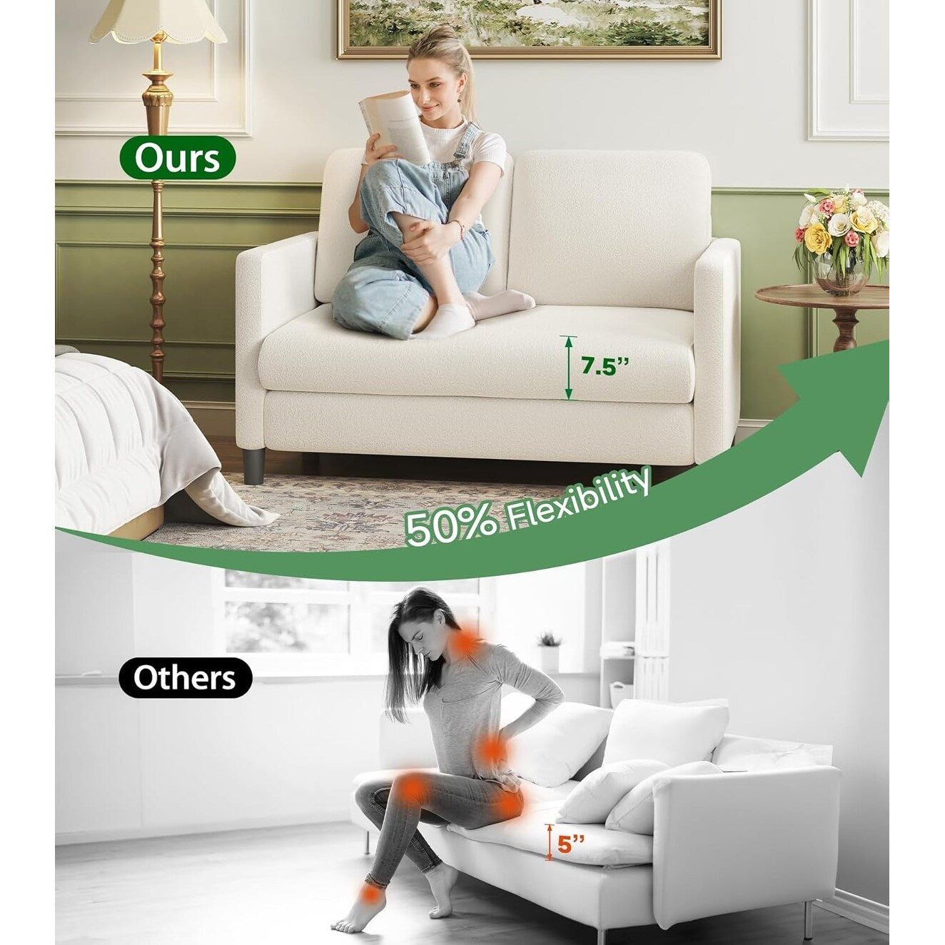 51 Comfy Teddy Loveseat Sofa for Small Spaces - All-Wood Frame, Tool-Free Setup Couch for Bedroom & Living Room, Beige
