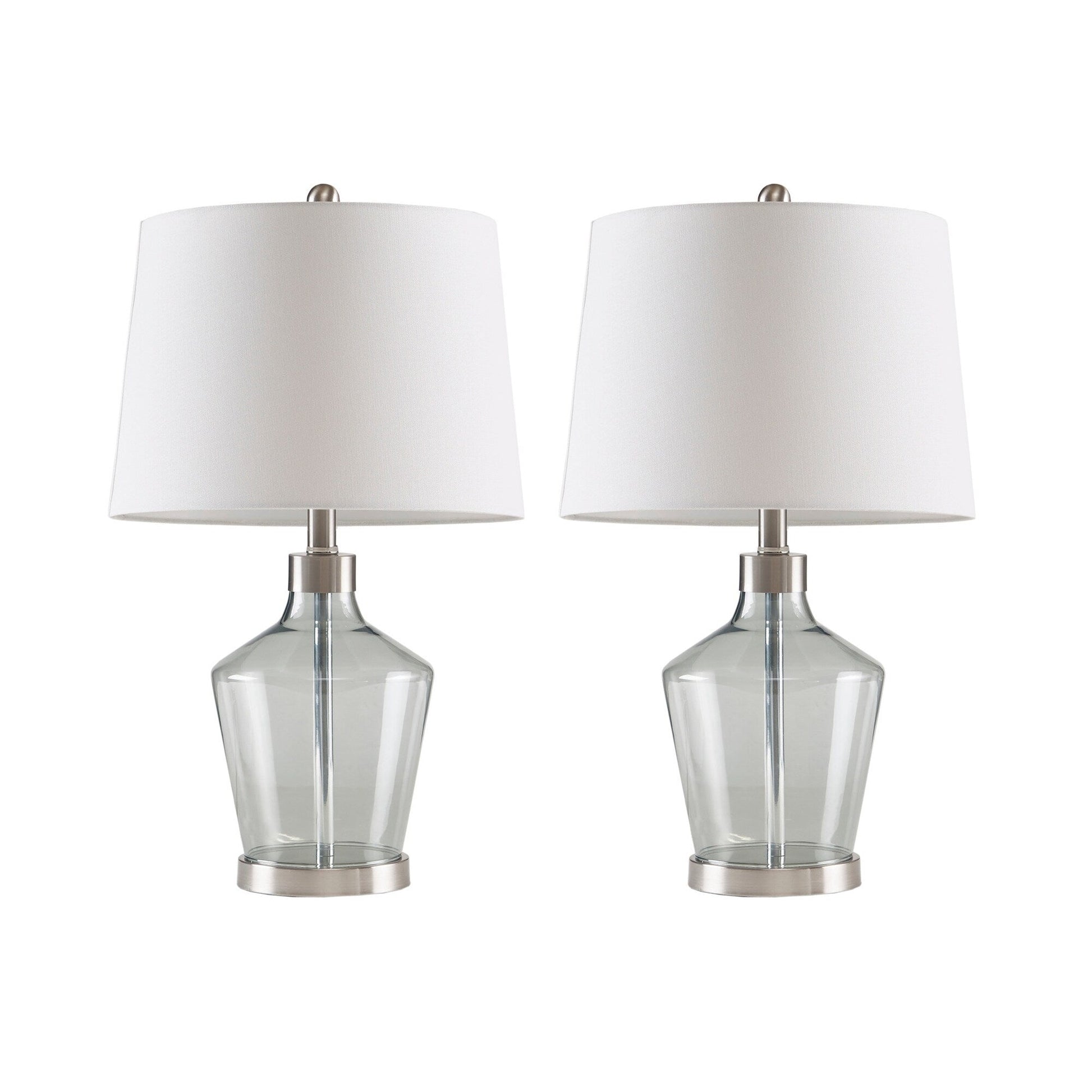 Modernisez votre salon ou votre chambre avec le style épuré de la lampe de table angulaire en verre Harmony de 510 Design, lot de 2. Magnifiquement conçue, cette lampe de table en verre arbore une teinte grise audacieuse qui apporte une douce touche de couleur à votre pièce. Son abat-jour blanc conique en forme de tambour met en valeur la base avec élégance, tout en filtrant délicatement la lumière pour une douce lueur chaleureuse. Garantie 2 ans.