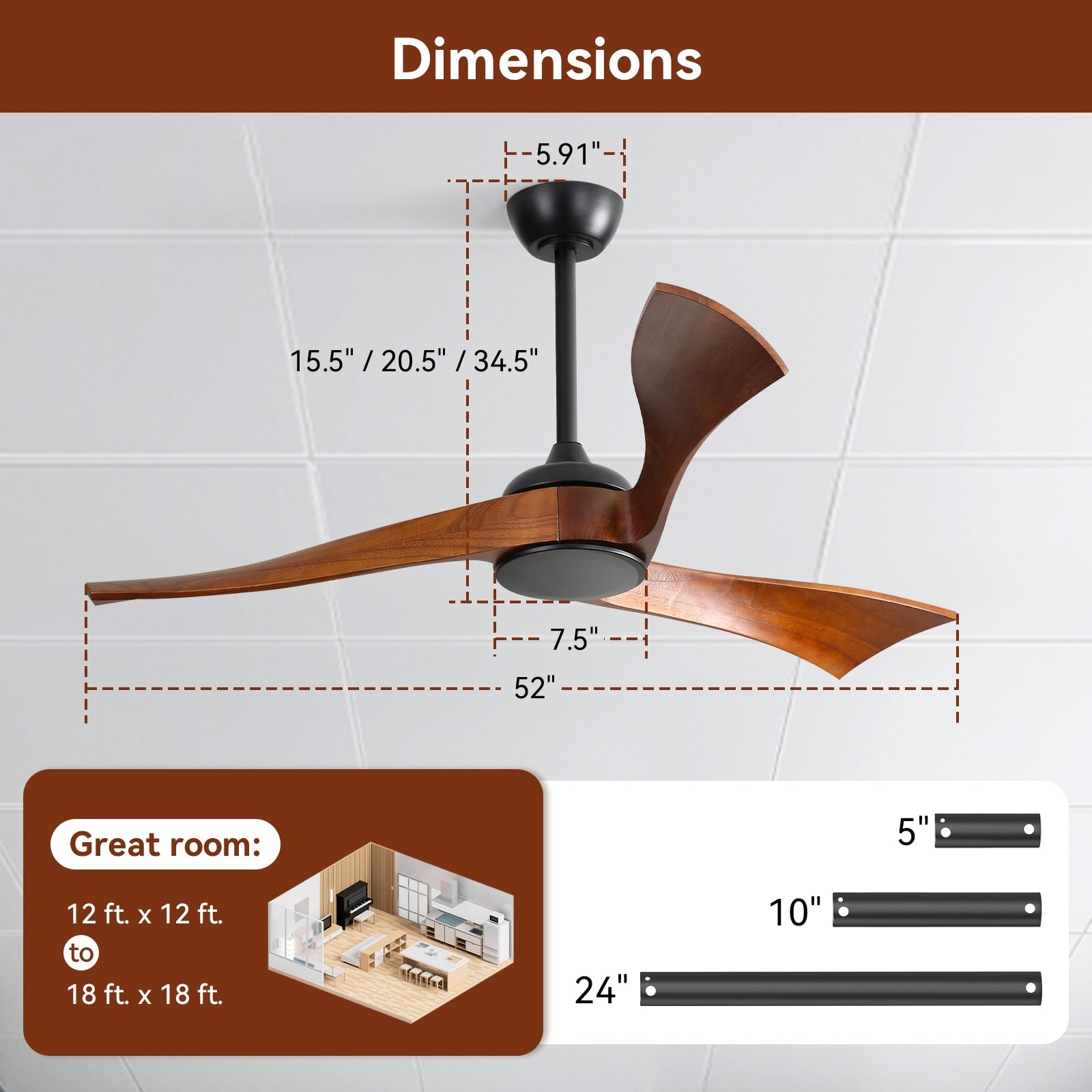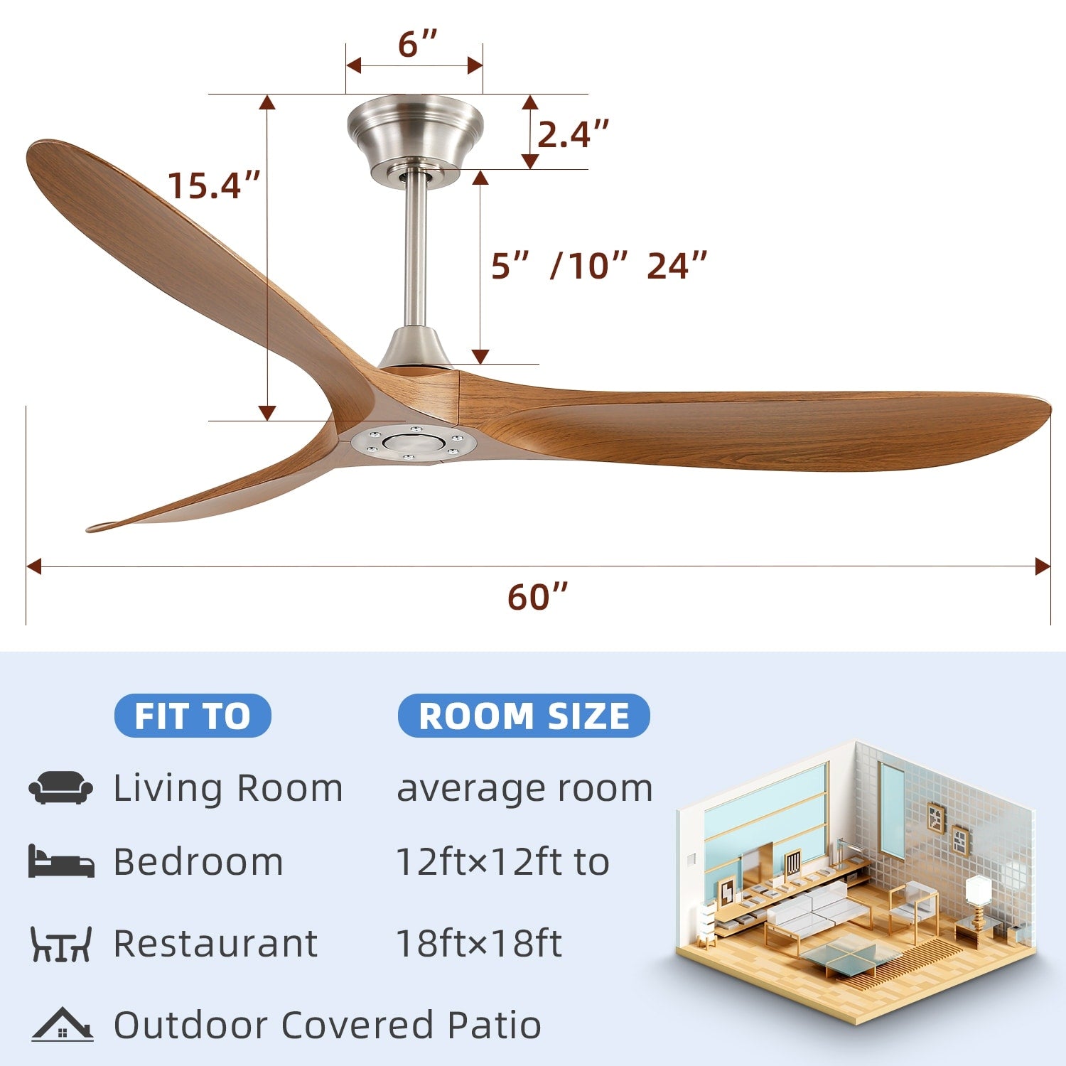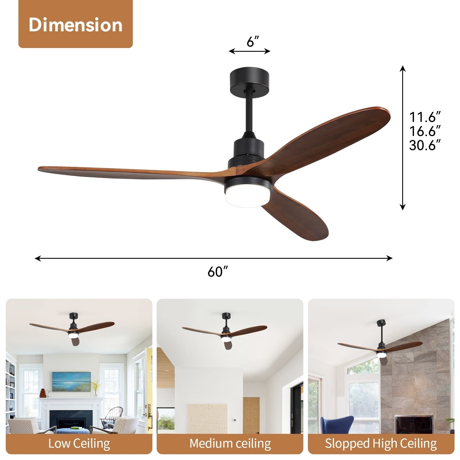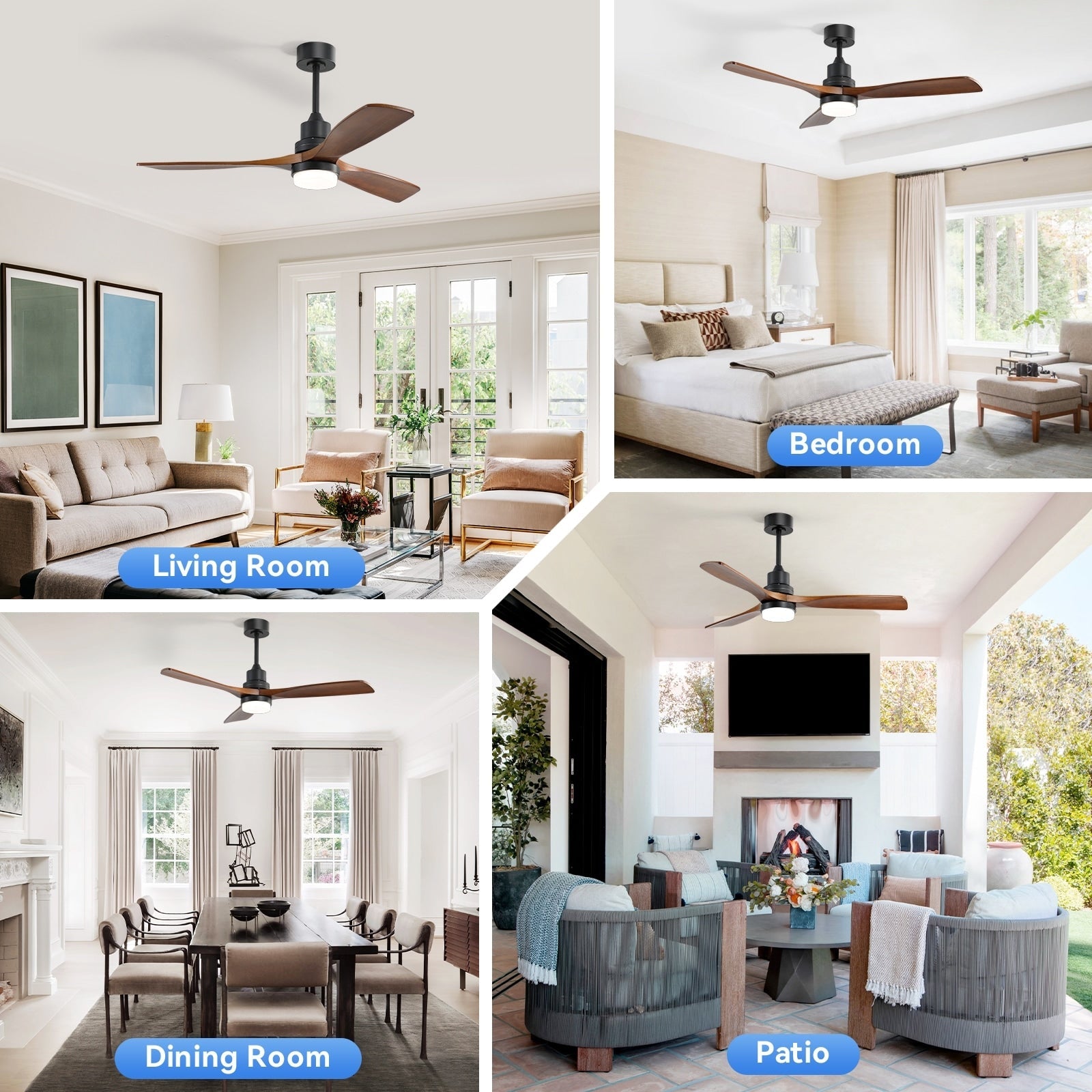 Ventilateur de plafond silencieux en bois de noyer 52/60/48 avec télécommande et éclairage intégré en option