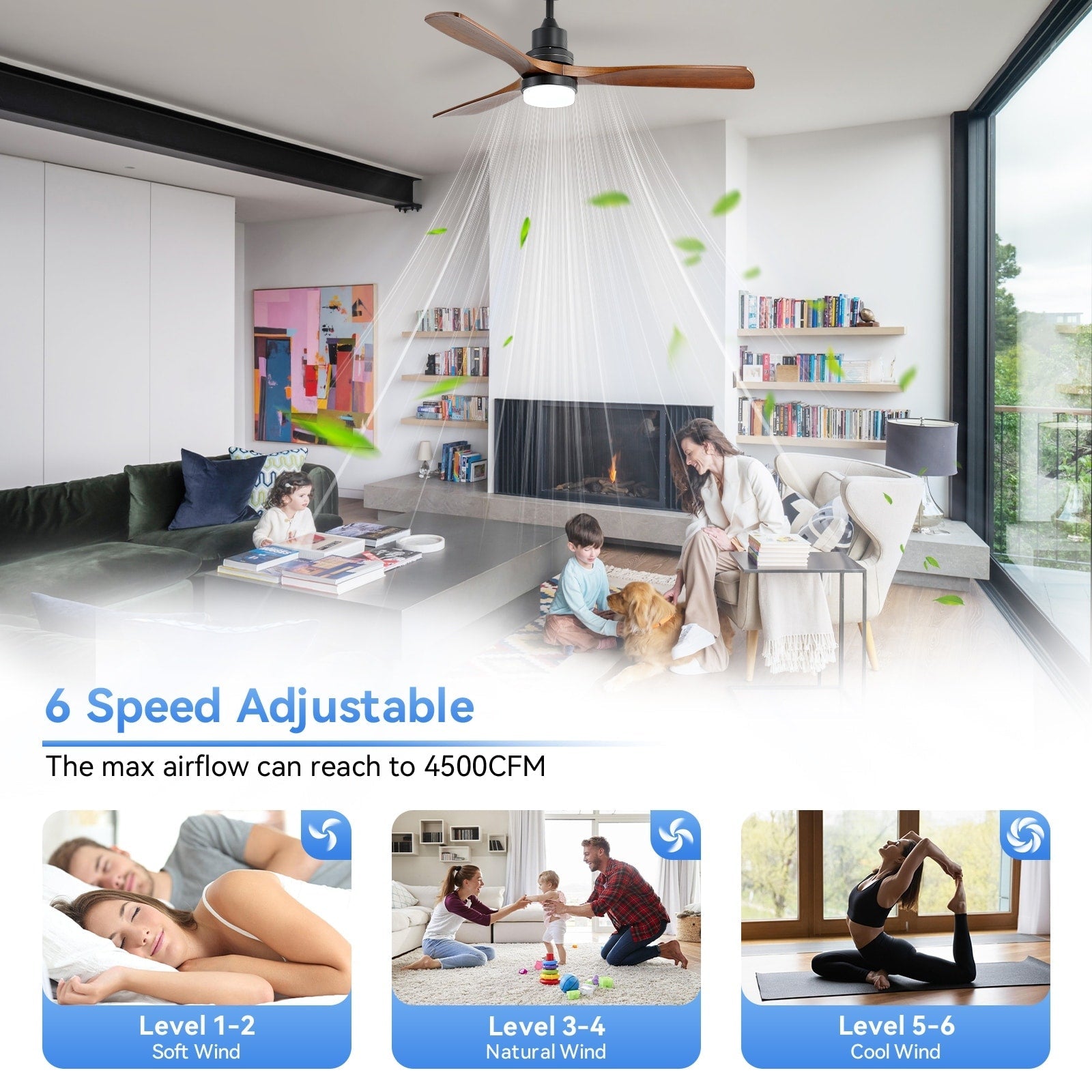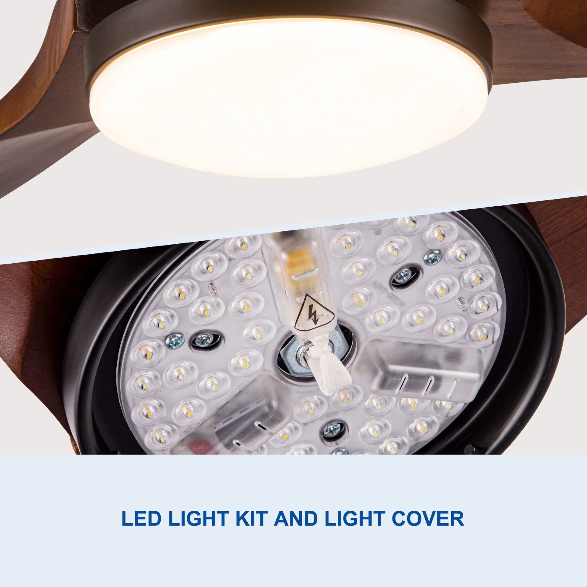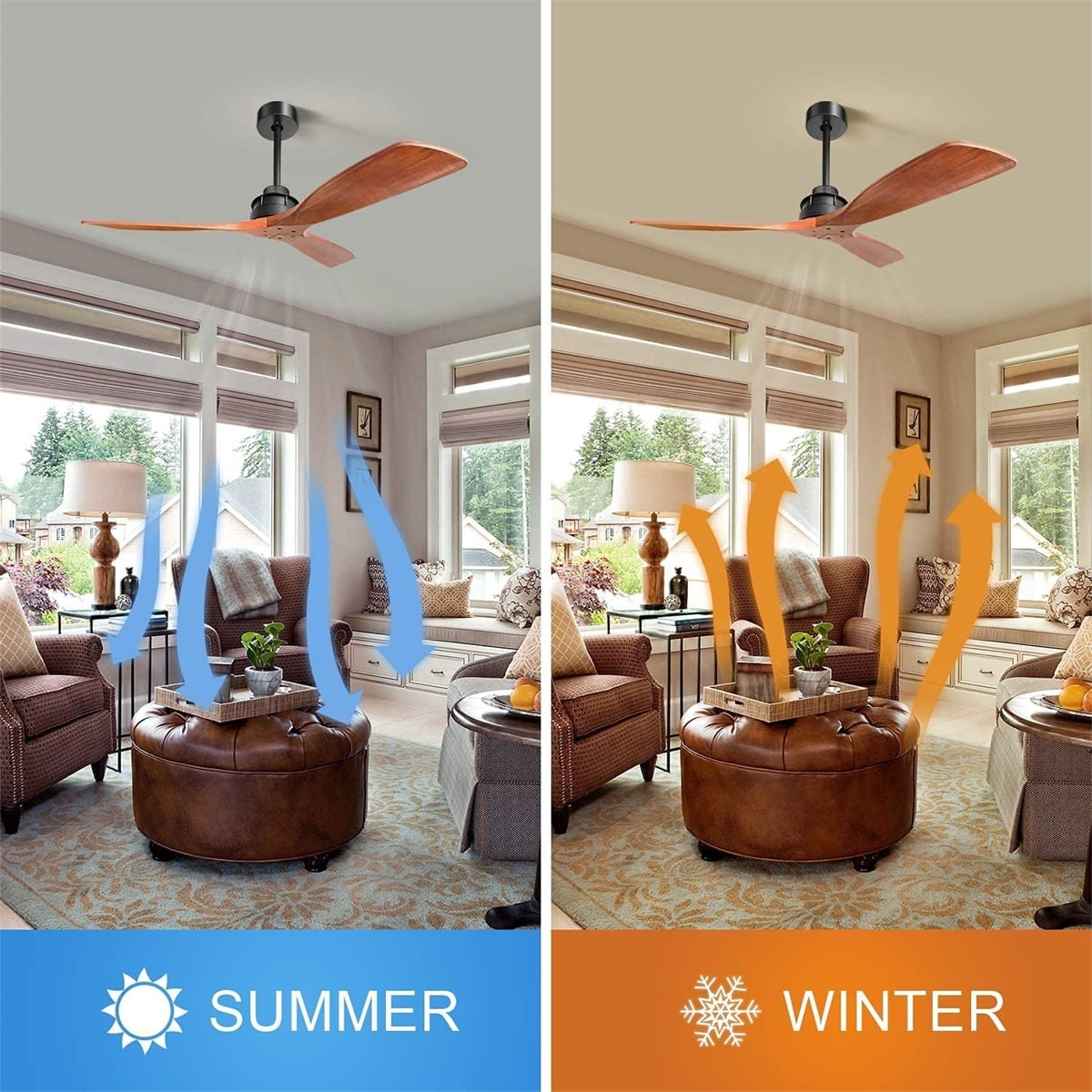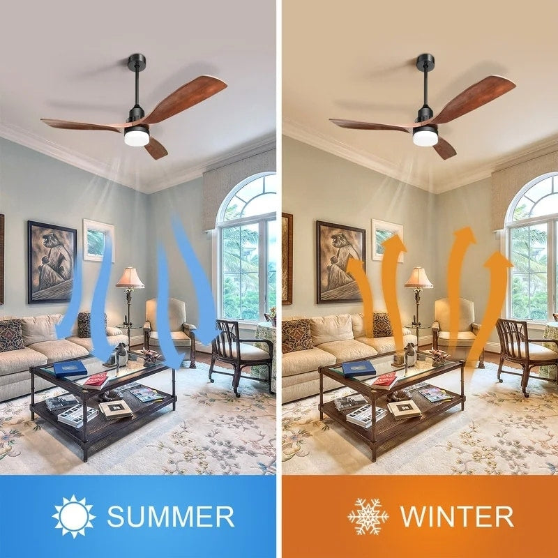 Ventilateur de plafond silencieux en bois de noyer 52/60/48 avec télécommande et éclairage intégré en option