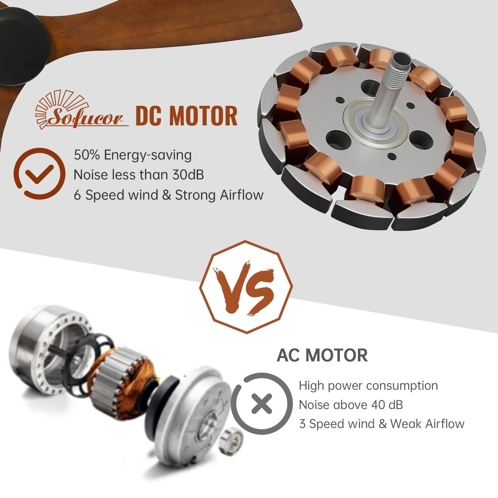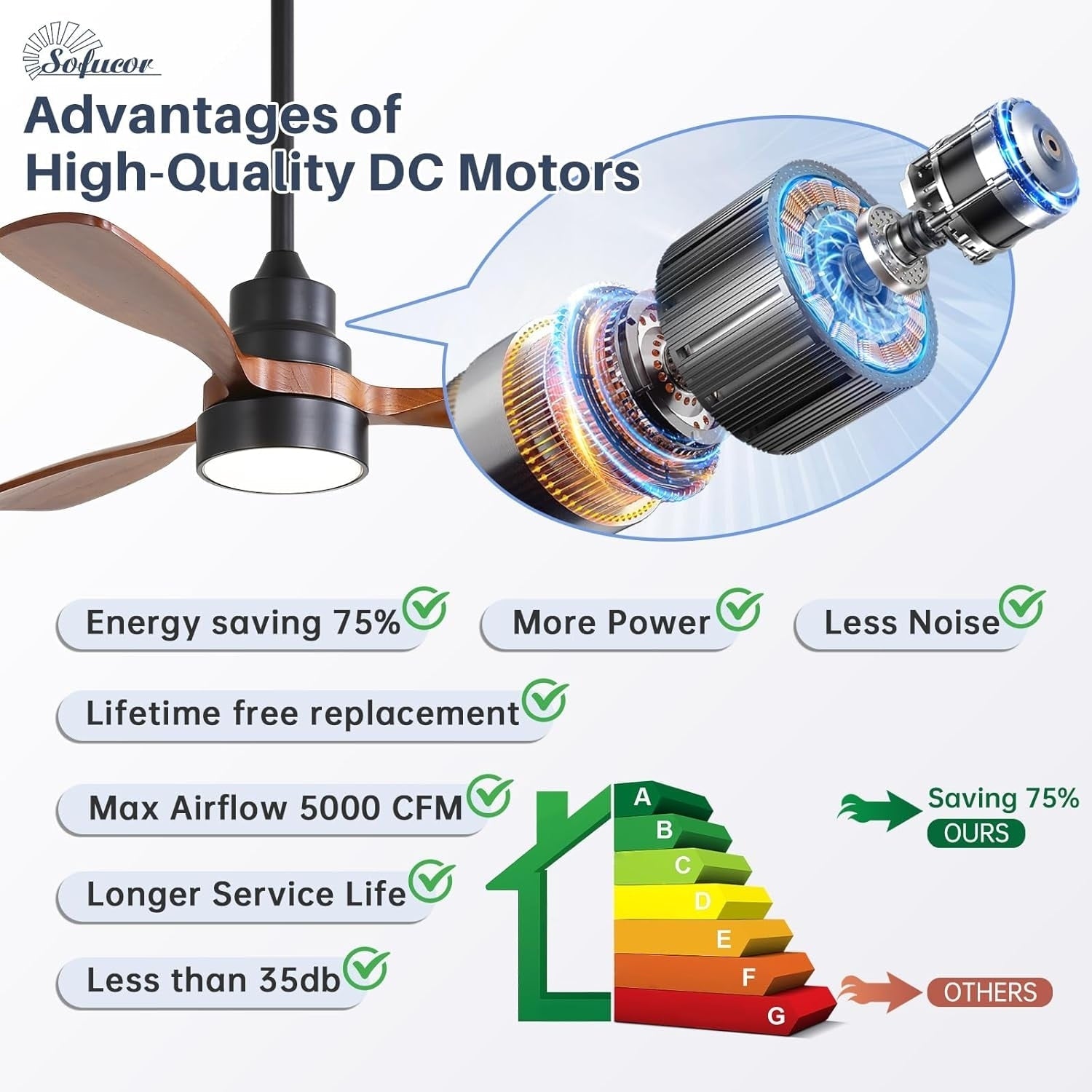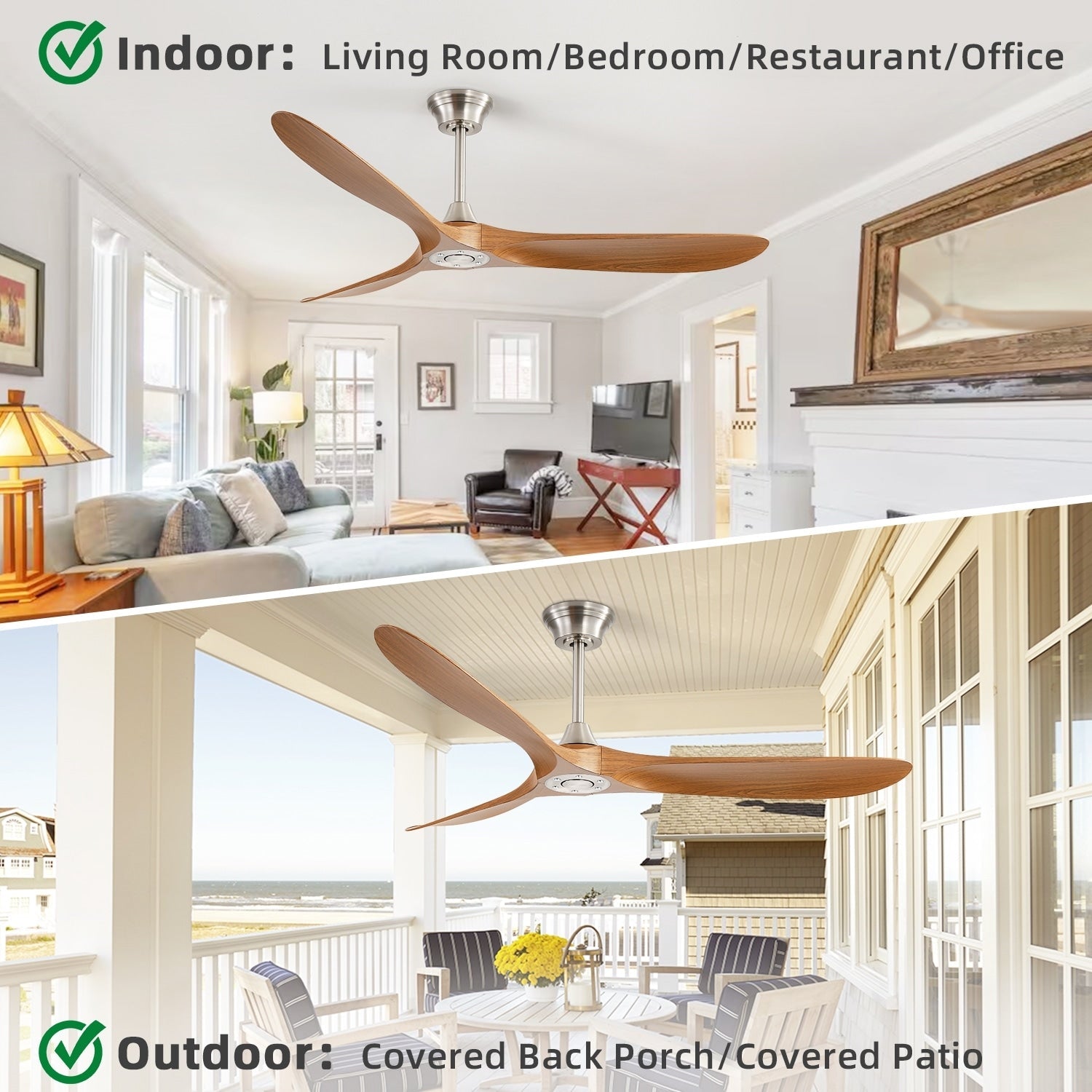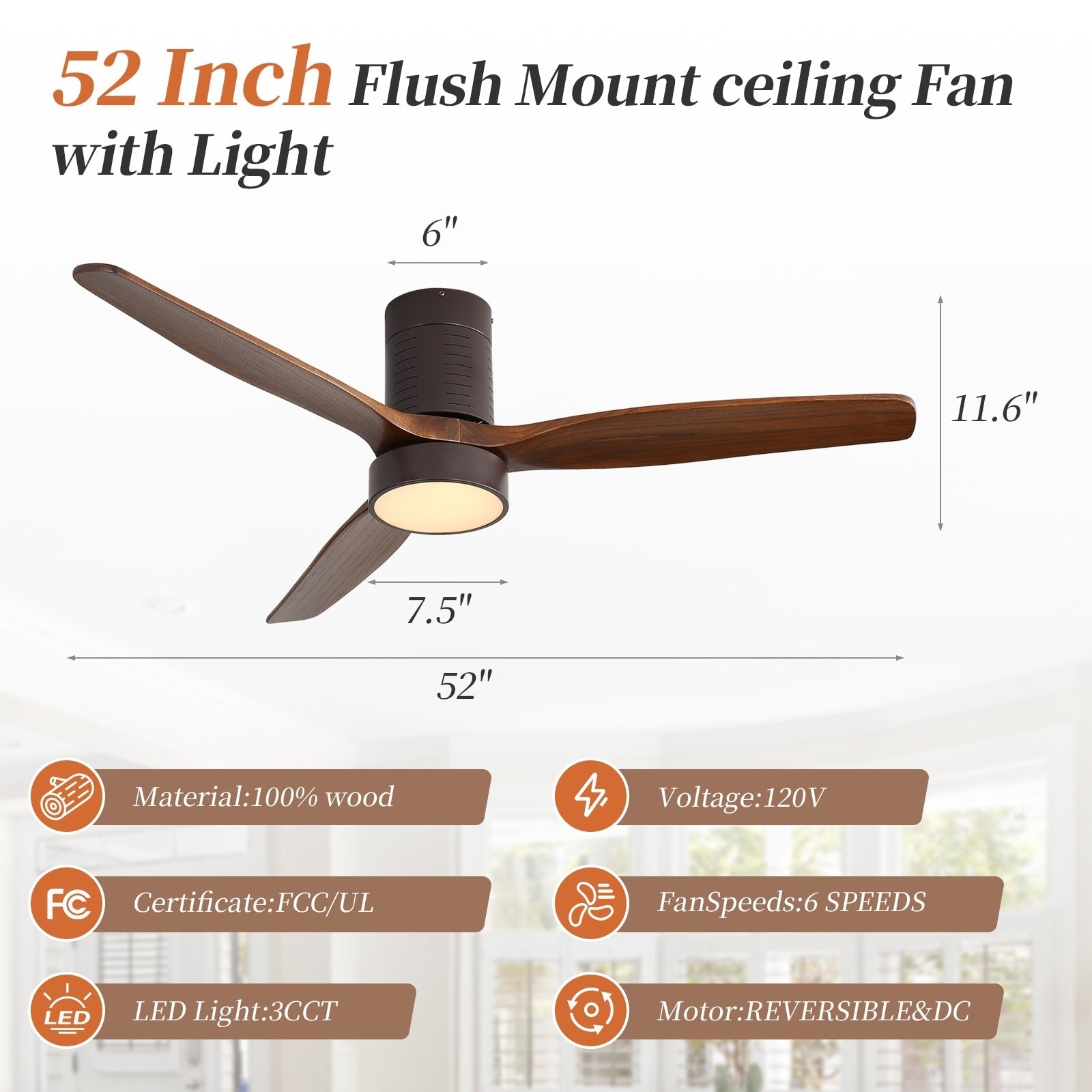 Ventilateur de plafond silencieux en bois de noyer 52/60/48 avec télécommande et éclairage intégré en option
