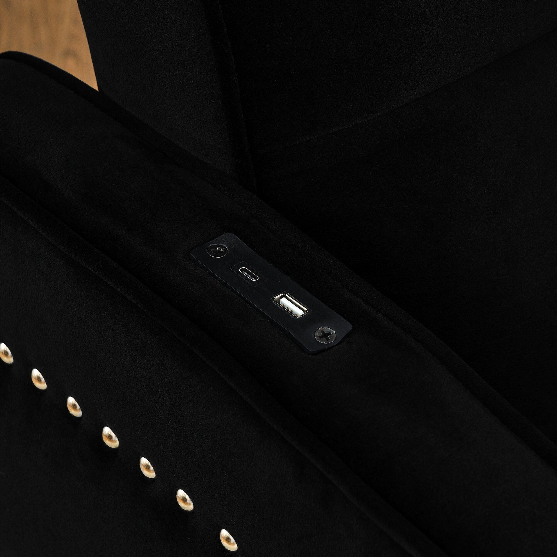 53 Foam Adjustable Loveseat Sofa Bed with Pull-Out Bed, USB/Type-C Charging, Copper Nail Trim, and Arm Storage Pockets