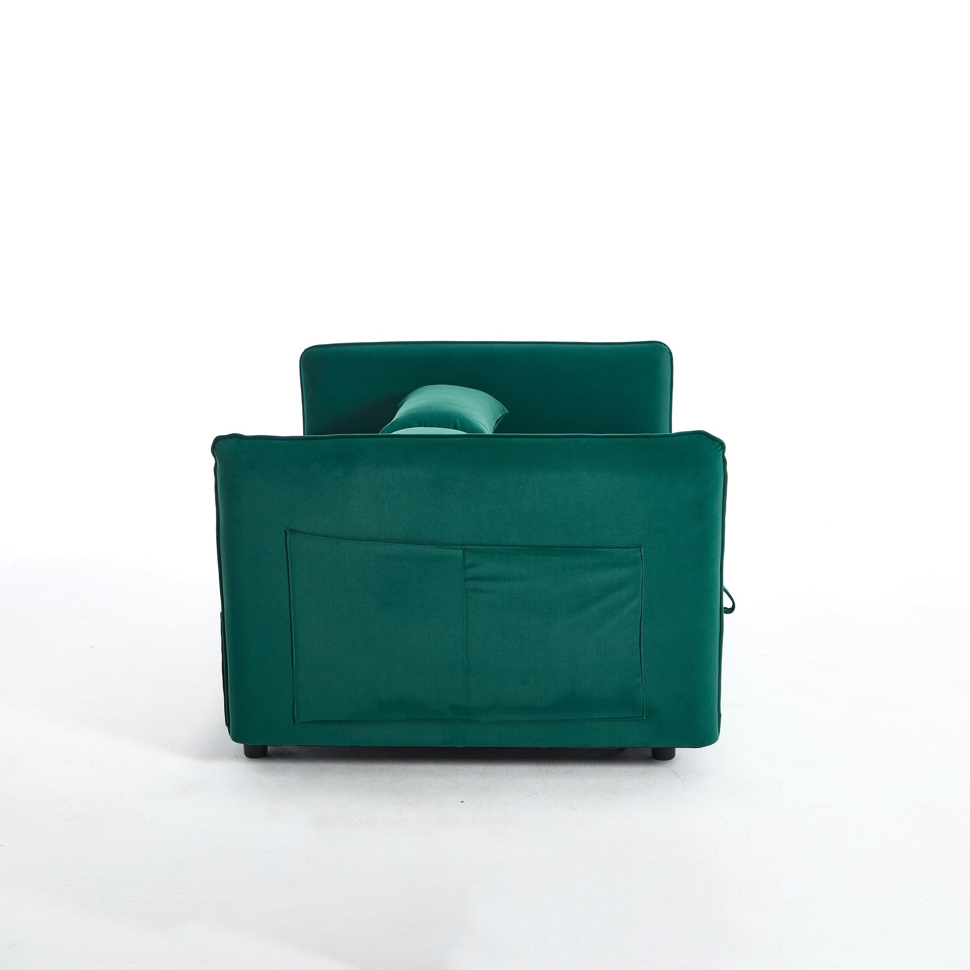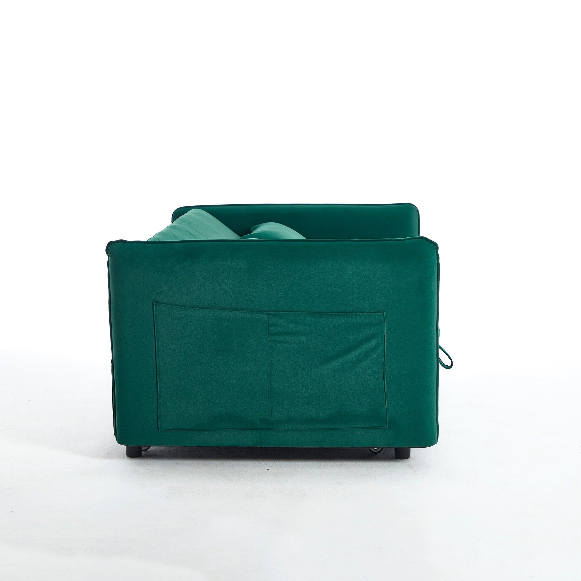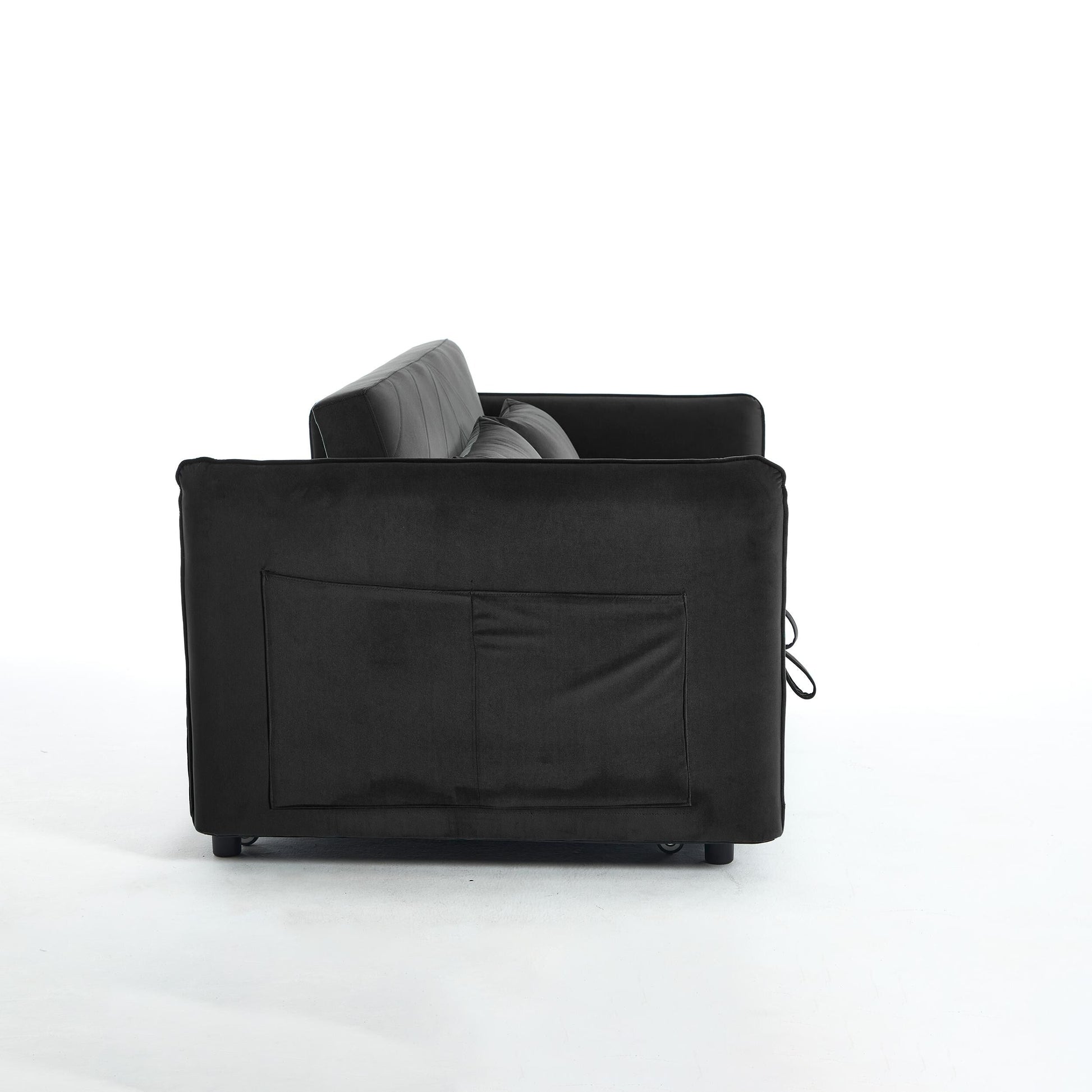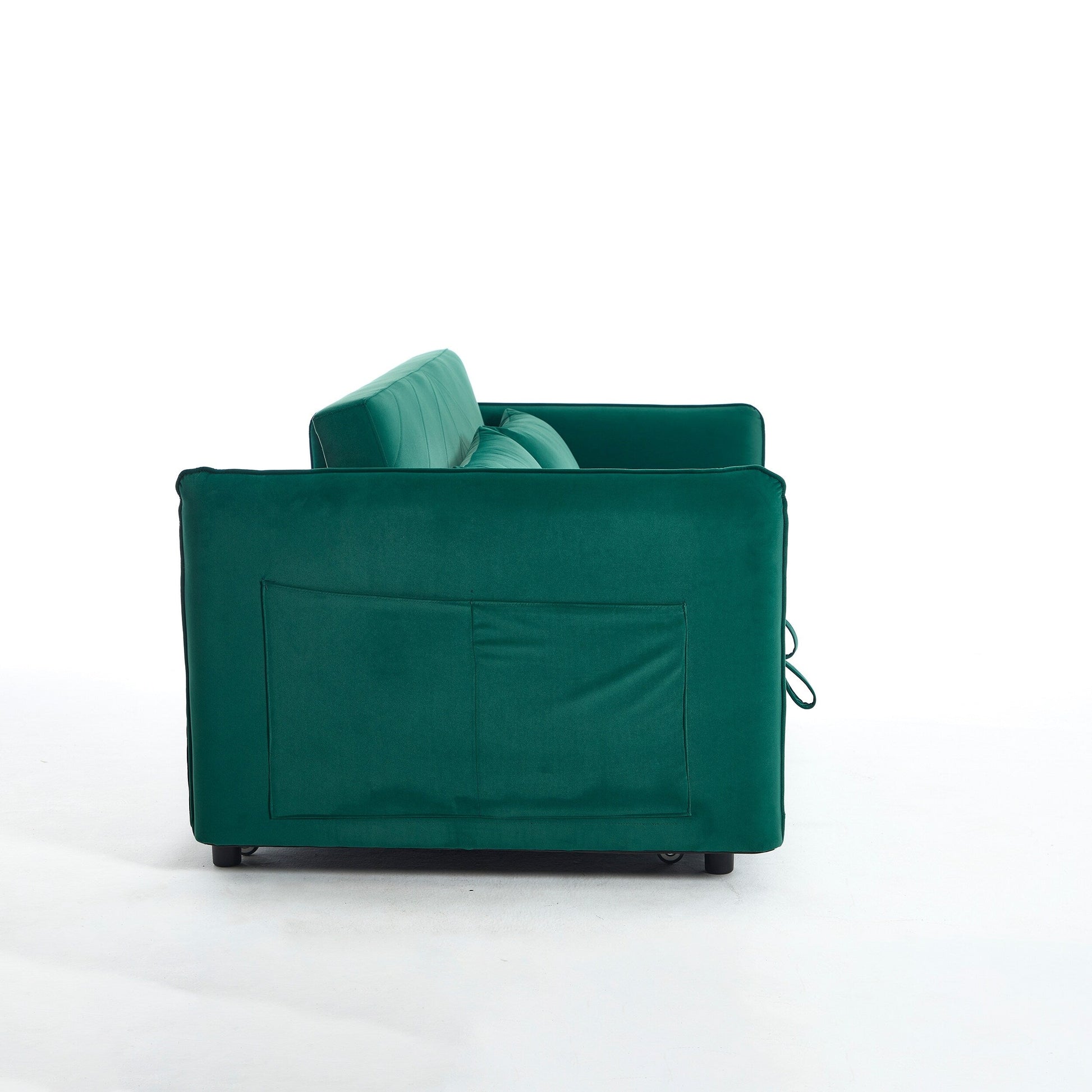 55 Velvet Convertible 3-in-1 Sleeper Sofa Bed with Reclining Backrest, Side Pockets, and 2 Pillows