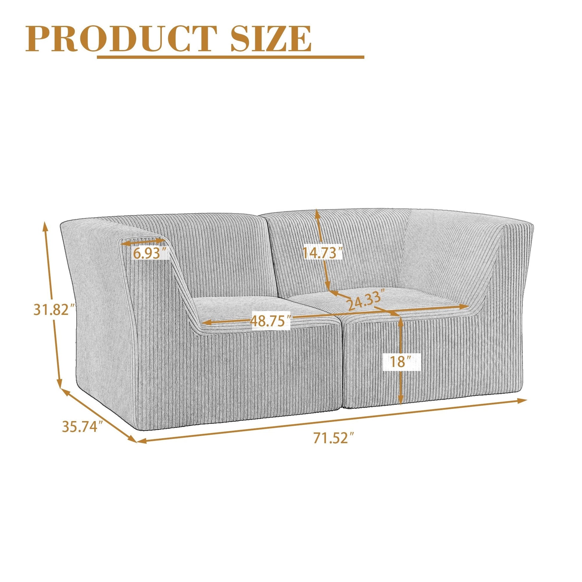 71 W Corduroy Fully Sponge Molded Couch Modular Sectional Sofa
