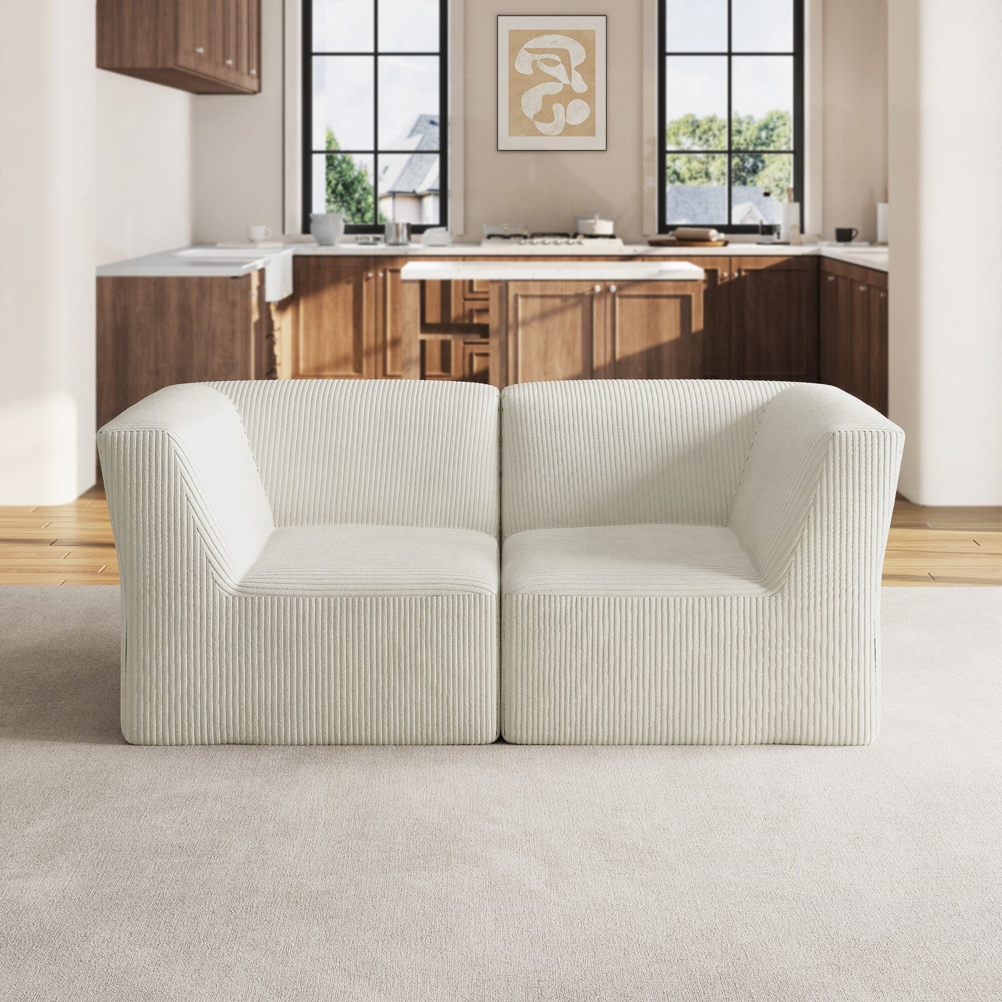 This all foam sofa is engineered for those who prioritize both design and comfort. Constructed from high density foam and molded into a single, self supporting unit, it requires no assembly, simply allow 72 hours after unpacking for full expansion. With a reinforced structure, each section withstands up to 480 lbs while maintaining superior elasticity and ergonomic support. Wrapped in soft, textured corduroy fabric, it enhances both comfort and durability. Whether used as a statement piece or as part of a larger seating arrangement, this sofa embodies minimalist luxury with long lasting performance.