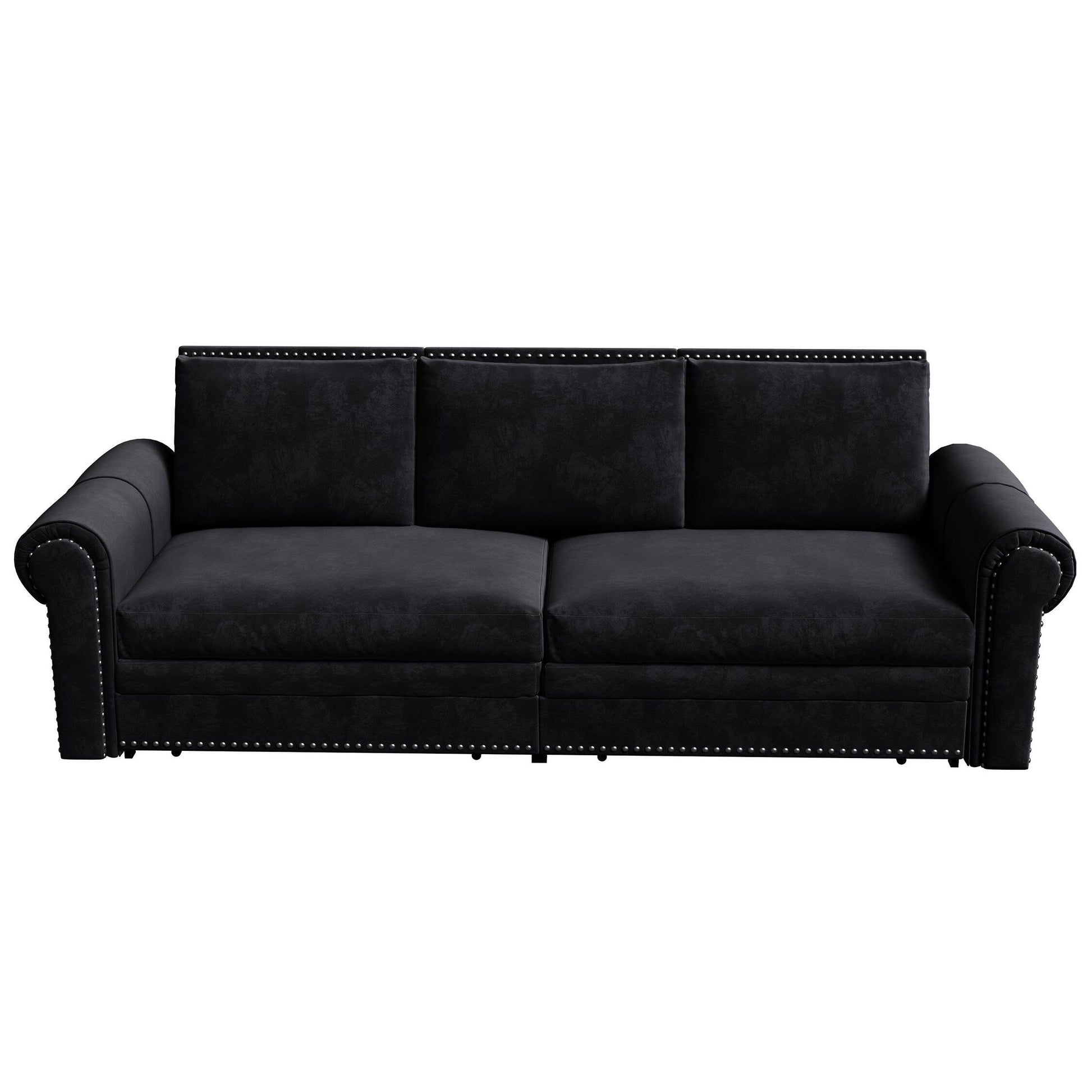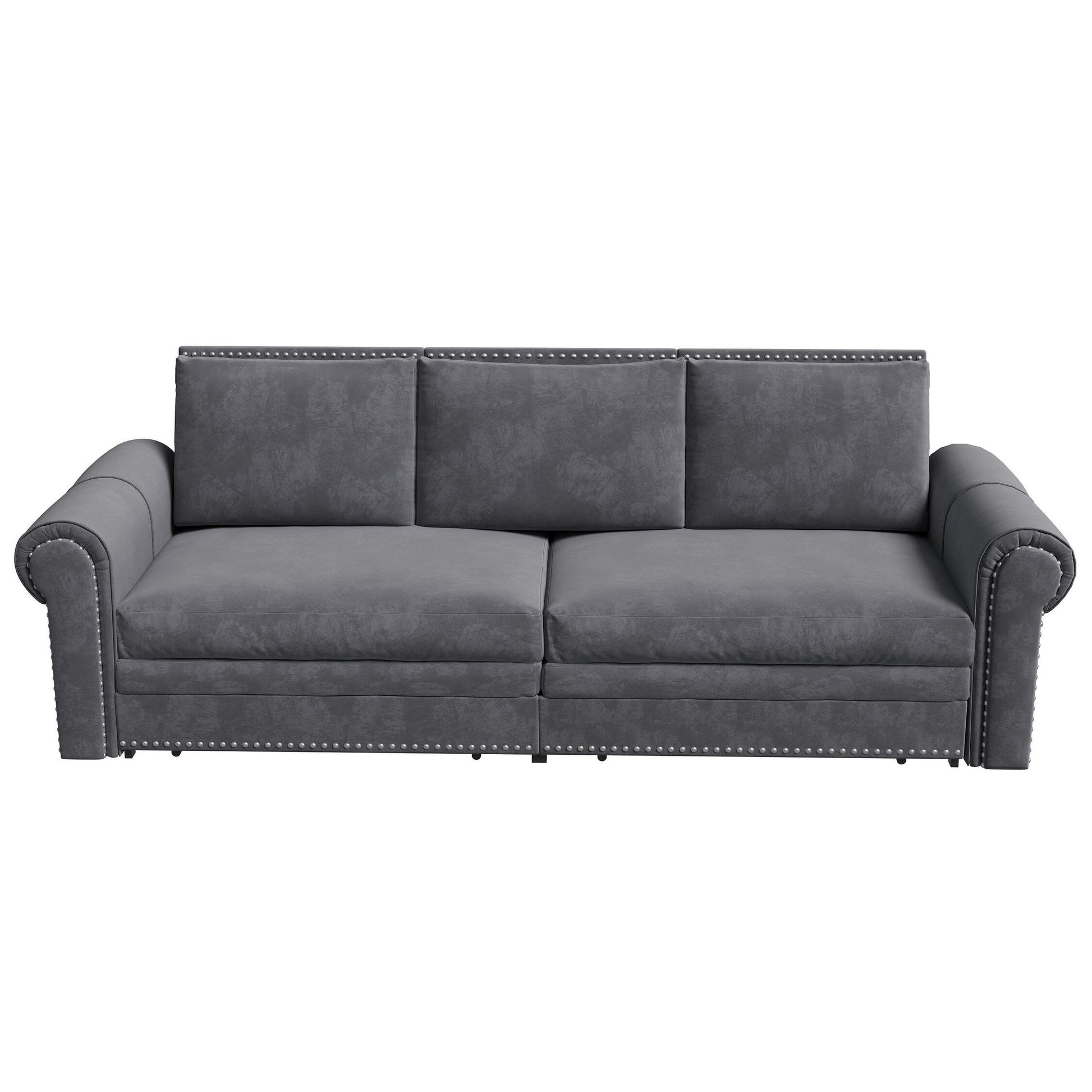 93.7Velvet 3-Seater Sleeper Sofa 3-in-1 with Rolled Arms & Nailhead Trim