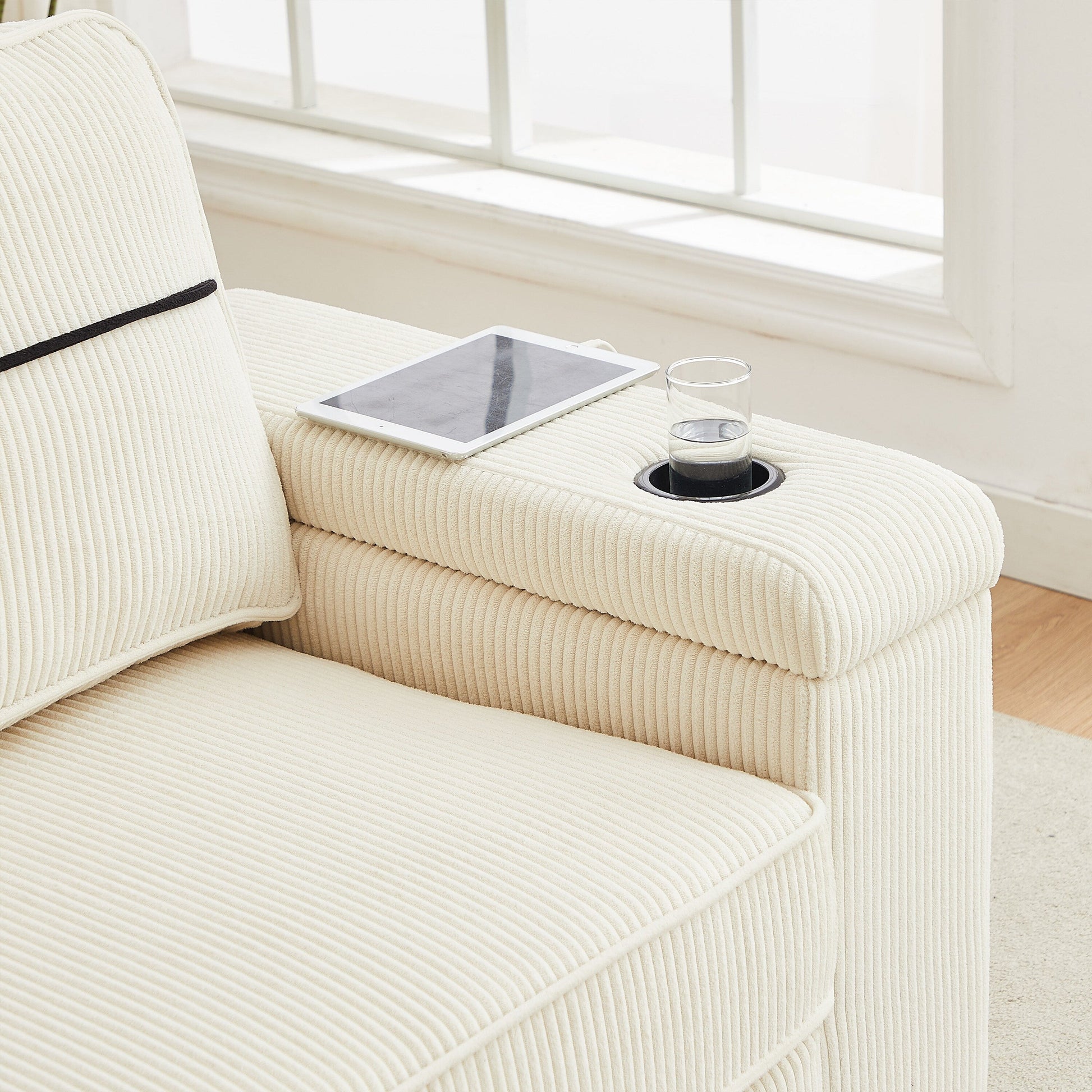 Deep Seat 86.5 Sofa with Storage, USB Charging, and Cup Holders - Comfortable Corduroy Couch
