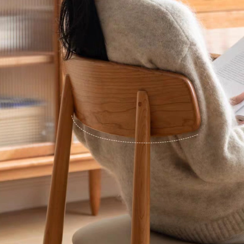 La chaise de salle à manger Elise allie design d'inspiration rétro et confort au quotidien. Fabriquée en merisier massif, ses tons naturels et chaleureux apportent une touche intemporelle à votre salle à manger. Son dossier légèrement incurvé offre un soutien ergonomique, tandis que son assise rembourrée, recouverte d'un tissu doux et neutre, vous garantit des heures de confort.