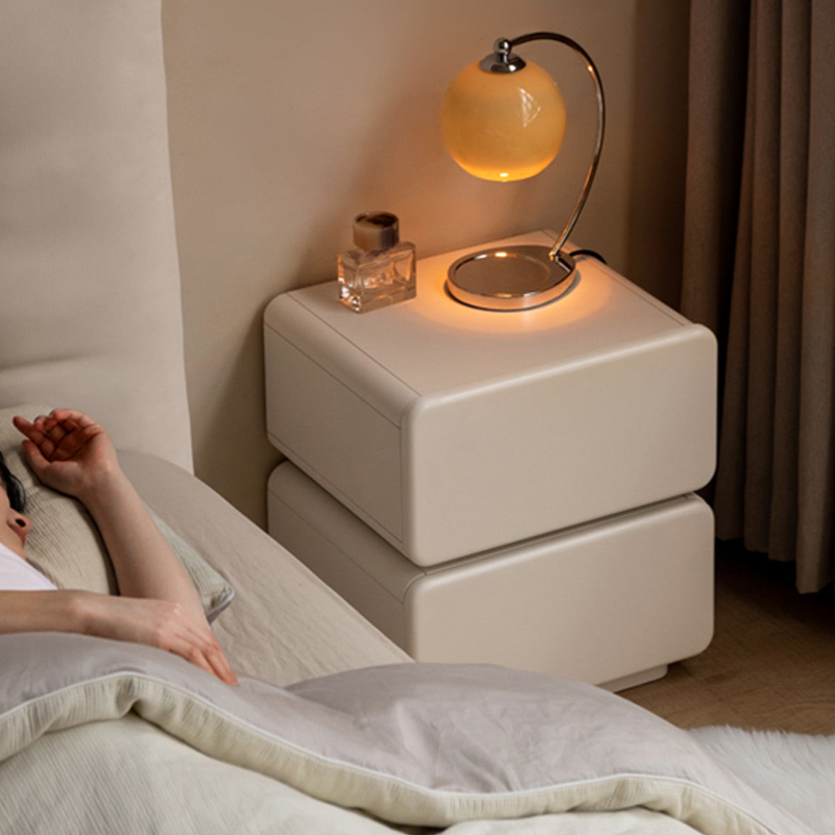 La table de chevet Elsa allie élégance et praticité dans une pièce magnifiquement conçue. Fabriquée à partir de matériaux de haute qualité, elle dispose de grands tiroirs pour ranger produits de beauté et autres essentiels.