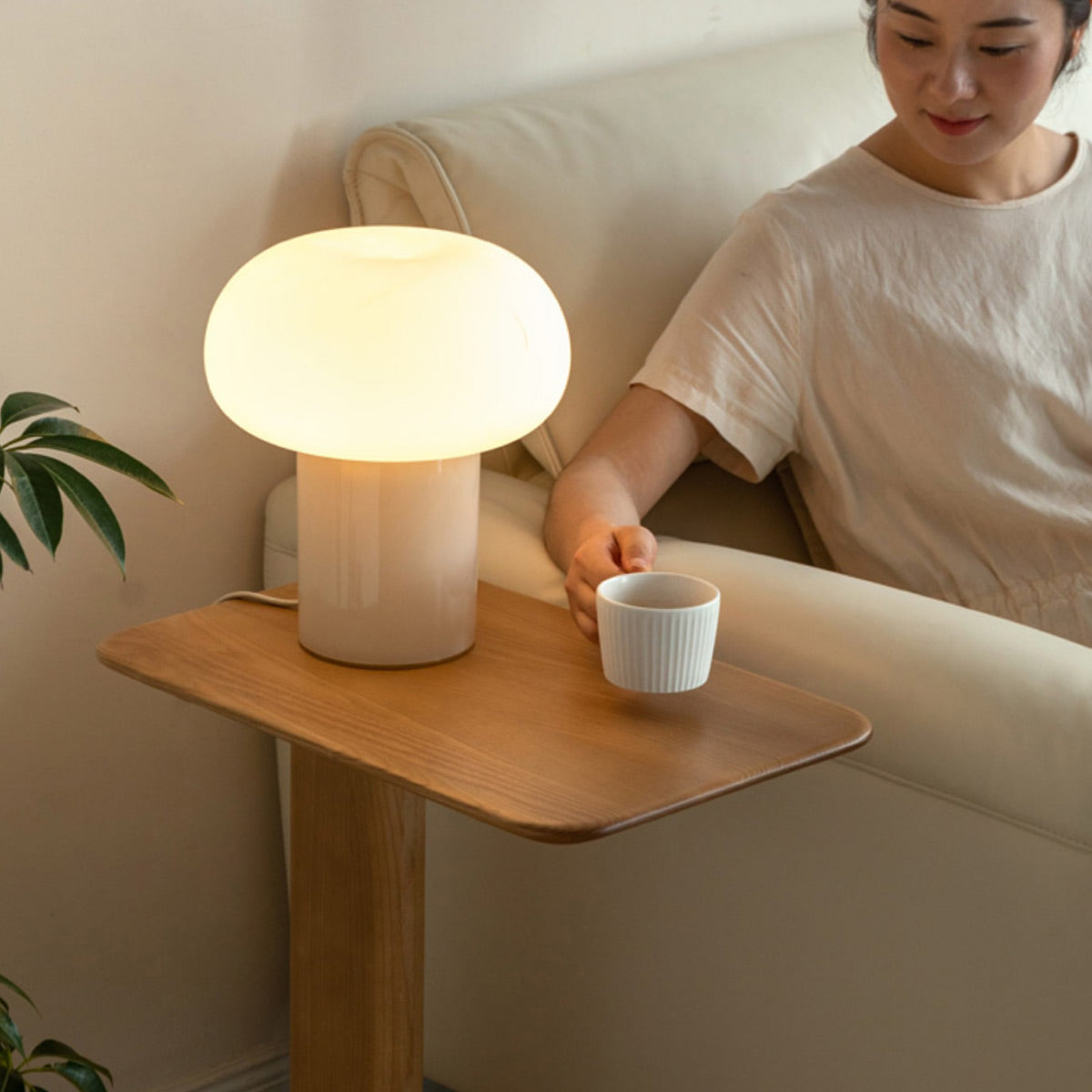La table d'appoint Finley présente un design élégant et minimaliste avec un plateau rectangulaire soutenu par une base robuste à un seul pied.