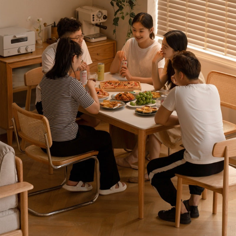 Sublimez votre salle à manger avec l'élégance intemporelle de la table à manger en pierre frittée Emilia. Conçue pour allier beauté et durabilité, cette table associe un élégant plateau en pierre frittée à une structure robuste en bois massif, ce qui en fait une pièce maîtresse idéale pour les repas de famille, les réunions et la vie quotidienne.