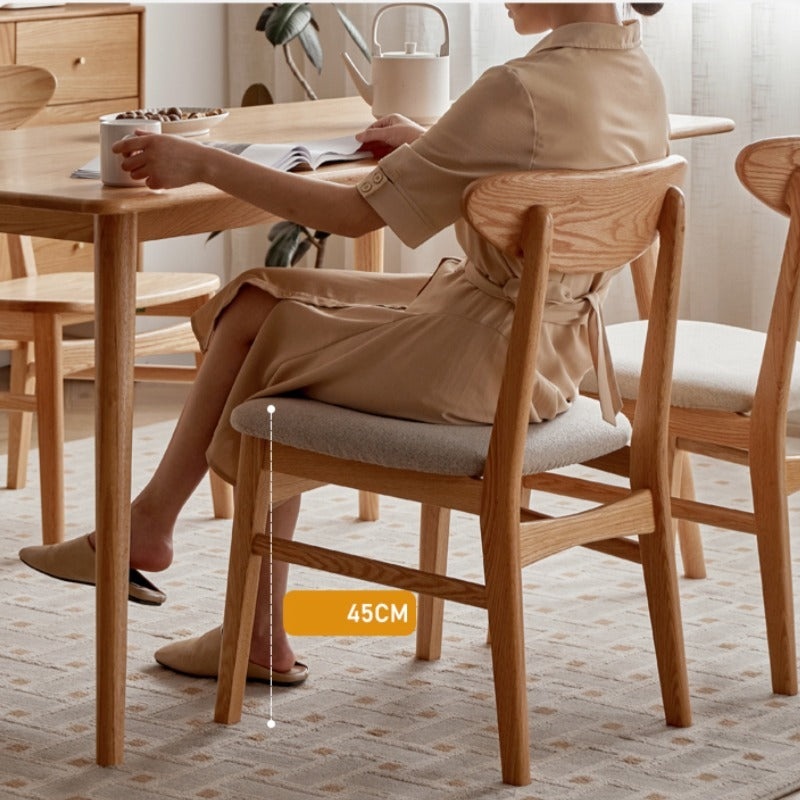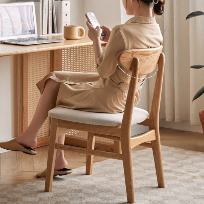 La chaise de salle à manger Nara en chêne massif s'inspire du minimalisme japonais et est conçue pour apporter chaleur naturelle et confort au quotidien à votre intérieur. Fabriquée en chêne massif certifié FAS, elle présente un dossier légèrement incurvé et une assise rembourrée alliant beauté intemporelle et fonctionnalité.