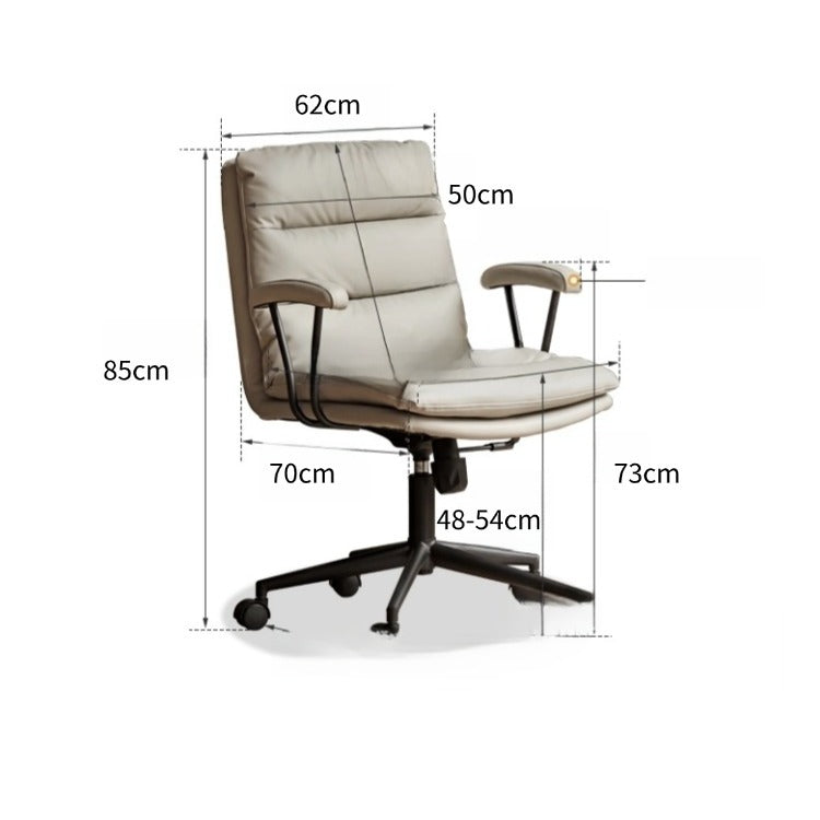 La chaise de bureau Otis allie confort douillet et fonctionnalité moderne, ce qui en fait le compagnon idéal pour les longues heures de travail. Revêtue de similicuir résistant, elle offre une assise moelleuse et confortable, sans compromis sur le style.