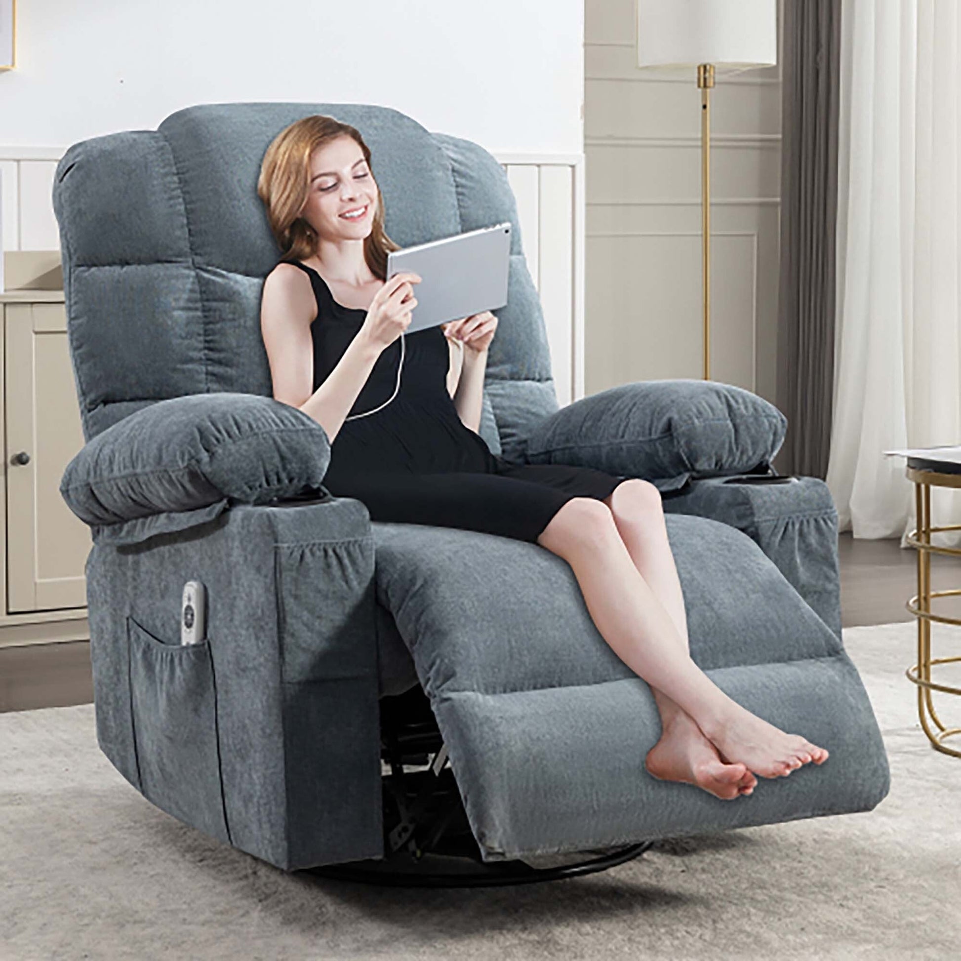 Oversized Massage Rocker Recliner Chair with 2 Cup Holders