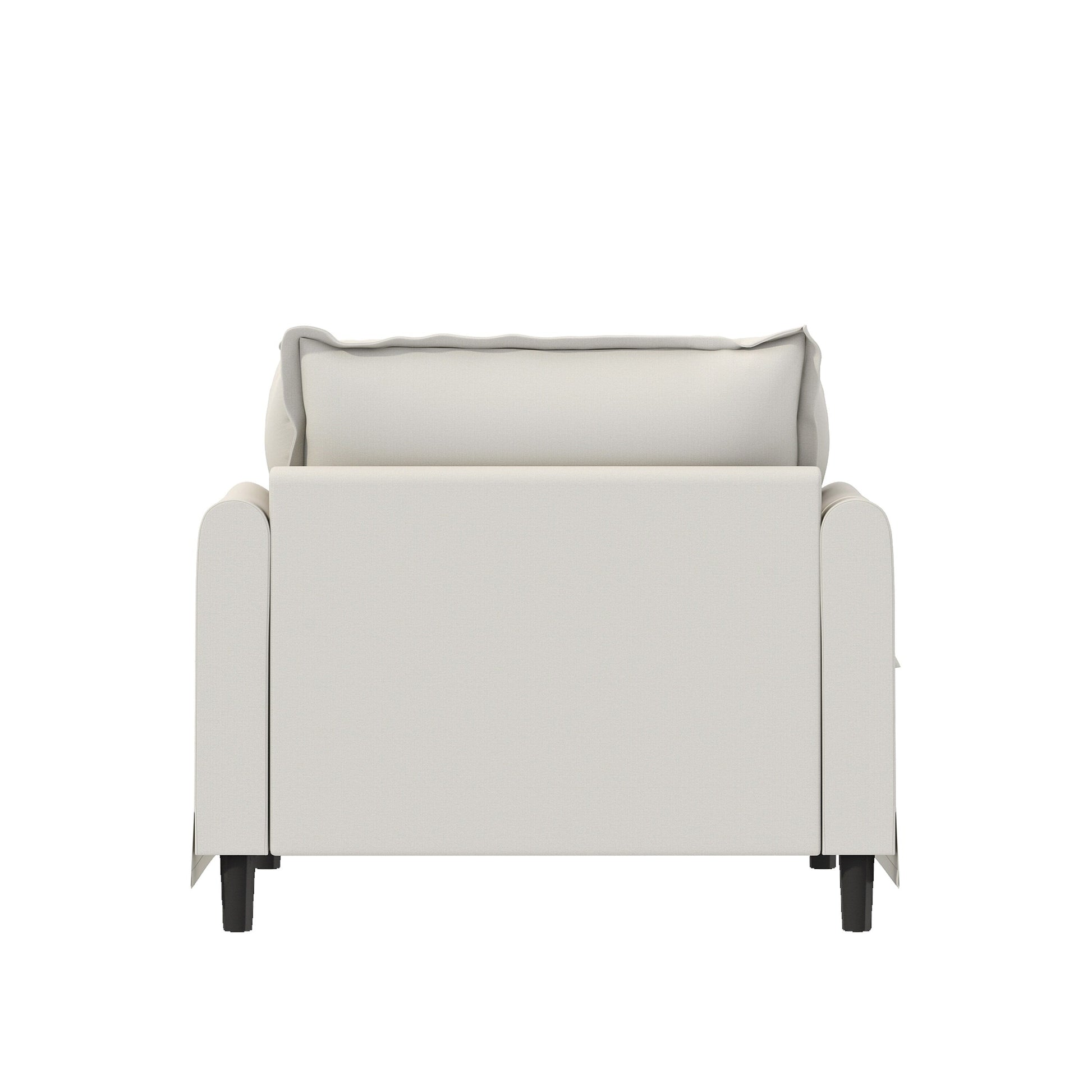 Elegant and Thoughtful Design: The sofa is designed with sophisticated details that enhance its aesthetic appeal. The seat cushions are adorned with a skirted edge design, giving the sofa a refined, flowing look. The armrests feature a curved, petal-like shape, adding a touch of elegance and softness to the overall form. These design elements contribute to both the comfort and visual appeal of the sofa, making it a stylish addition to any room.