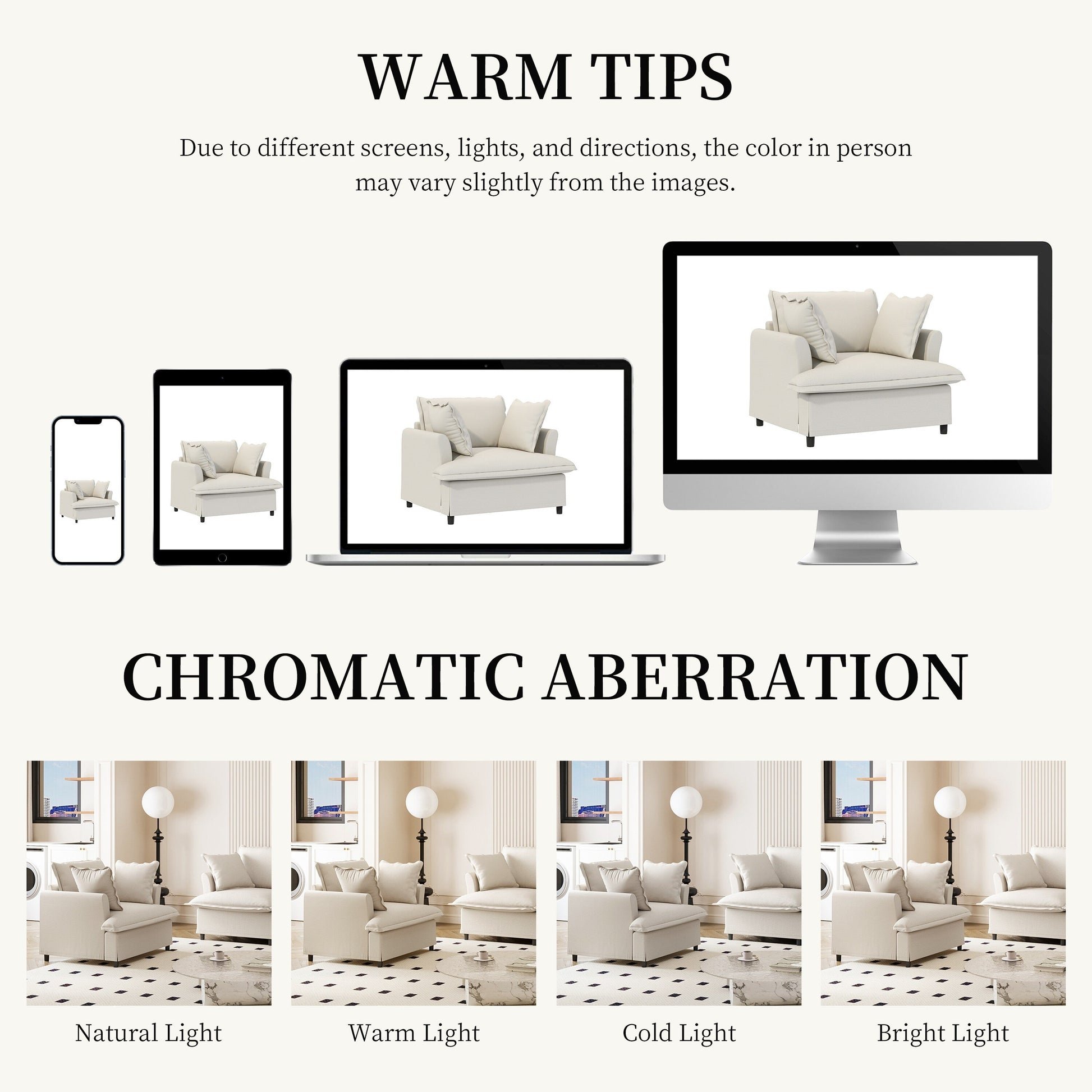 Single Seat Sofa Module For Modular Sectional Sofa,Wide Seat Chenille Armchair With Pillows,Upholstered Single Couch Lounge