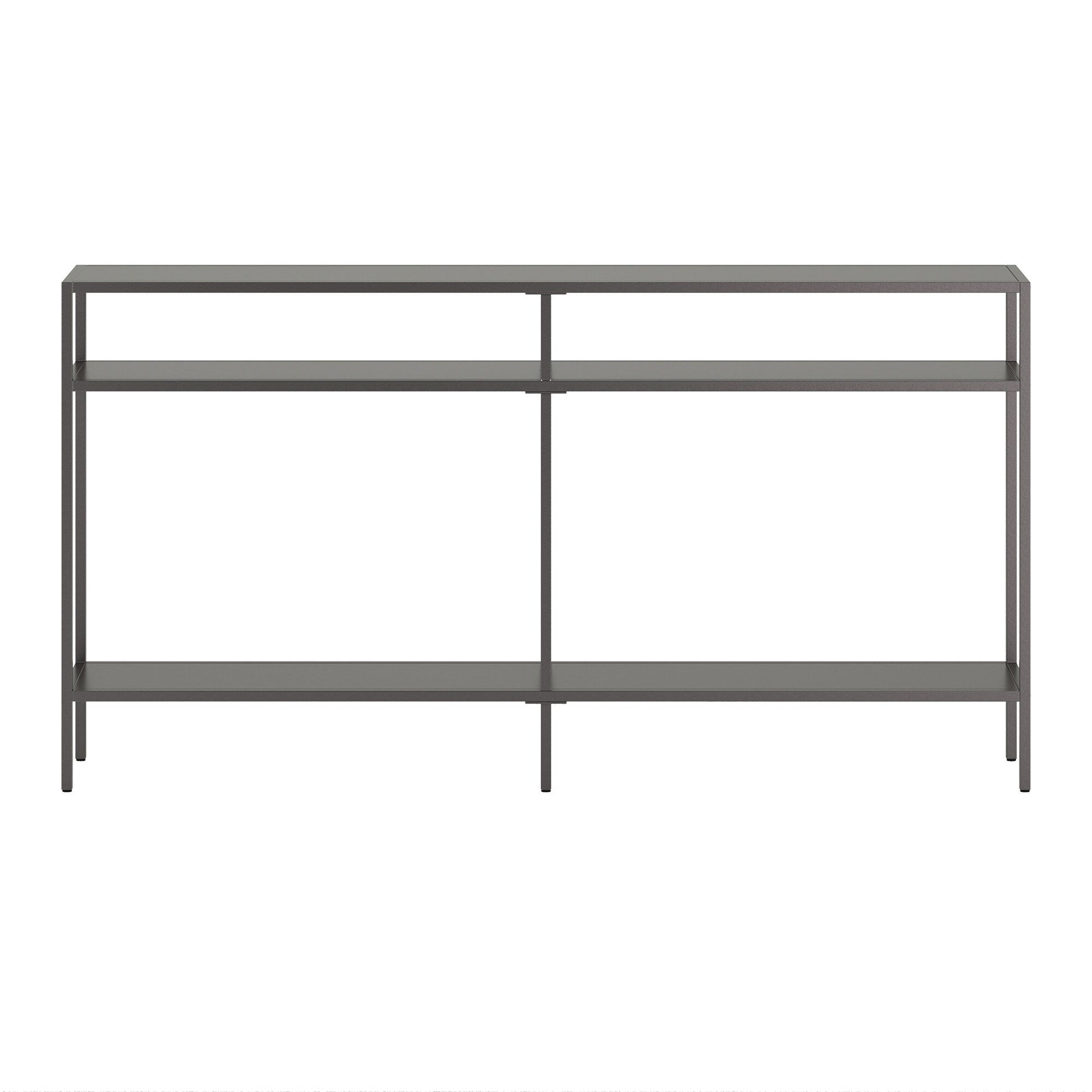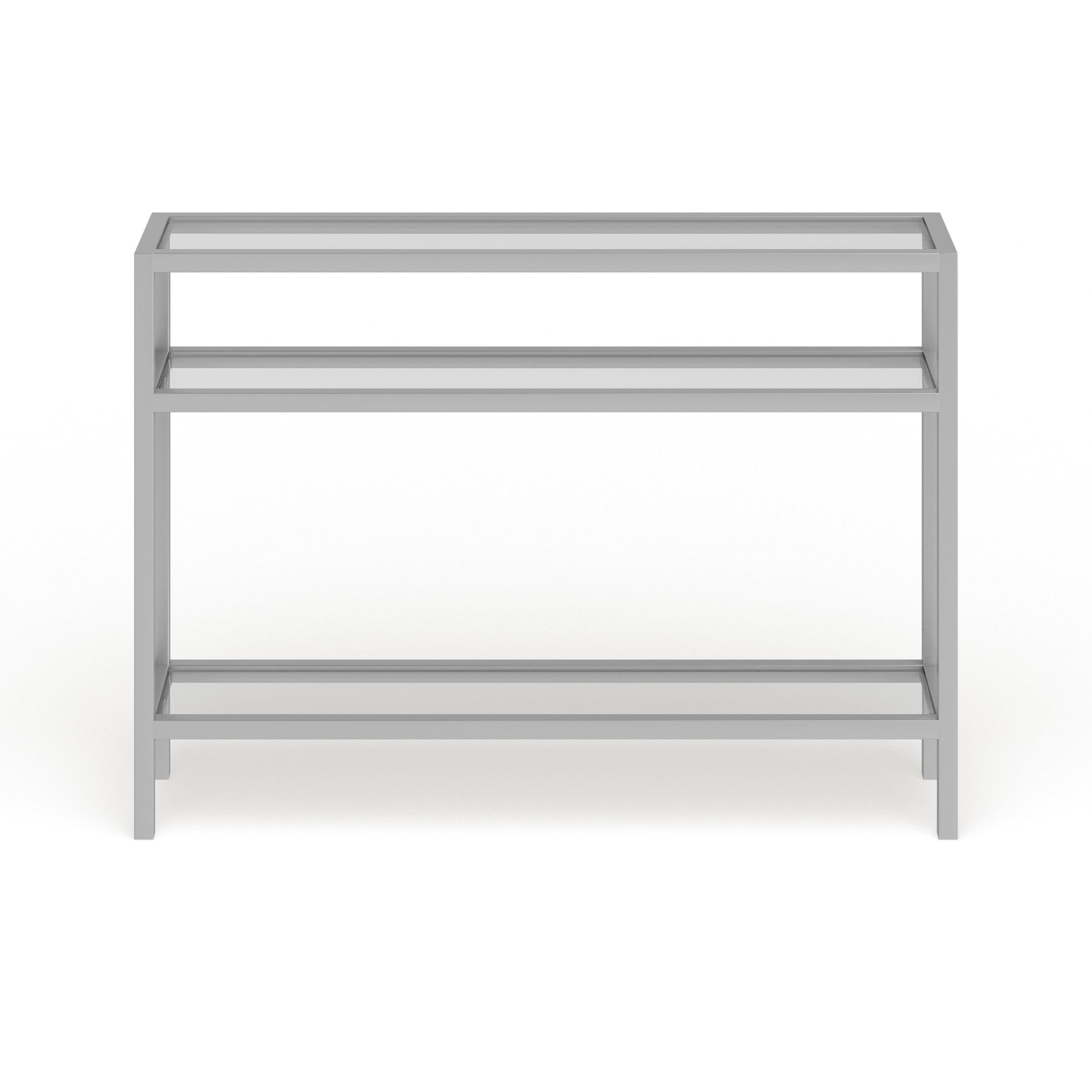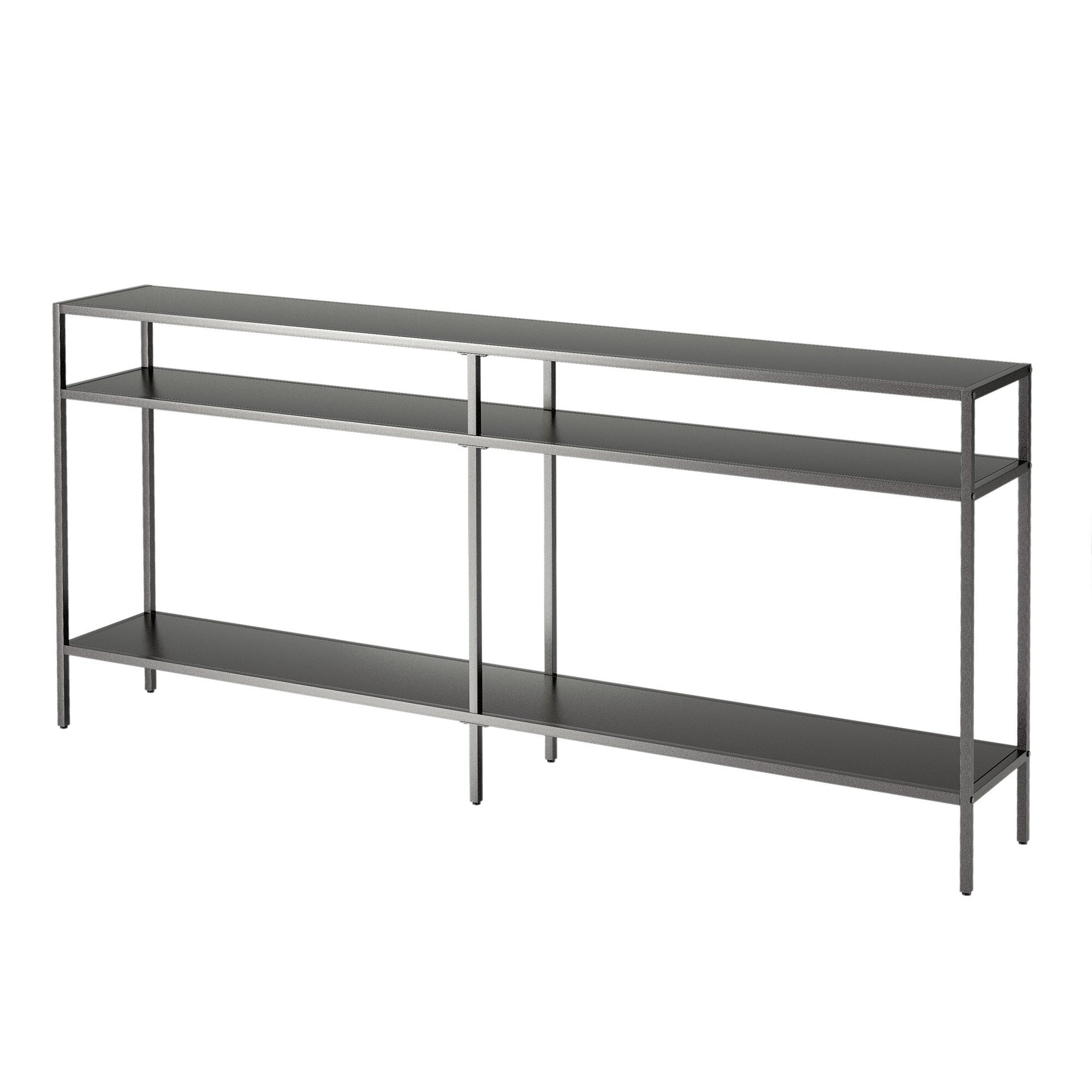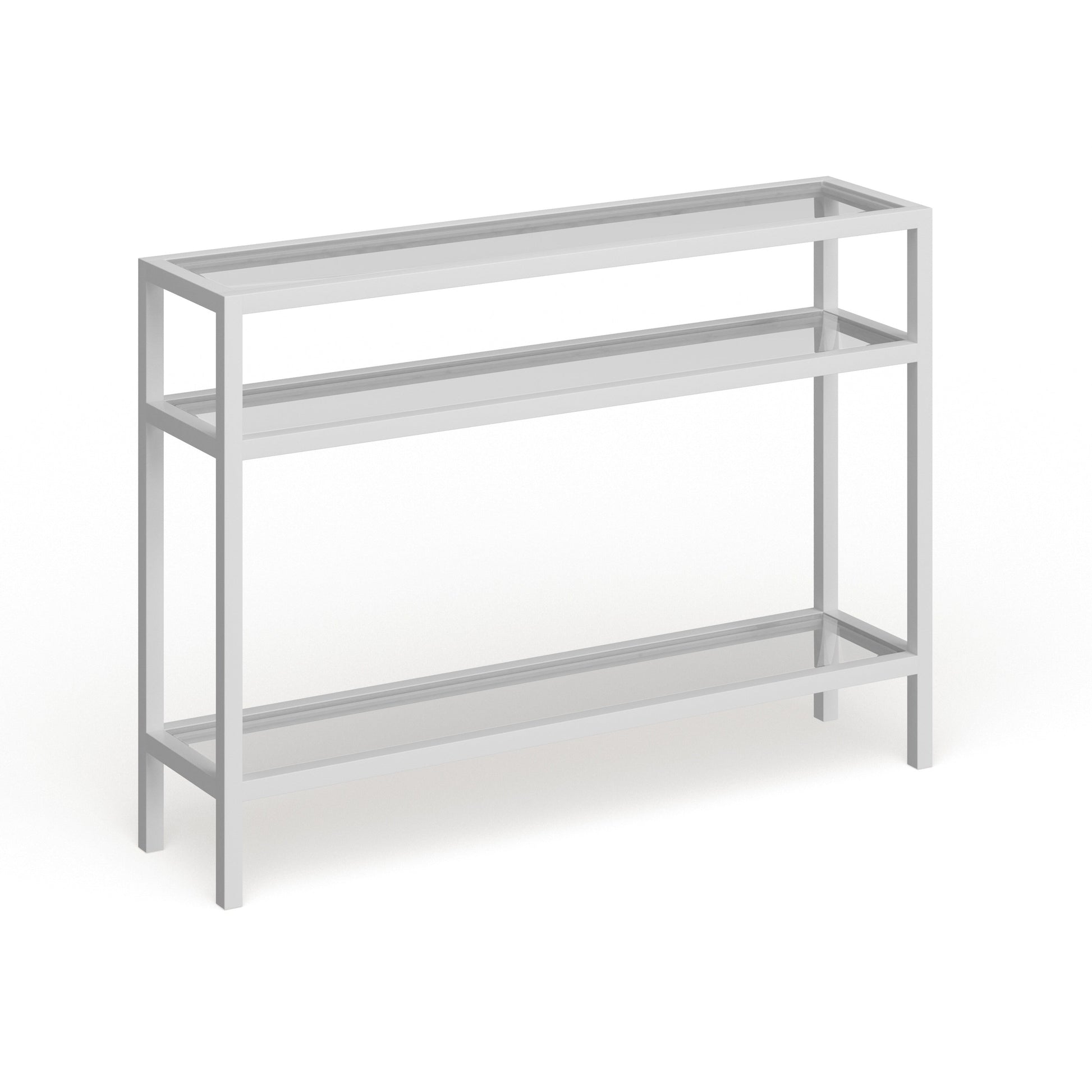 Ajoutez une touche d'élégance à votre intérieur avec la console Sivil. Sa structure robuste en acier est disponible en finition bronze noirci, laiton doré, nickel satiné ou blanc, s'intégrant parfaitement à tous les styles de décoration. Son plateau et ses étagères en verre transparent apportent une touche contemporaine à votre intérieur.