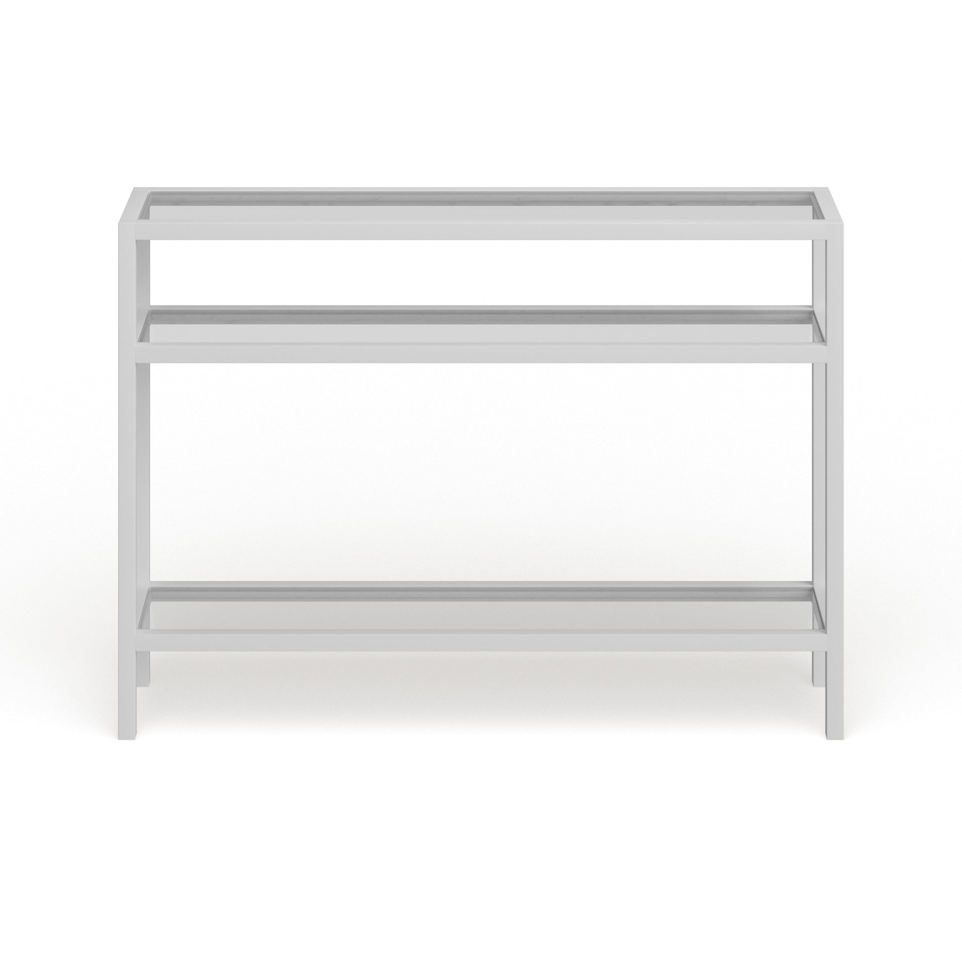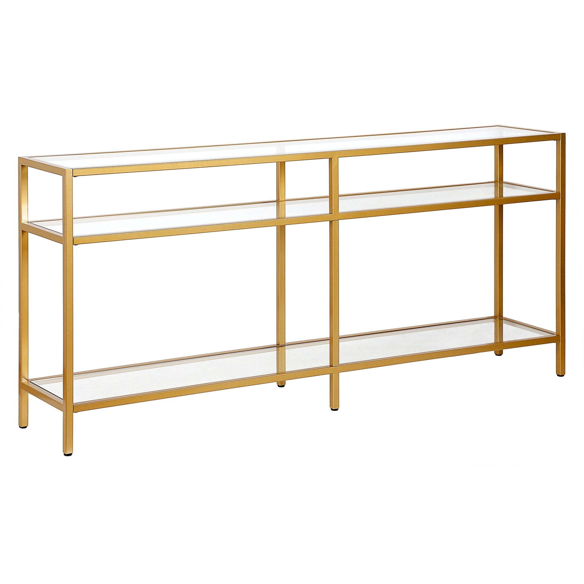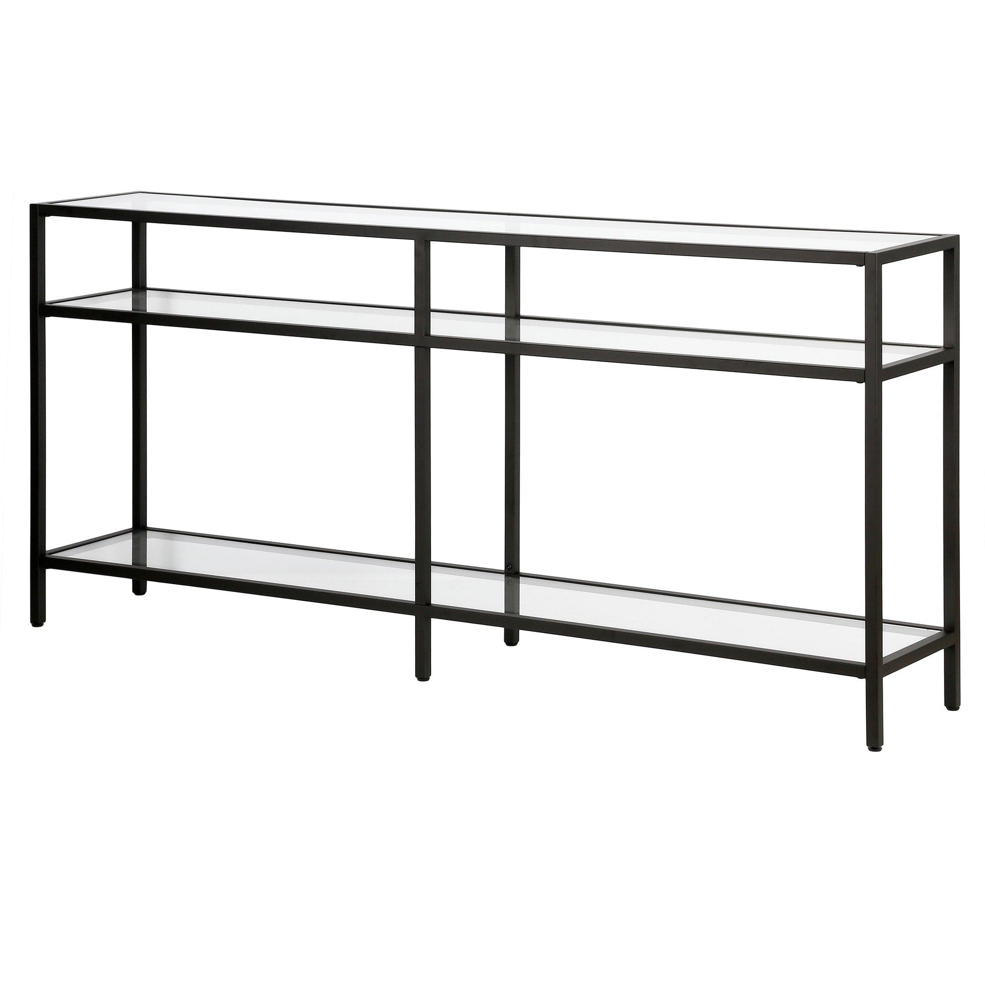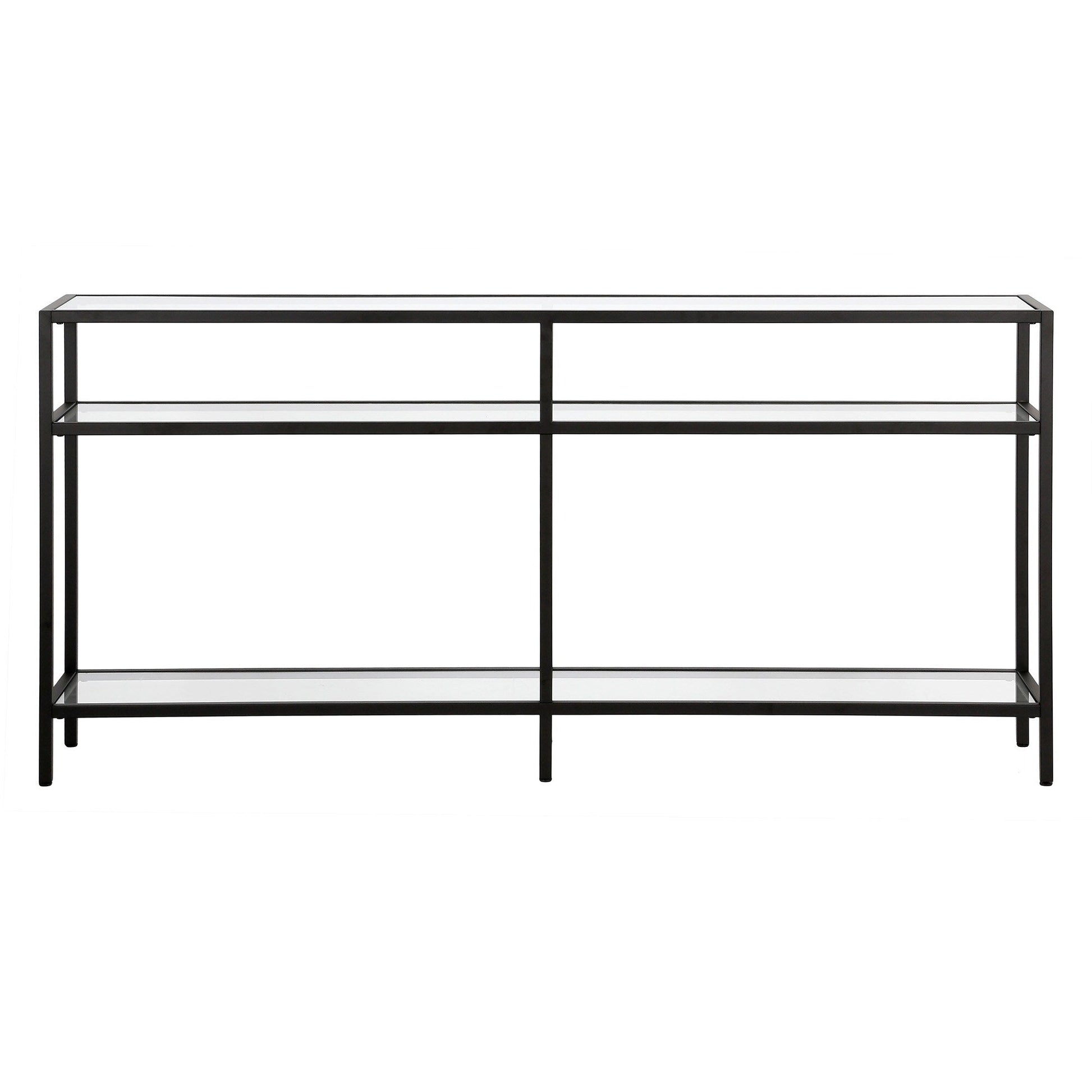 Ajoutez une touche d'élégance à votre intérieur avec la console Sivil. Sa structure robuste en acier est disponible en finition bronze noirci, laiton doré, nickel satiné ou blanc, s'intégrant parfaitement à tous les styles de décoration. Son plateau et ses étagères en verre transparent apportent une touche contemporaine à votre intérieur.