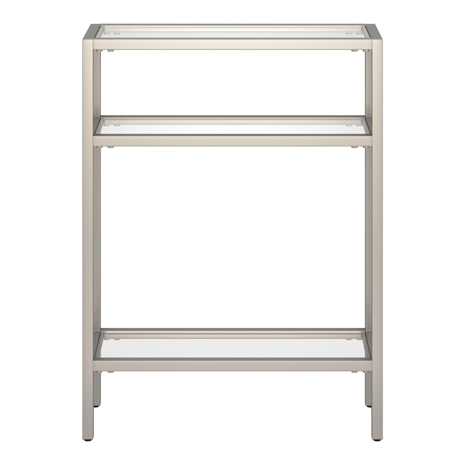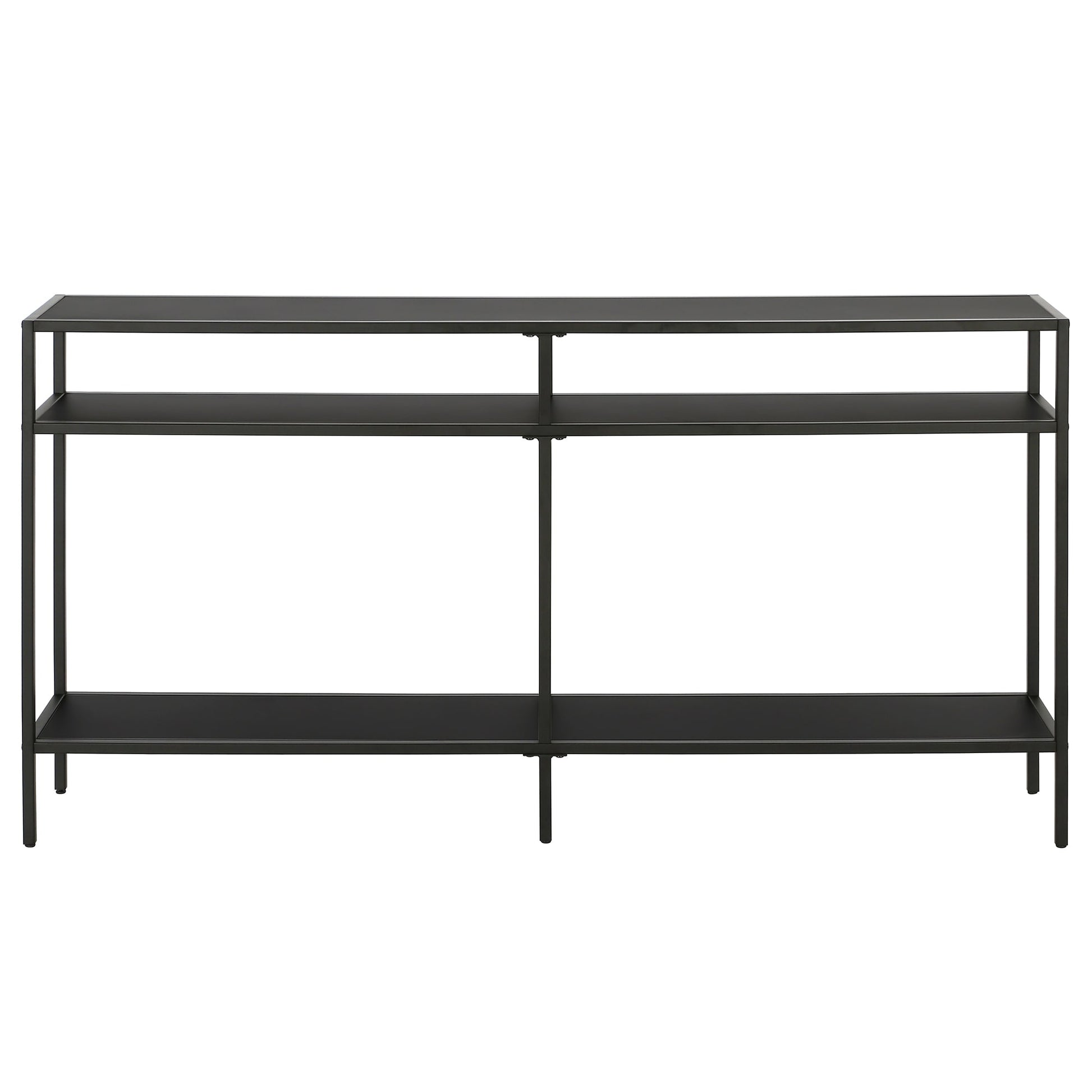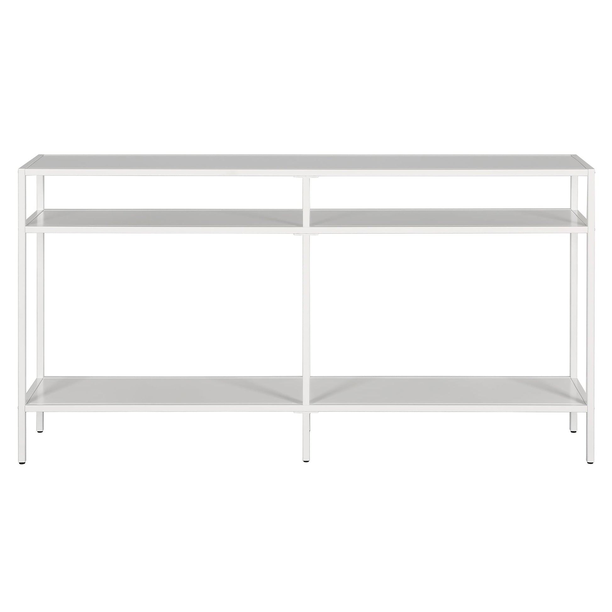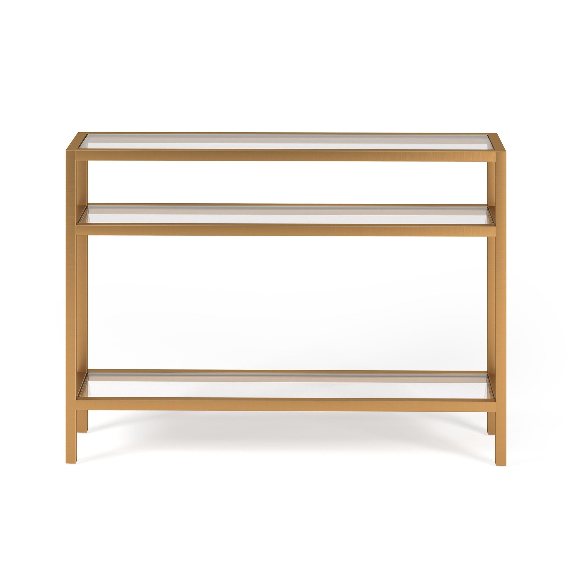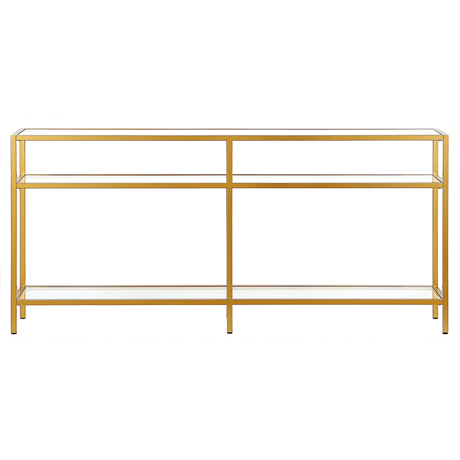 Ajoutez une touche d'élégance à votre intérieur avec la console Sivil. Sa structure robuste en acier est disponible en finition bronze noirci, laiton doré, nickel satiné ou blanc, s'intégrant parfaitement à tous les styles de décoration. Son plateau et ses étagères en verre transparent apportent une touche contemporaine à votre intérieur.