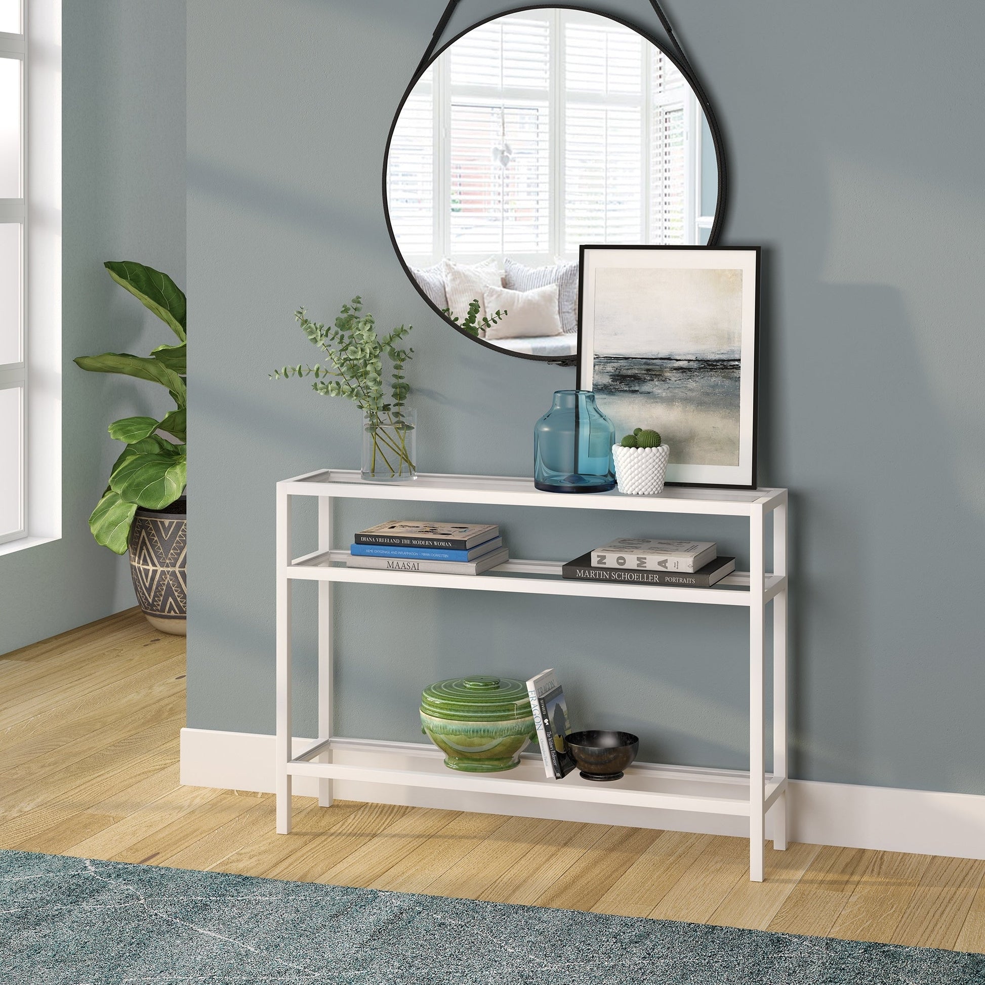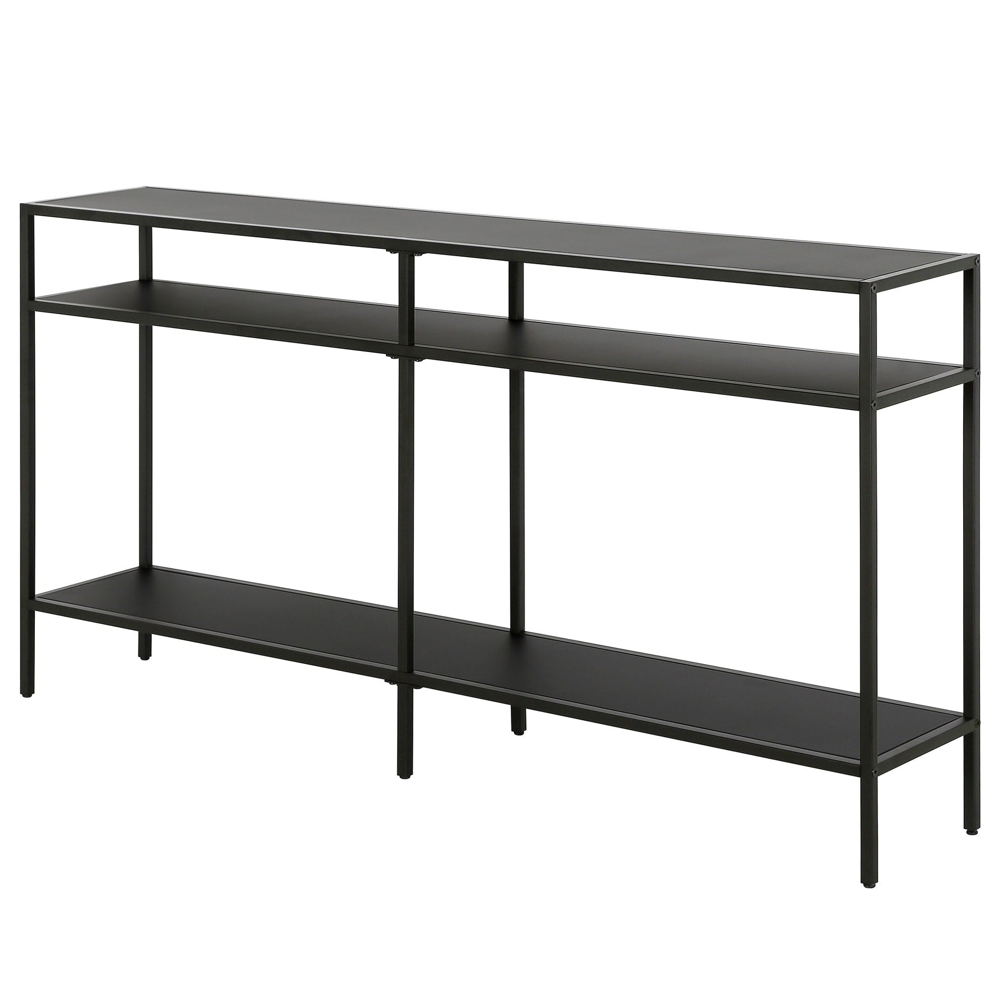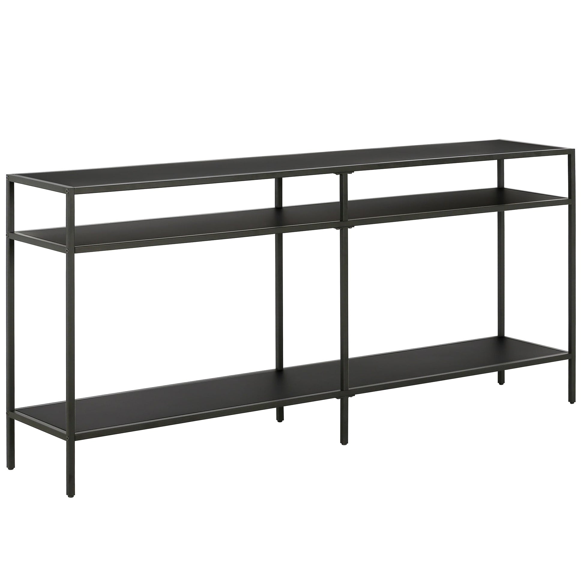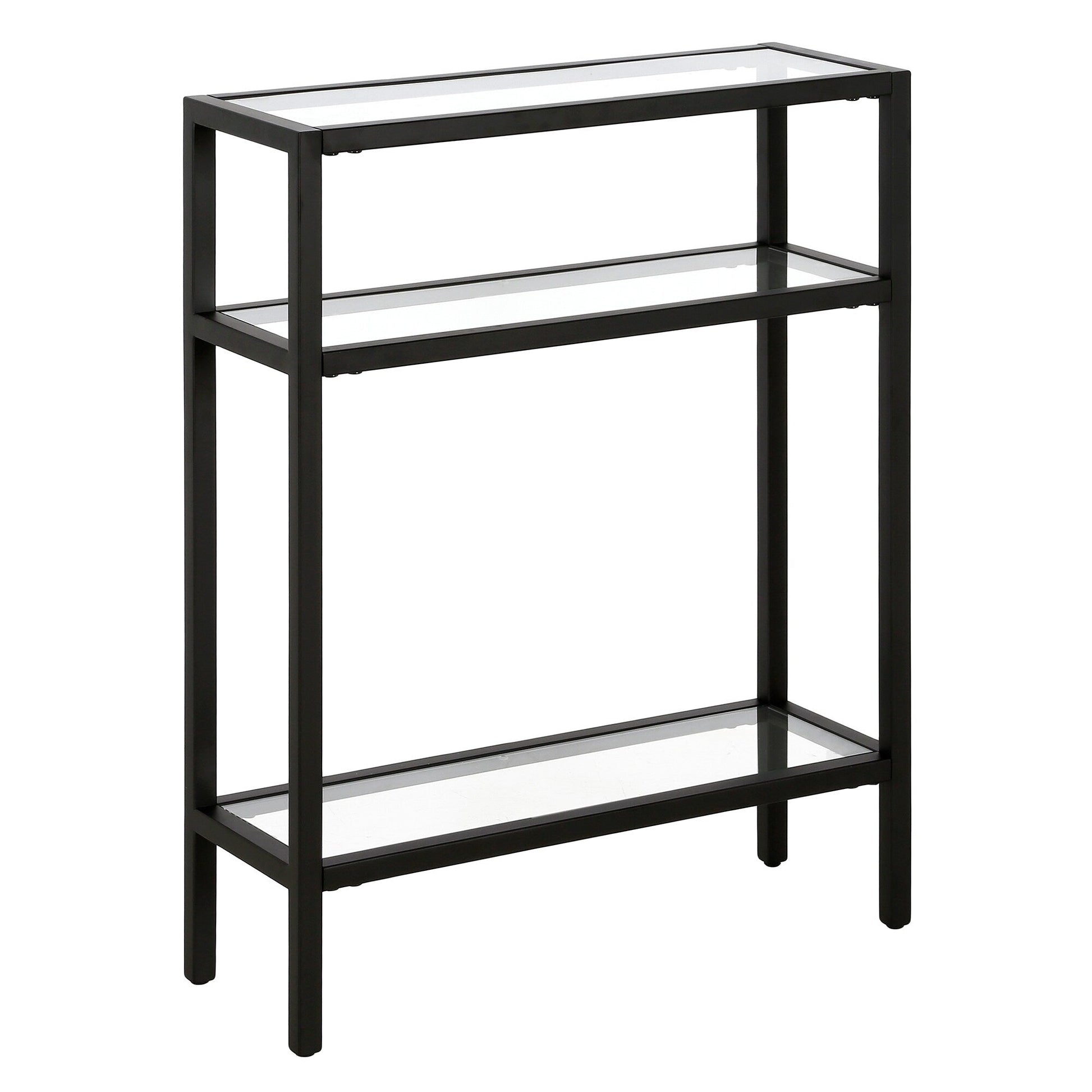 Ajoutez une touche d'élégance à votre intérieur avec la console Sivil. Sa structure robuste en acier est disponible en finition bronze noirci, laiton doré, nickel satiné ou blanc, s'intégrant parfaitement à tous les styles de décoration. Son plateau et ses étagères en verre transparent apportent une touche contemporaine à votre intérieur.