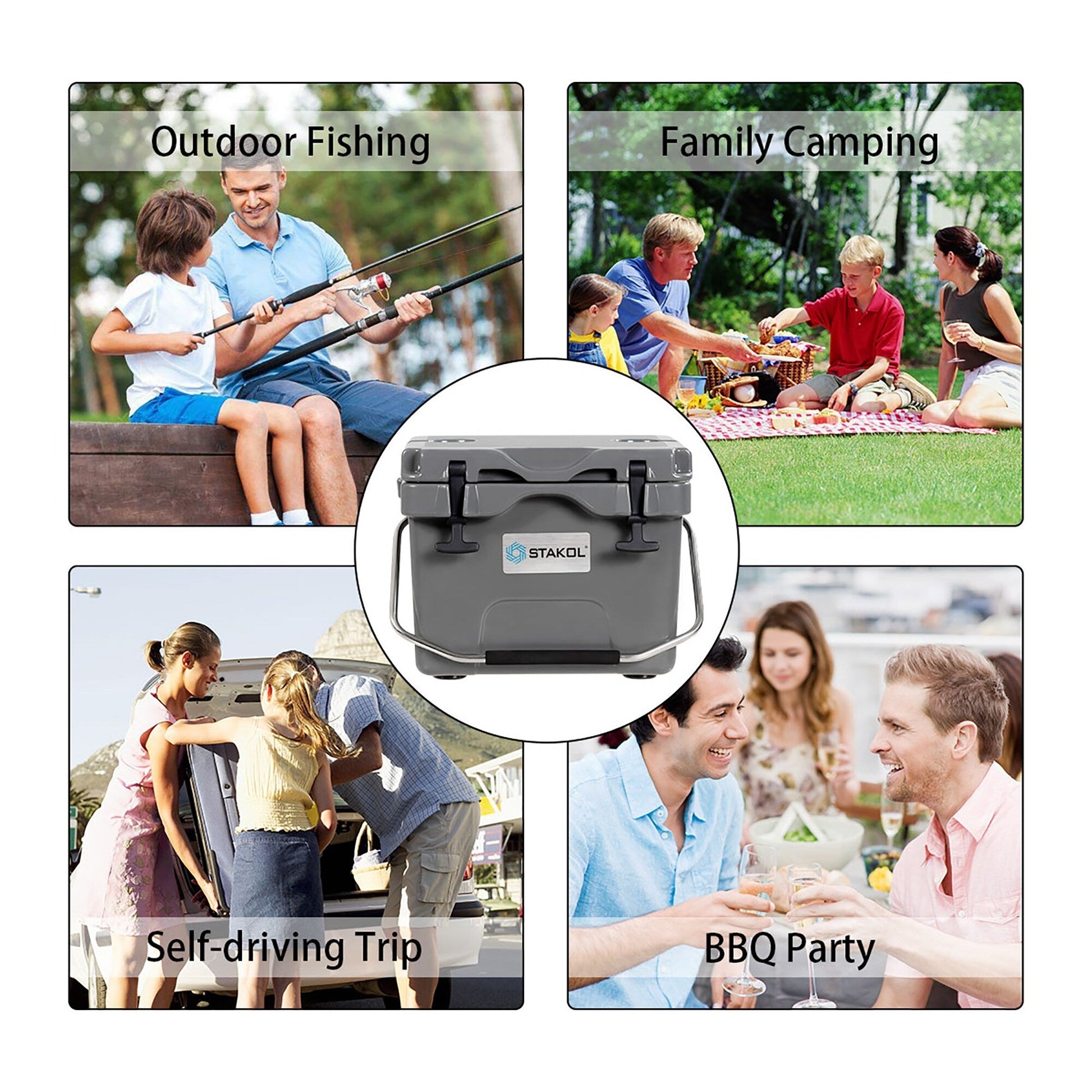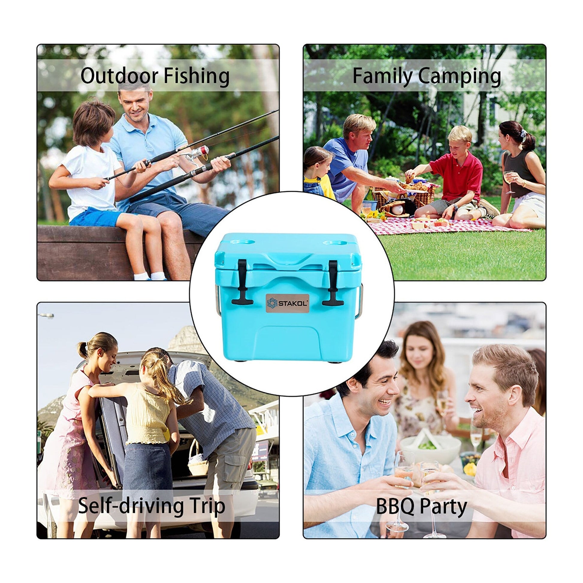 Cette glacière aux performances optimales et à la construction rotomoulée indestructible est sans aucun doute le partenaire idéal pour vos activités de plein air. Fabriquée en PE et PU isolants de qualité supérieure, cette glacière de 16 litres est non toxique et conserve vos aliments, boissons et fruits au frais pendant 3 à 5 jours. Portable, elle s'adapte à diverses situations, comme les barbecues, les pique-niques, la pêche, le camping ou les voyages en voiture. Elle permet également de maintenir les aliments au chaud. Elle est équipée de deux porte-gobelets, de loquets de sécurité, d'un couvercle verrouillable, d'une poignée en acier inoxydable, d'un bouchon de vidange et de repose-pieds. Tous ces détails bien pensés en font une glacière idéale.
