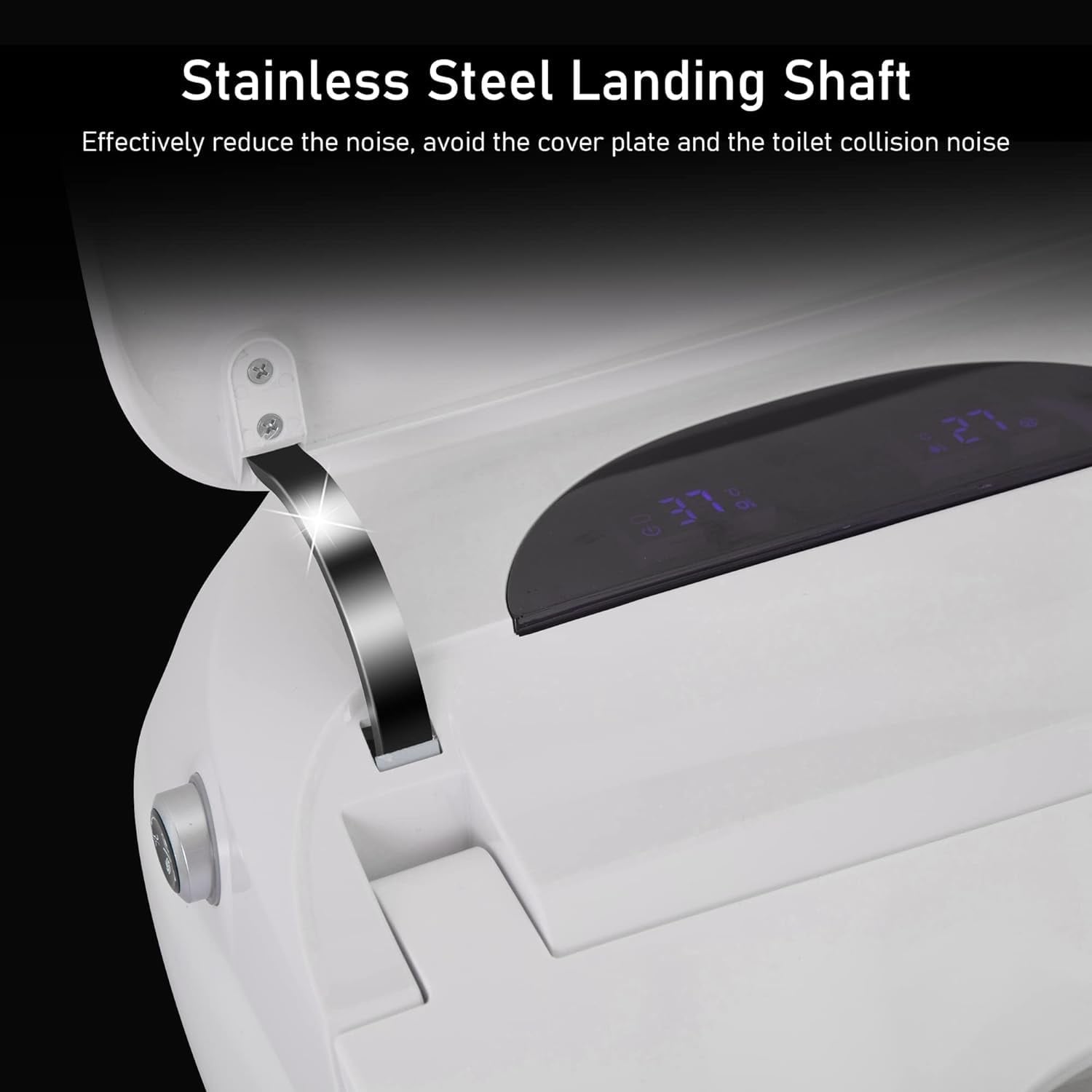- Siège chauffant confortable et affichage LED intuitif : Nos toilettes intelligentes avec sièges chauffants vous permettent de régler la température via une télécommande ou un bouton latéral, pour une expérience d'assise confortable et chaleureuse. Restez informé grâce aux mises à jour en temps réel de la température du siège et de l'eau affichées sur l'écran LED, gérées par un capteur sensible.