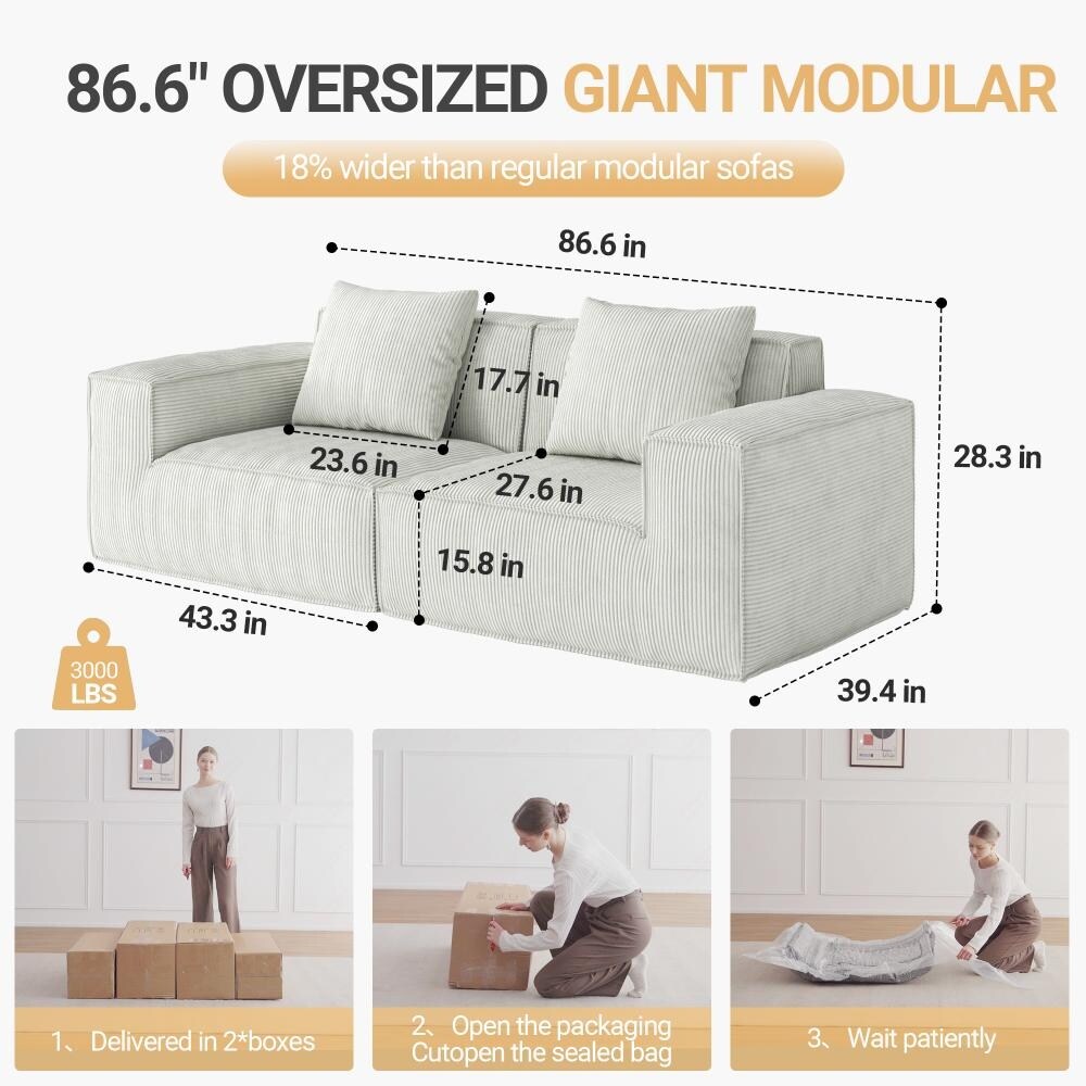 Indulge in plush comfort with our Cloud Couch-inspired design, boasting a sponge structure support. Experience luxurious softness while ensuring long-lasting durability. Lying on our modular couches and experiencing ultimate relaxation. The generous seat depth and perfect balance of softness and firmness offer exceptional comfort for extended lounging, entertaining guests, or cozy family gatherings. Appealing to a variety of spaces from living rooms to apartments and guest rooms, our sofa set offers multifunctional versatility. It beckons lounging and relaxation while maximizing every inch of space, even accommodating the playful antics of children.