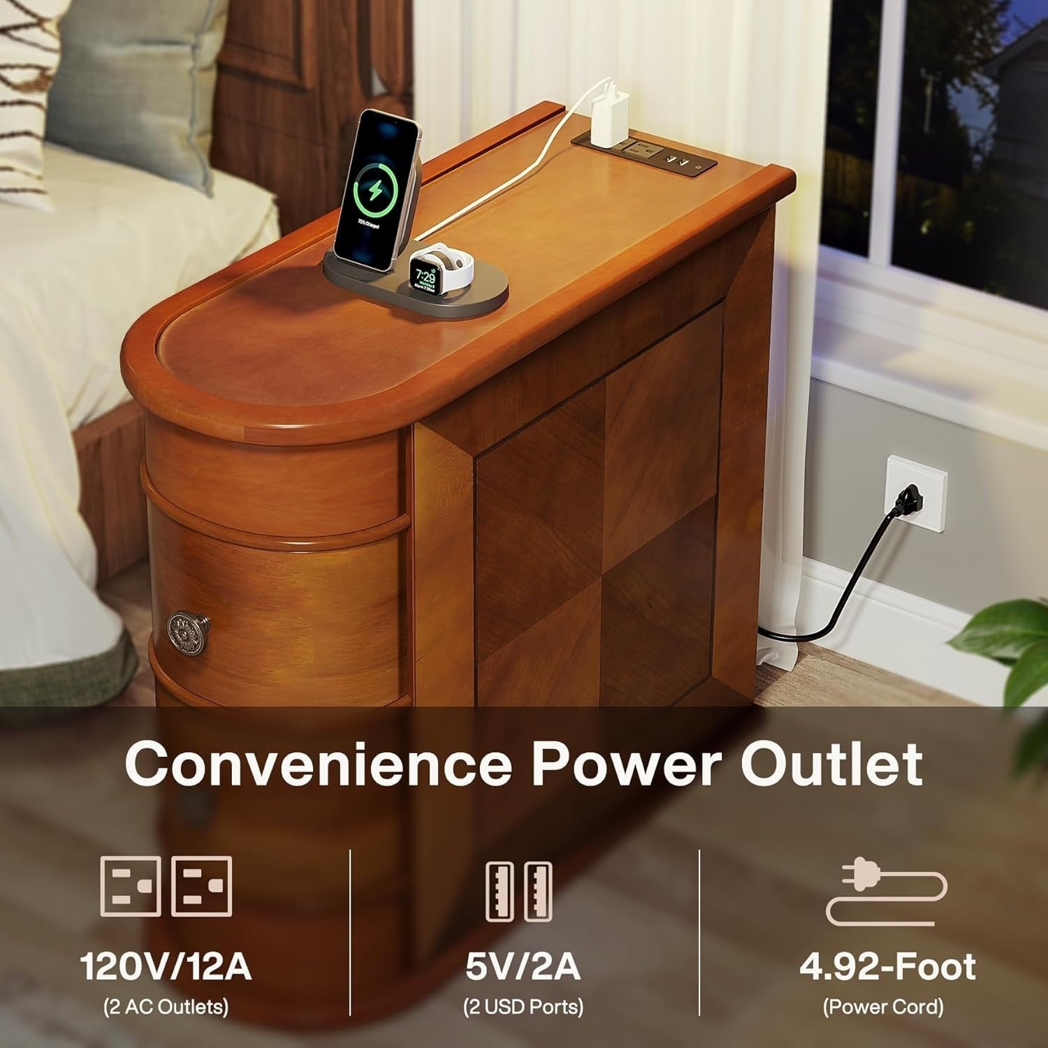 Table d'appoint étroite à deux tiroirs en bois massif