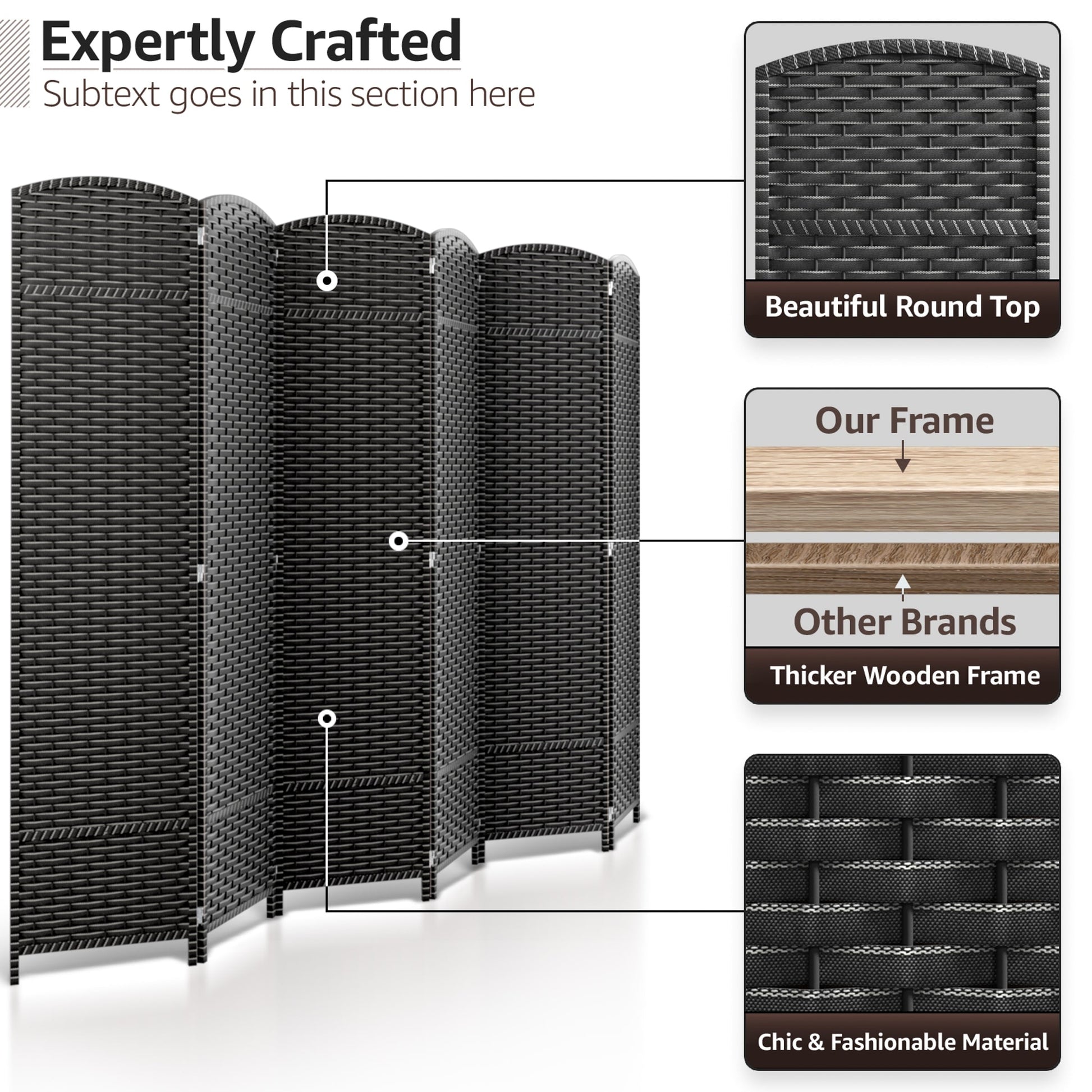 - Panneaux à double charnière extra larges : Équipé de 6 panneaux à double charnière et mesurant 6 pieds de haut, ce séparateur de pièce est extra large pour une couverture maximale.