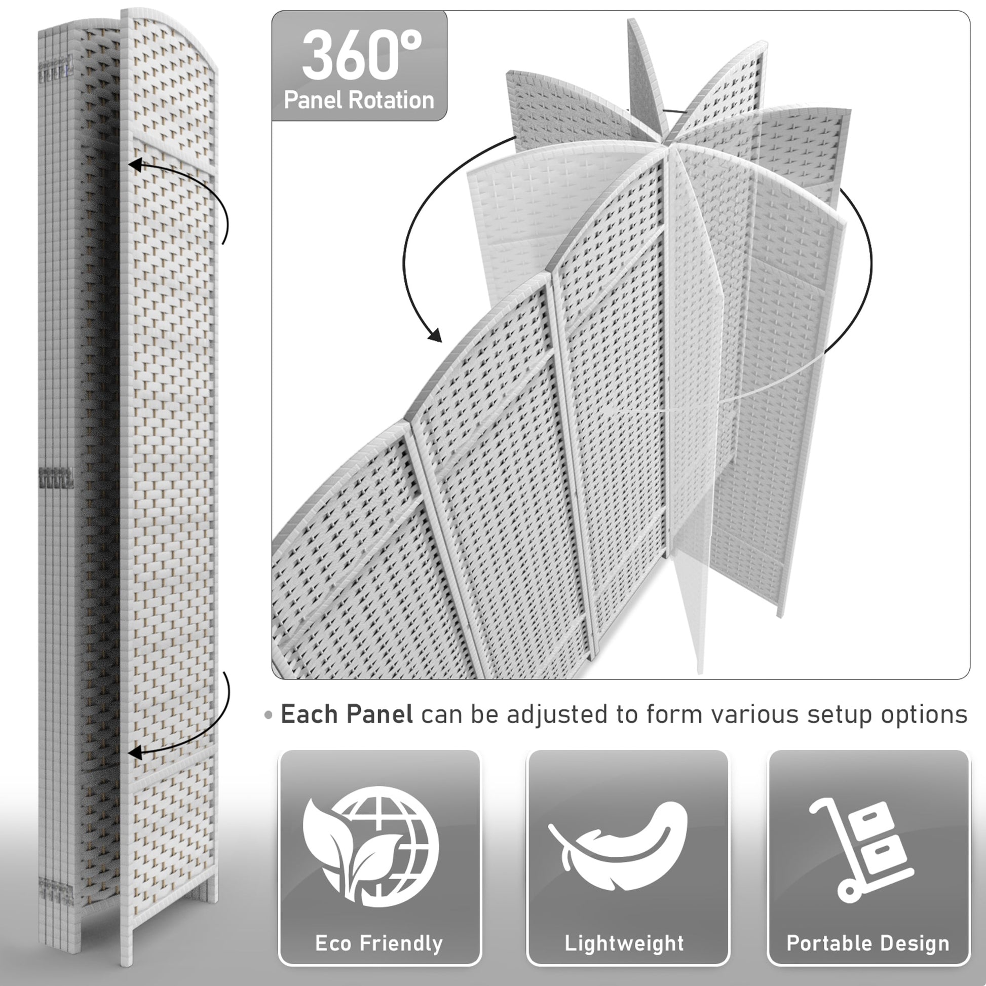 Séparateur de pièce Sorbus à 6 panneaux, cloison de séparation extra large et pliable, tissé à la main, à double charnière, en maille - 1,8 m