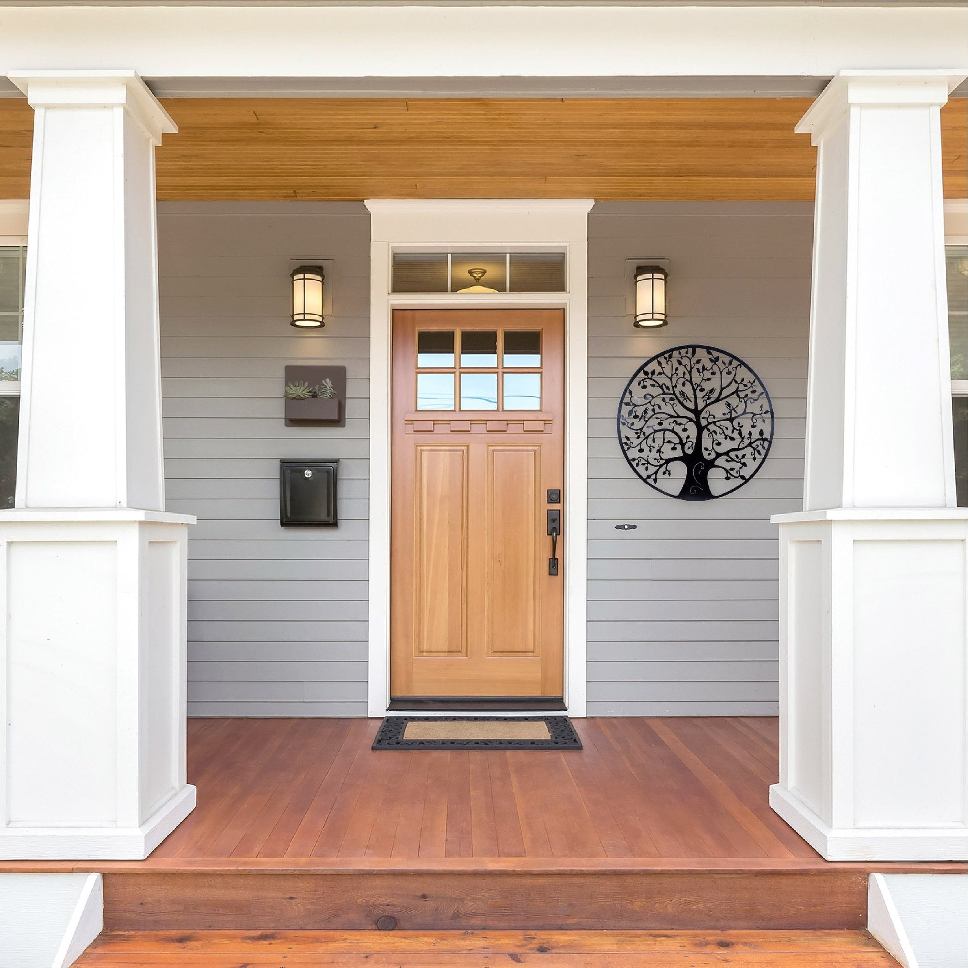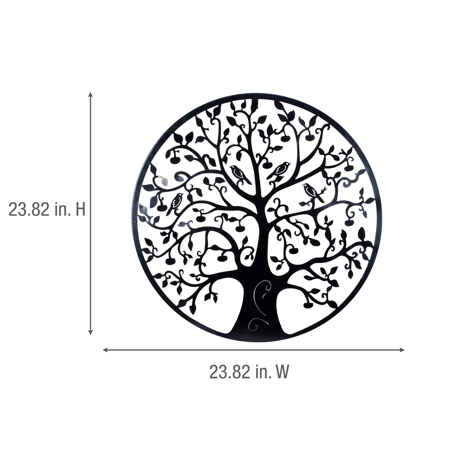 Décoration murale d'extérieur en métal noir Arbre de vie pour patio sud