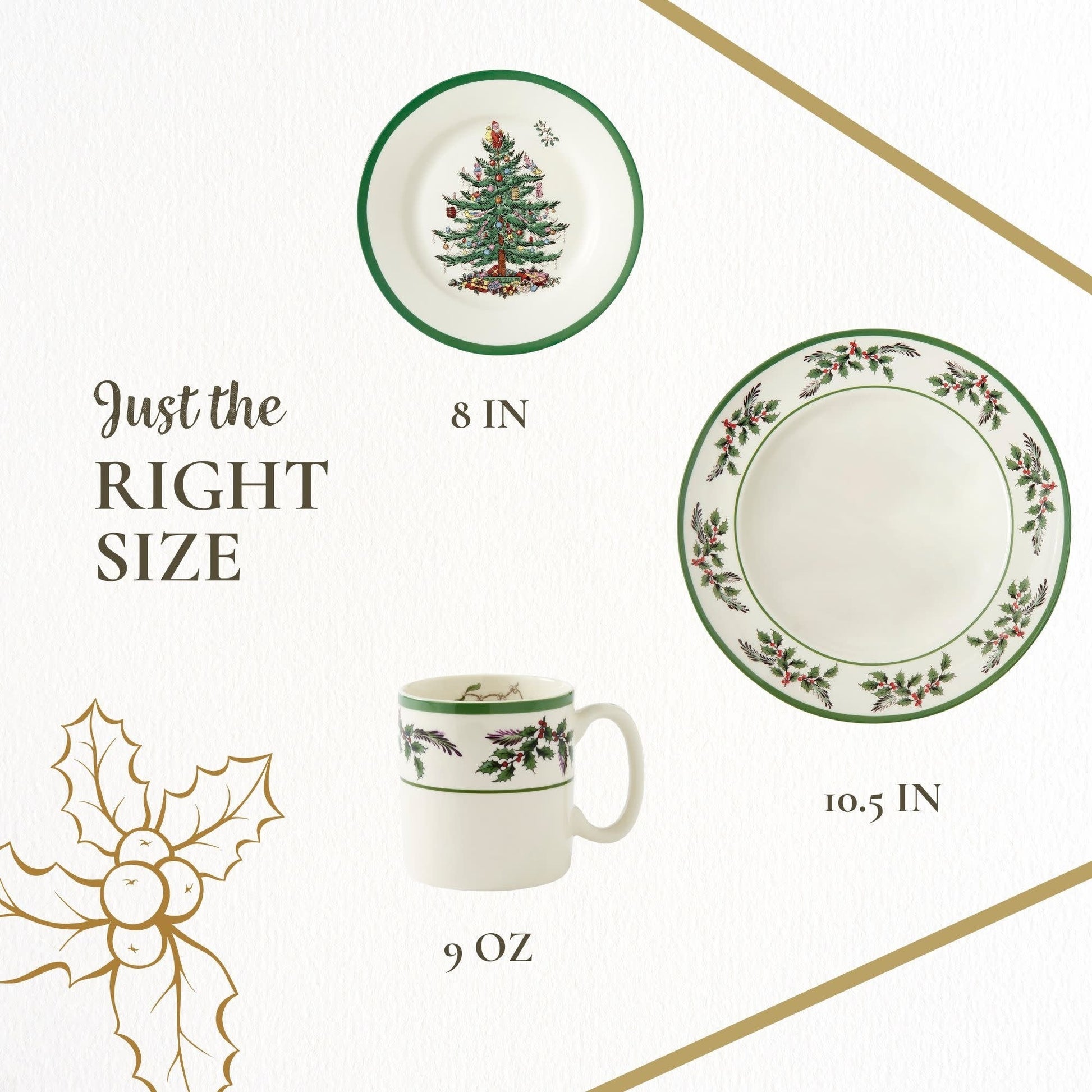 Service de table Spode Christmas Tree Holly en faïence fine, 12 pièces