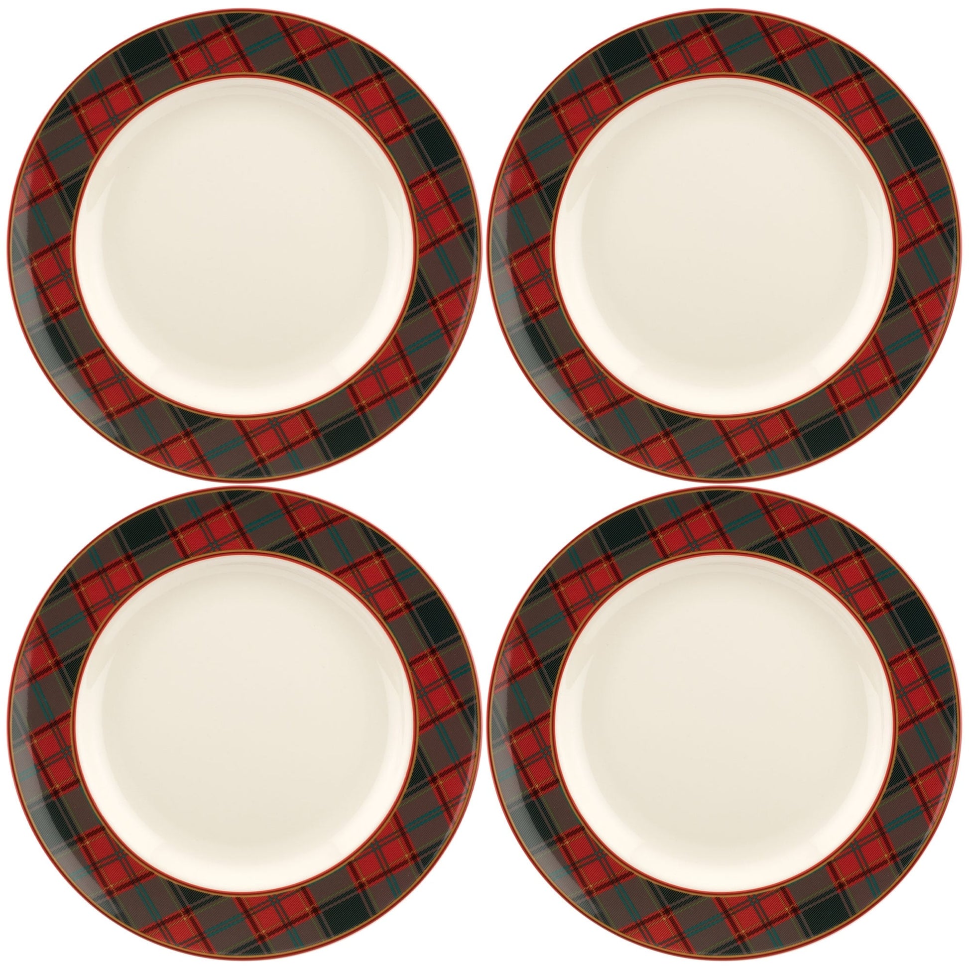 - Ensemble de (4) assiettes plates Spode de 10,5 pouces à motif tartan et sapin de Noël