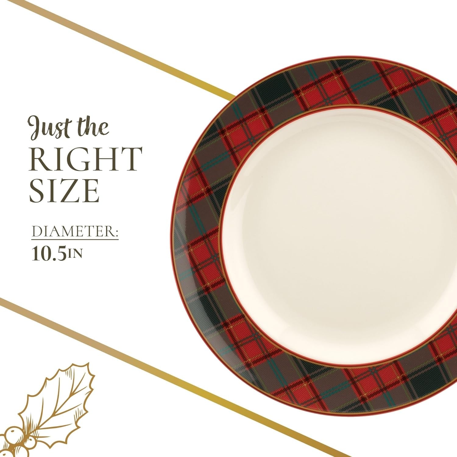 - Assiette à dîner tartan - Cette assiette fabuleusement festive apportera une touche de charme unique à votre table familiale pour les fêtes. Mesurant 26,7 cm, cette assiette tartan est un excellent ajout à votre collection d'ustensiles de cuisine et s'accordera parfaitement avec tous vos autres services de table !