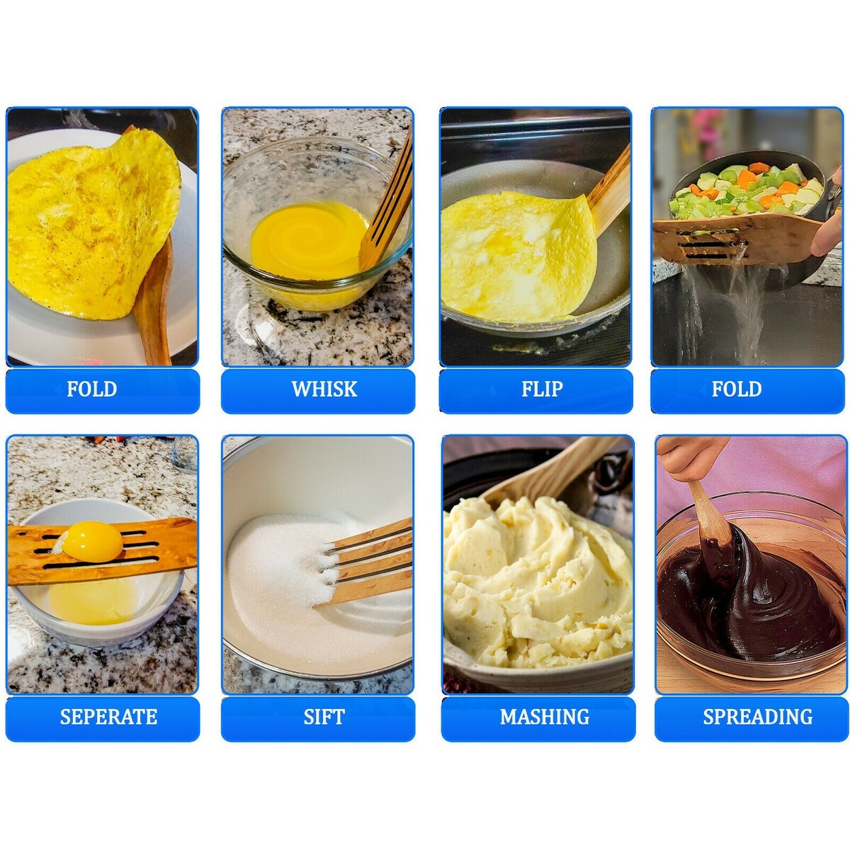 • Lot de 5 ustensiles de cuisine tout-en-un en teck : ils fonctionnent comme une cuillère, une spatule et une pagaie pour remplacer la majeure partie de vos ustensiles de cuisine ! Ustensiles de cuisine en bois
