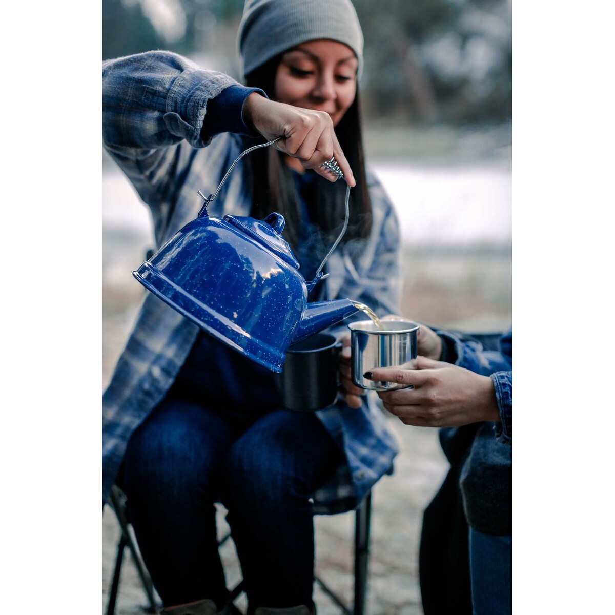 Envie d'un thé ou de quelques litres d'eau chaude pour un chocolat chaud ou un café ? Notre bouilloire en émail est là pour vous ! D'une capacité de 2,6 litres, elle est dotée d'une anse métallique avec poignée en spirale pour un versement facile et sans brûlure. L'émail est durci au four pour éviter les éclats et les rayures, vous permettant ainsi de savourer vos boissons chaudes où que vous soyez.