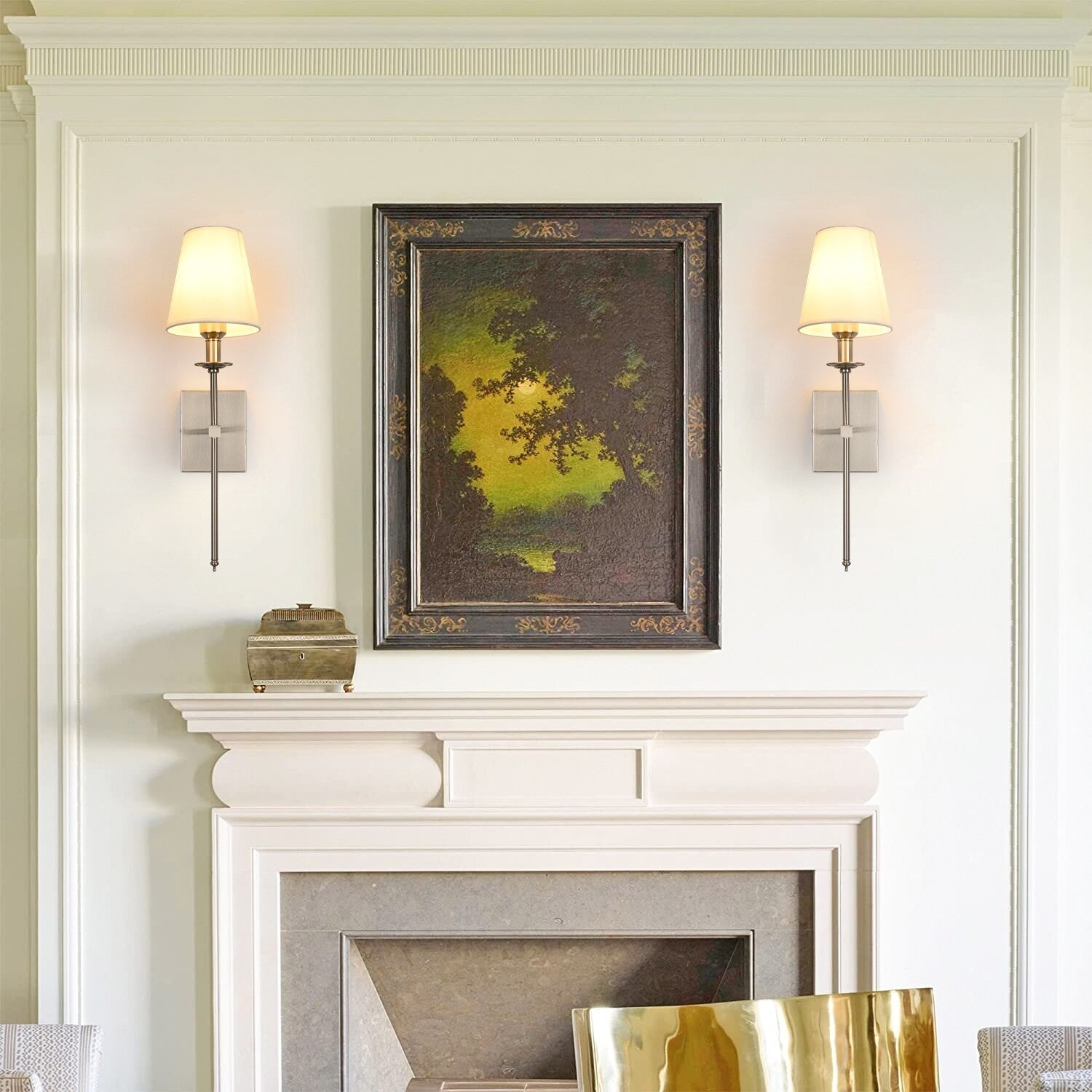 Sublimez votre espace avec l'ensemble d'appliques murales industrielles Starsky 1 lumière avec abat-jour conique en tissu (lot de 2), alliant charme industriel et élégance moderne. Cet ensemble comprend deux appliques murales, chacune dotée d'un abat-jour conique en tissu qui apporte une touche de douceur à la structure métallique robuste. Disponibles en finitions nickel, or et noir, ces appliques offrent une polyvalence pour compléter votre décoration. Compatibles avec les ampoules E26, elles allient style et fonctionnalité pour répondre à tous vos besoins d'éclairage.