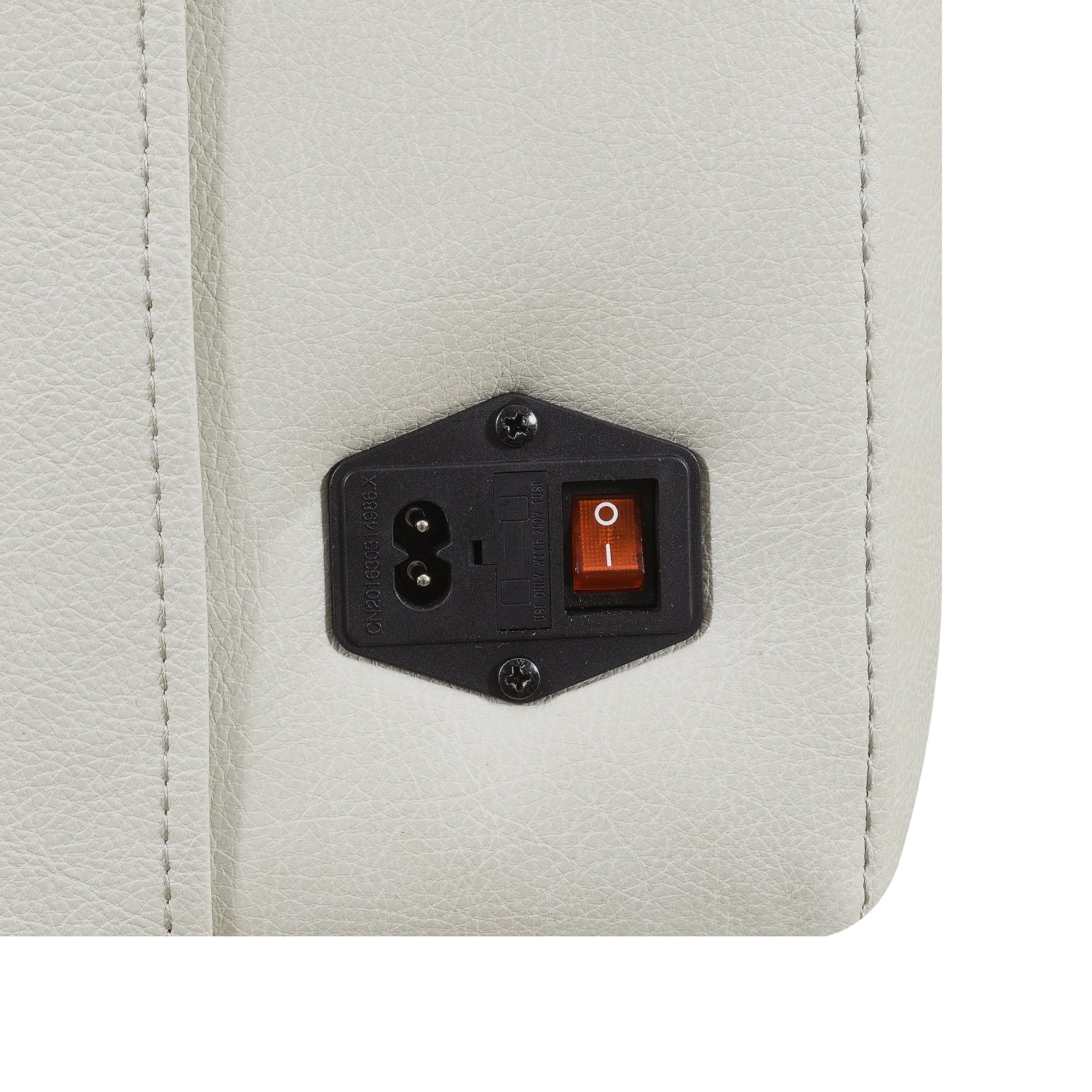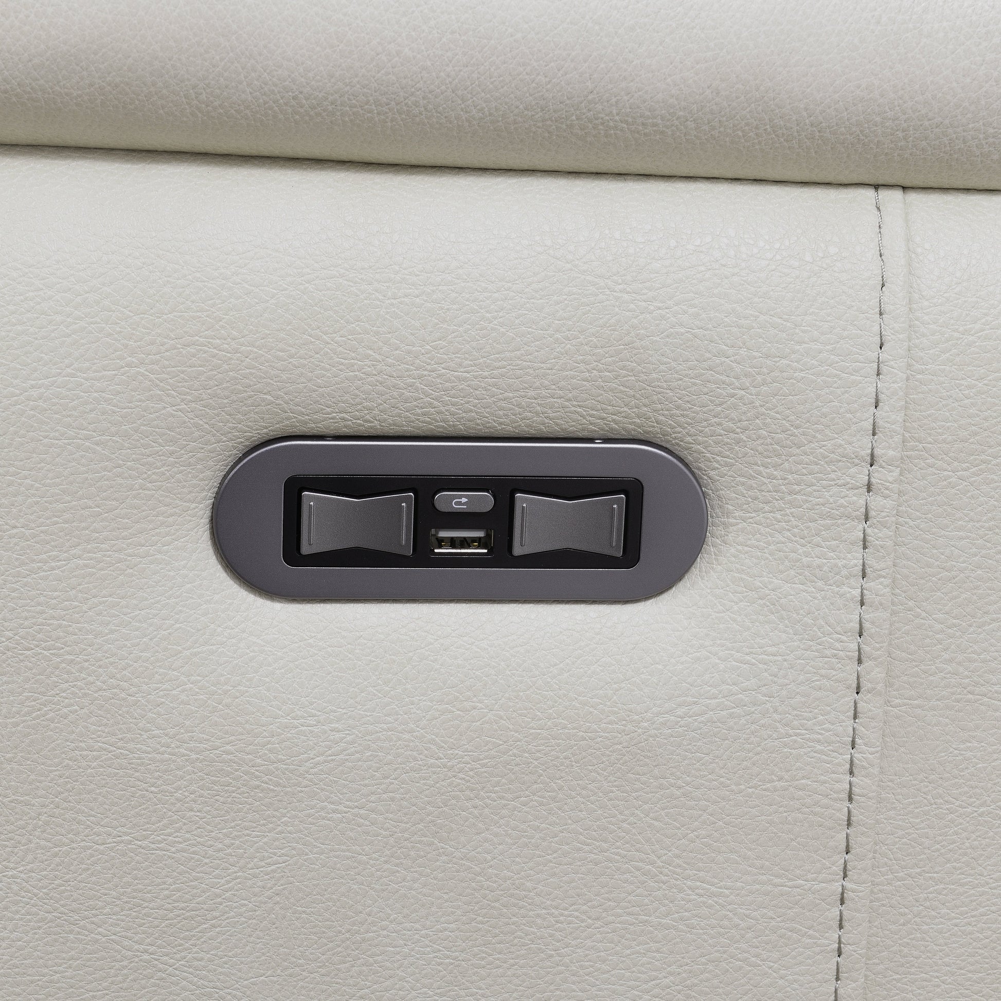 Experience ultimate comfort and contemporary style with the Durham Ivory Top Grain Leather Power Sofa by Greyson Living. Upholstered in sleek, modern ivory top grain leather on all seating areas with vinyl match on the sides and back, this sofa features power recline and articulating headrest functions on the two end seats, ensuring maximum comfort. Sinuous no-sag wire springs and high resiliency foam seating provide added comfort, while the USB ports on the control panels on each side allow you to conveniently charge your phone or electronics. The Durham sofa is the perfect addition to your living space.