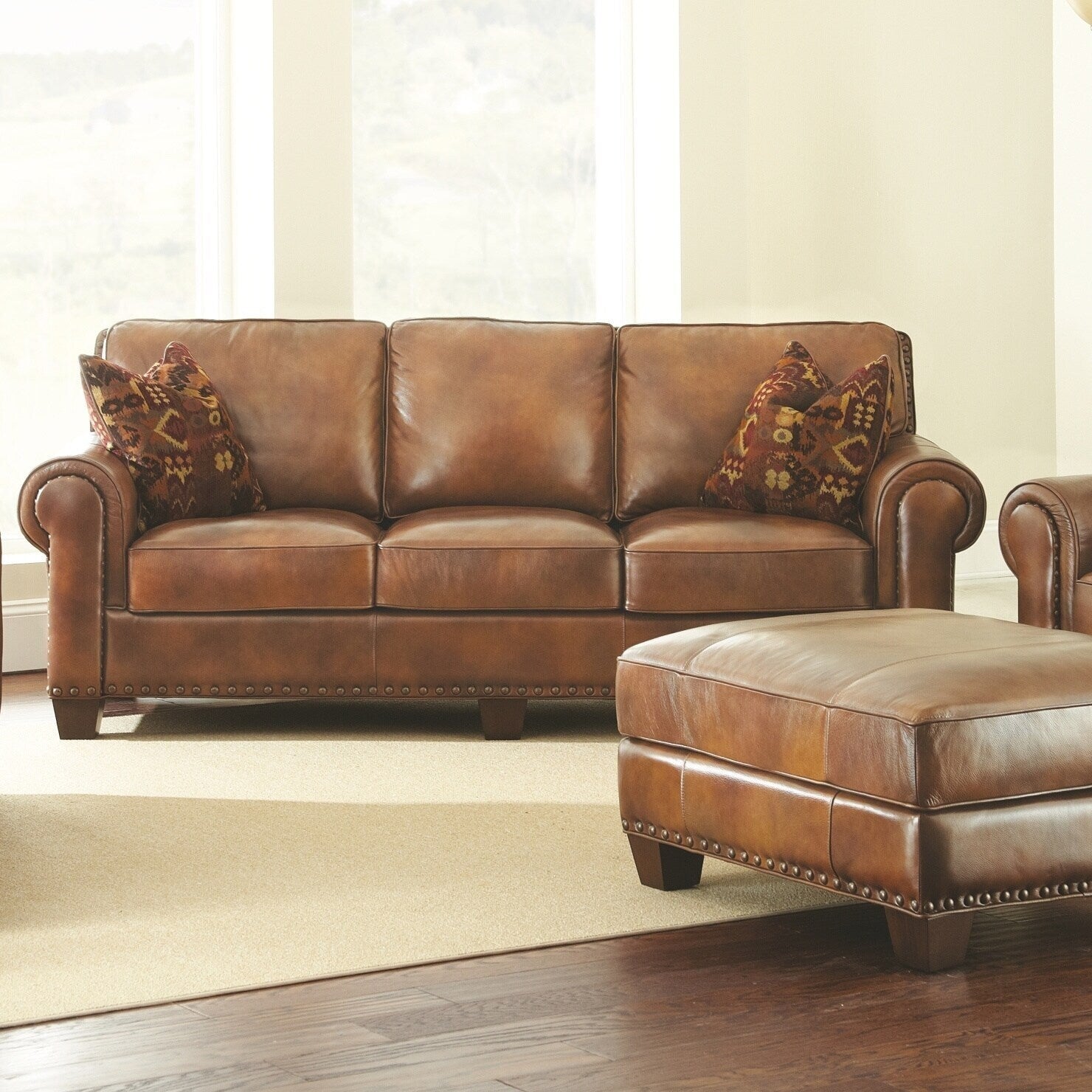 Steve Silver Sanremo Top Grain Leather Sofa with Nail Head Trim and Decorative Pillows