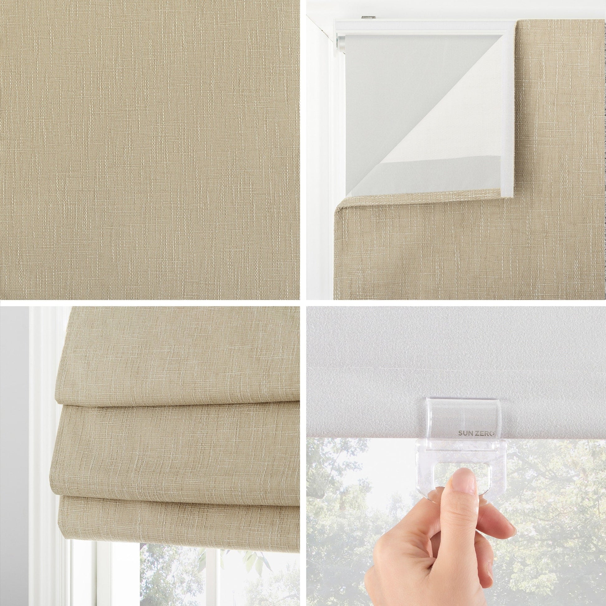 Le tissu texturé avec la technologie Sun Zero Total Blackout bloque 100 % de la lumière extérieure La conception écoénergétique réduit les pertes d'énergie par vos fenêtres jusqu'à 45 %