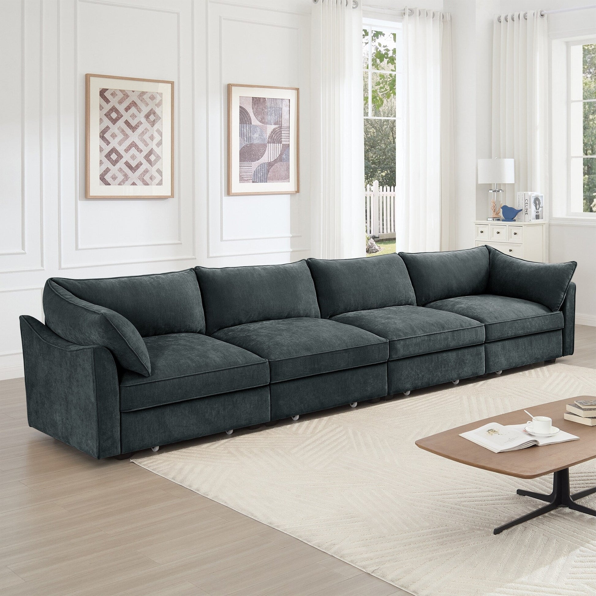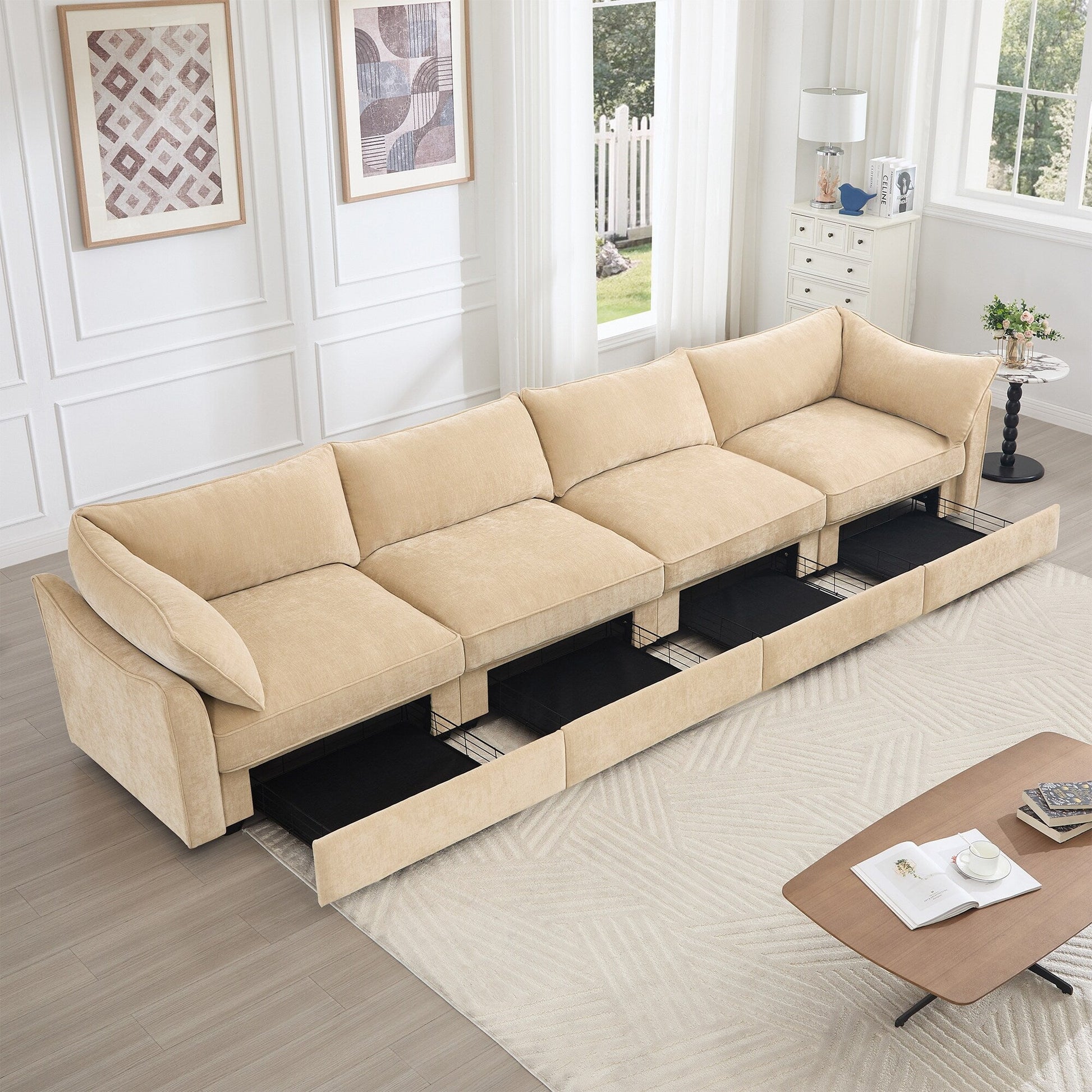 Super Large Wide & Deep Seat 4-Seater Sofa Couch with Storage Pull Out Drawer Under Each Seat