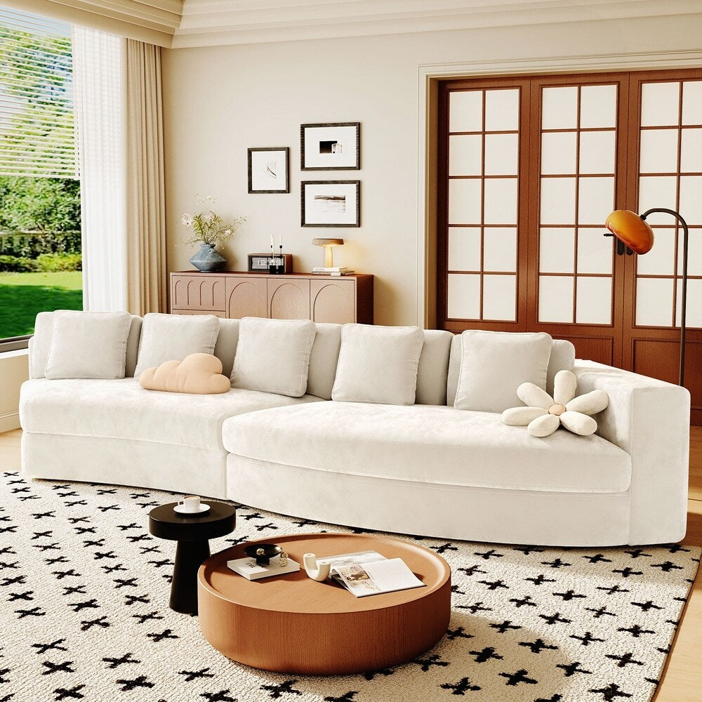 - [Elegant and Modern Style Combination]: This modular combination sofa features simple lines paired with unique curved designs, perfectly balancing functionality and aesthetics. The soft curve outlines add a touch of fluidity to the space, seamlessly blending into various home styles such as Nordic, modern, and light luxury, making it the visual focal point of your living room or bedroom.