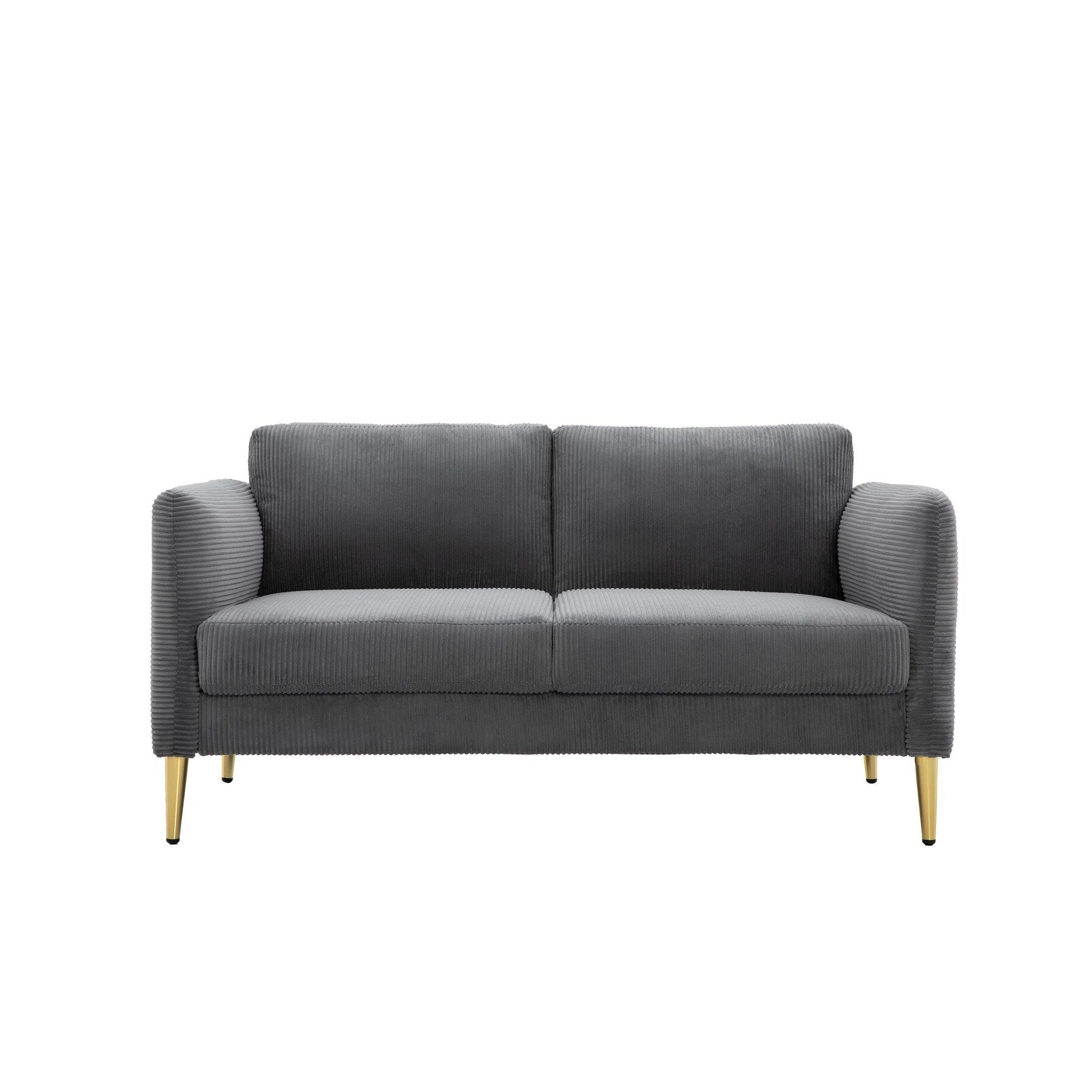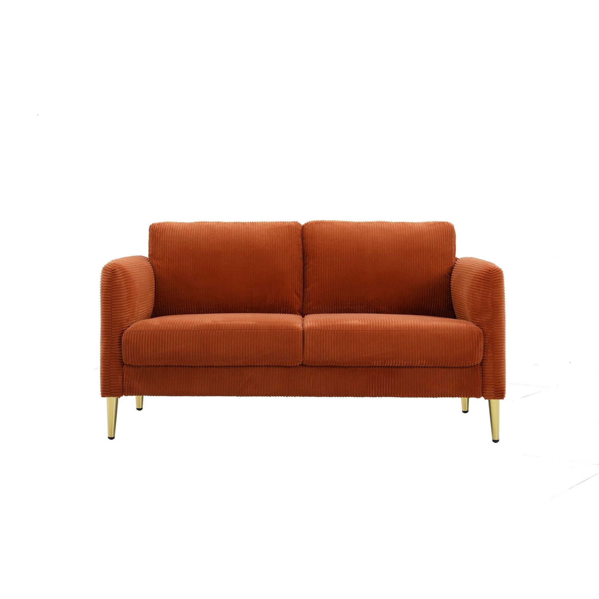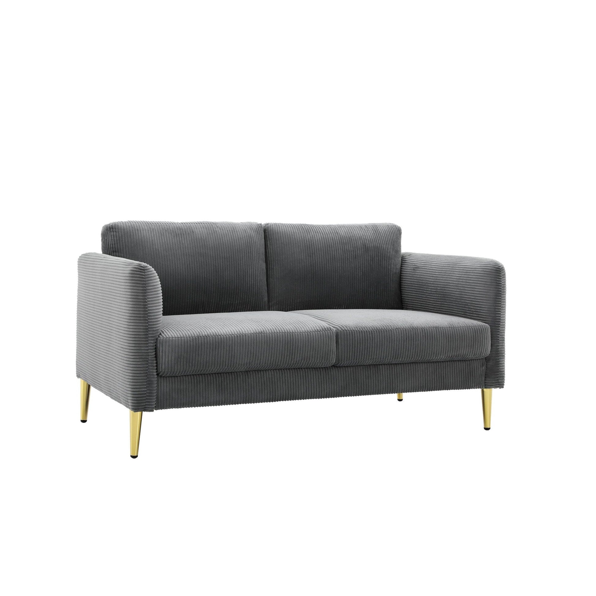 Get a modern look that adds comfort and style to your home. This corduroy fabric loveseat creates a lounge-worthy spot in your living room without dominating square footage. It has a solid and engineered wood frame that rests on tapered corner bracket feet for a streamlined silhouette that's full of mid-century style. The cushions and arms are thickly upholstered with welted edges, and the interior is generously padded for lot of support.