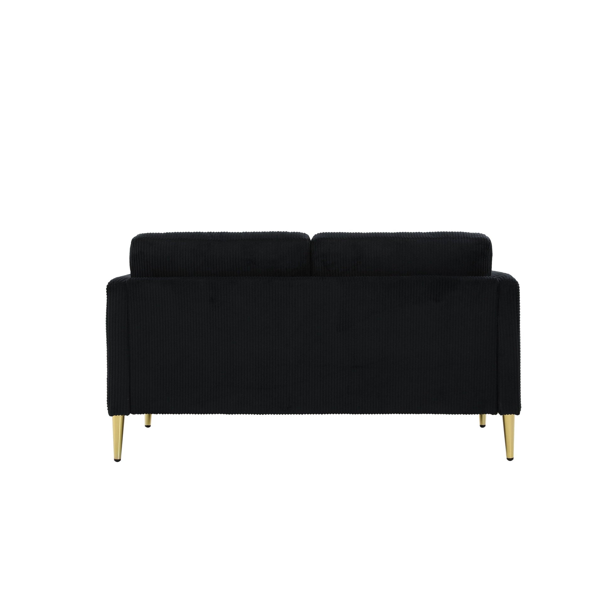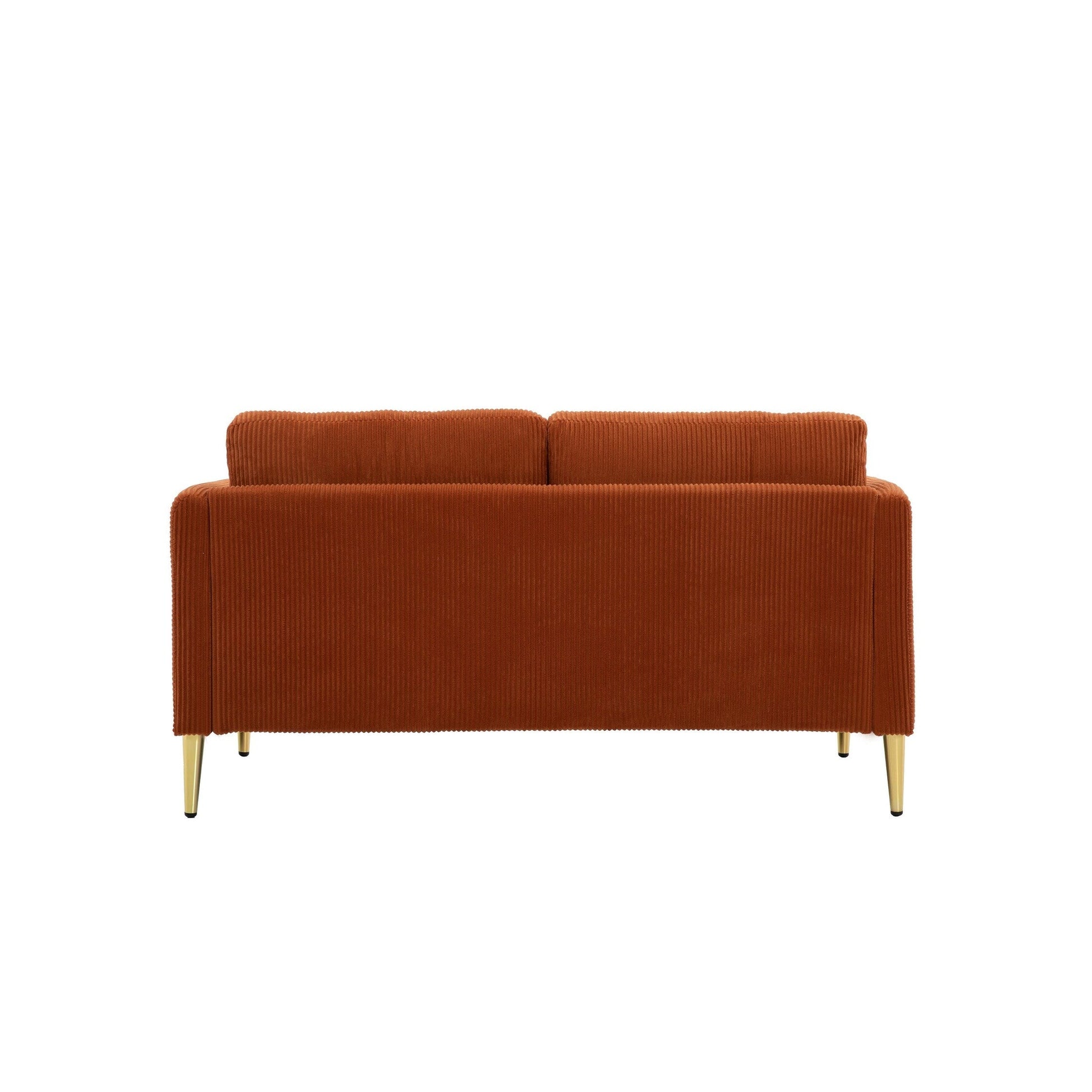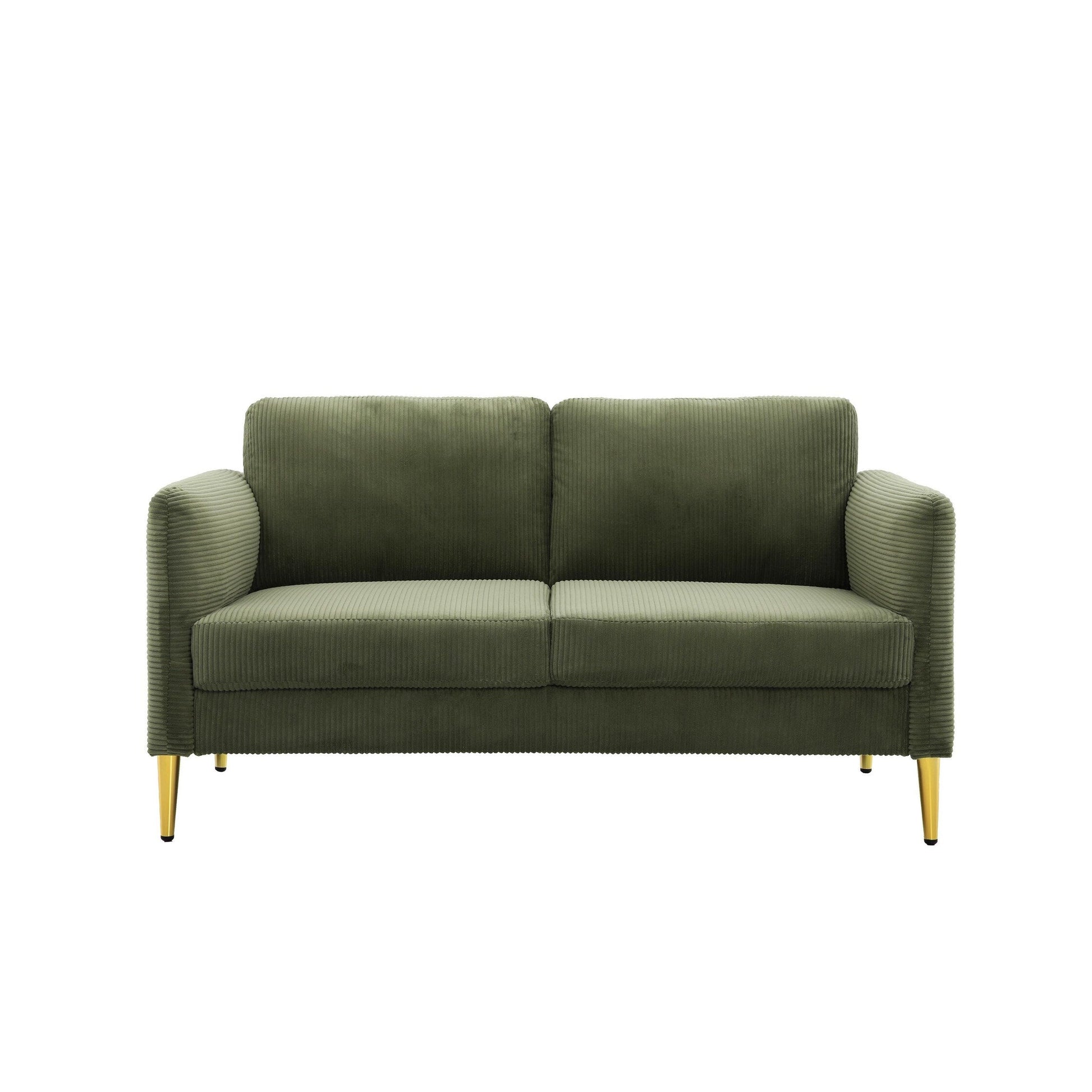 Get a modern look that adds comfort and style to your home. This corduroy fabric loveseat creates a lounge-worthy spot in your living room without dominating square footage. It has a solid and engineered wood frame that rests on tapered corner bracket feet for a streamlined silhouette that's full of mid-century style. The cushions and arms are thickly upholstered with welted edges, and the interior is generously padded for lot of support.