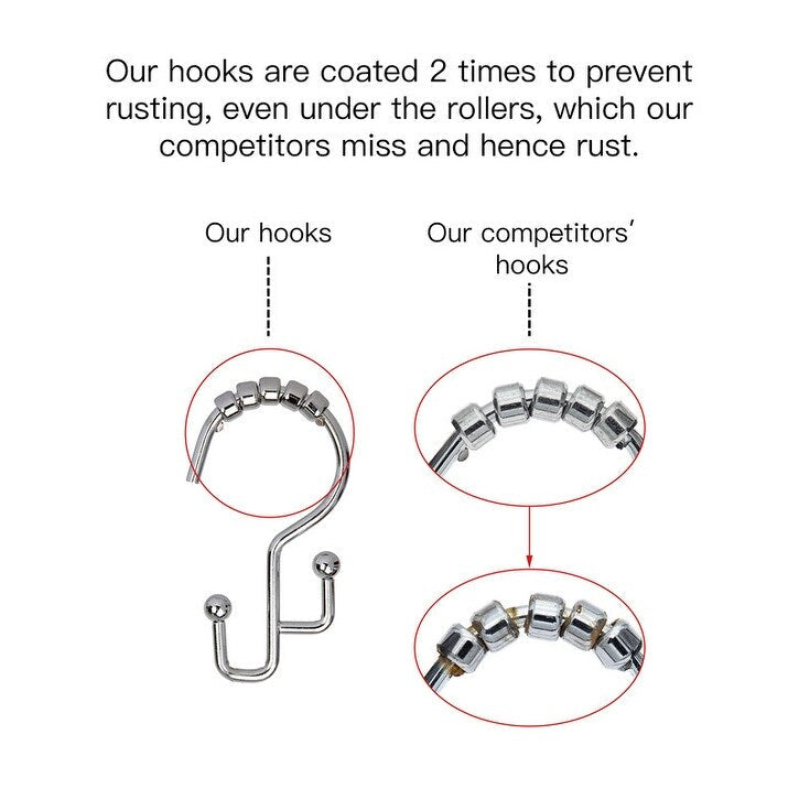 Crochets de douche Utopia Alley - Anneaux de rideau de douche doubles pour salle de bain - Crochets de rideau de douche antirouille - Lot de 12, Chrome