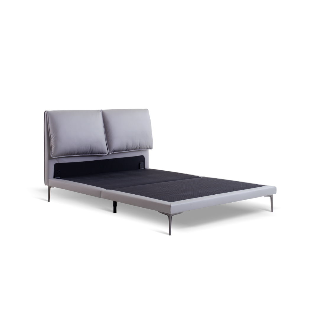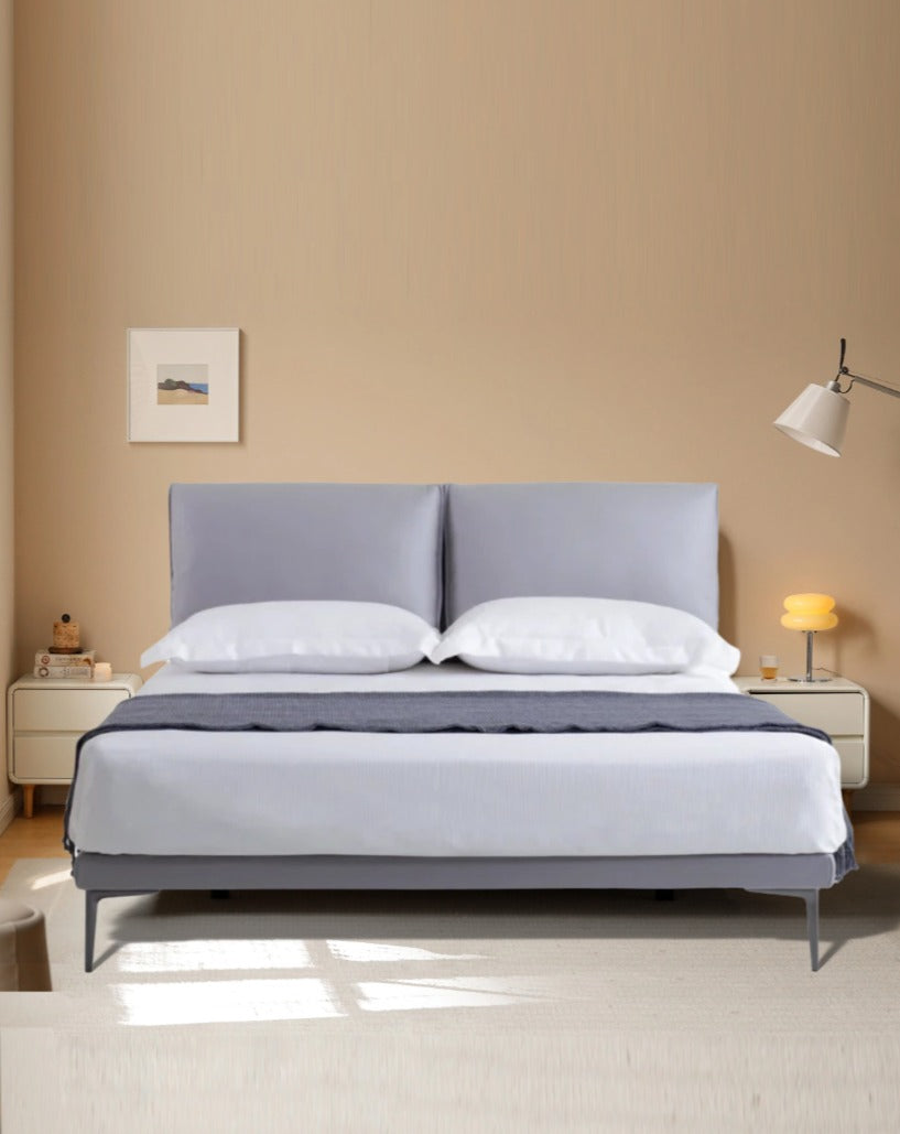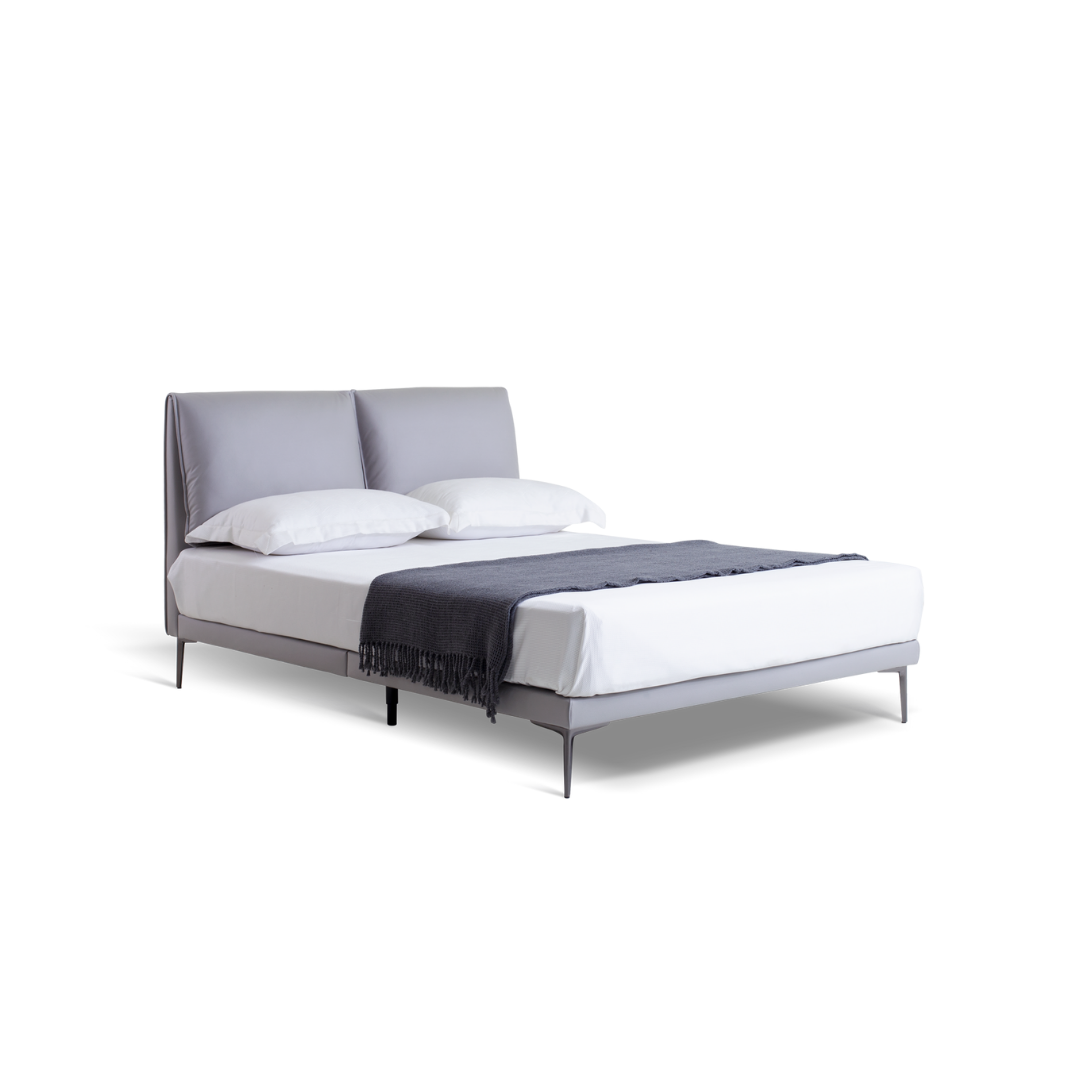 Le cadre de lit Veda apporte une élégance discrète à toute chambre. Revêtu d'un doux tissu gris, il est doté d'une tête de lit à double panneau ornée de surpiqûres subtiles pour un style sur mesure. Ses pieds fins et fuselés apportent une touche de modernité tout en garantissant sa durabilité.
